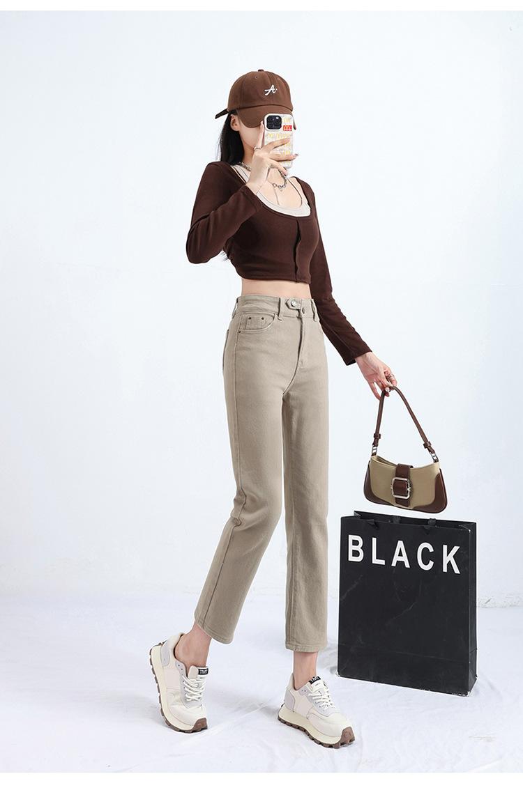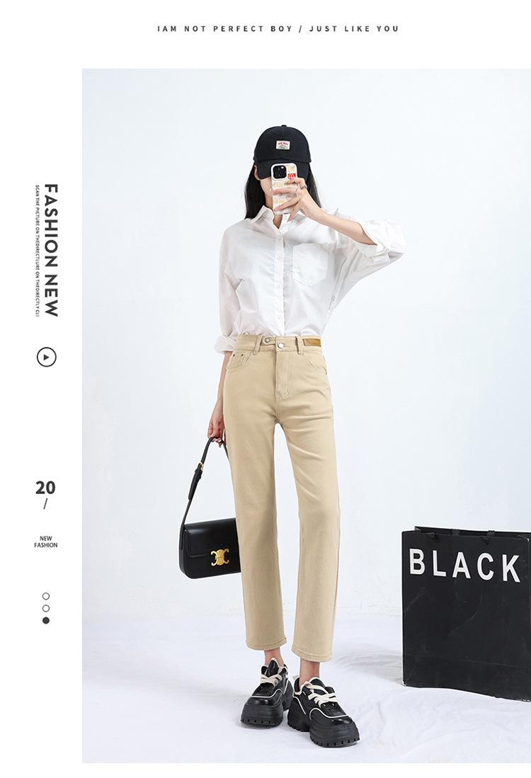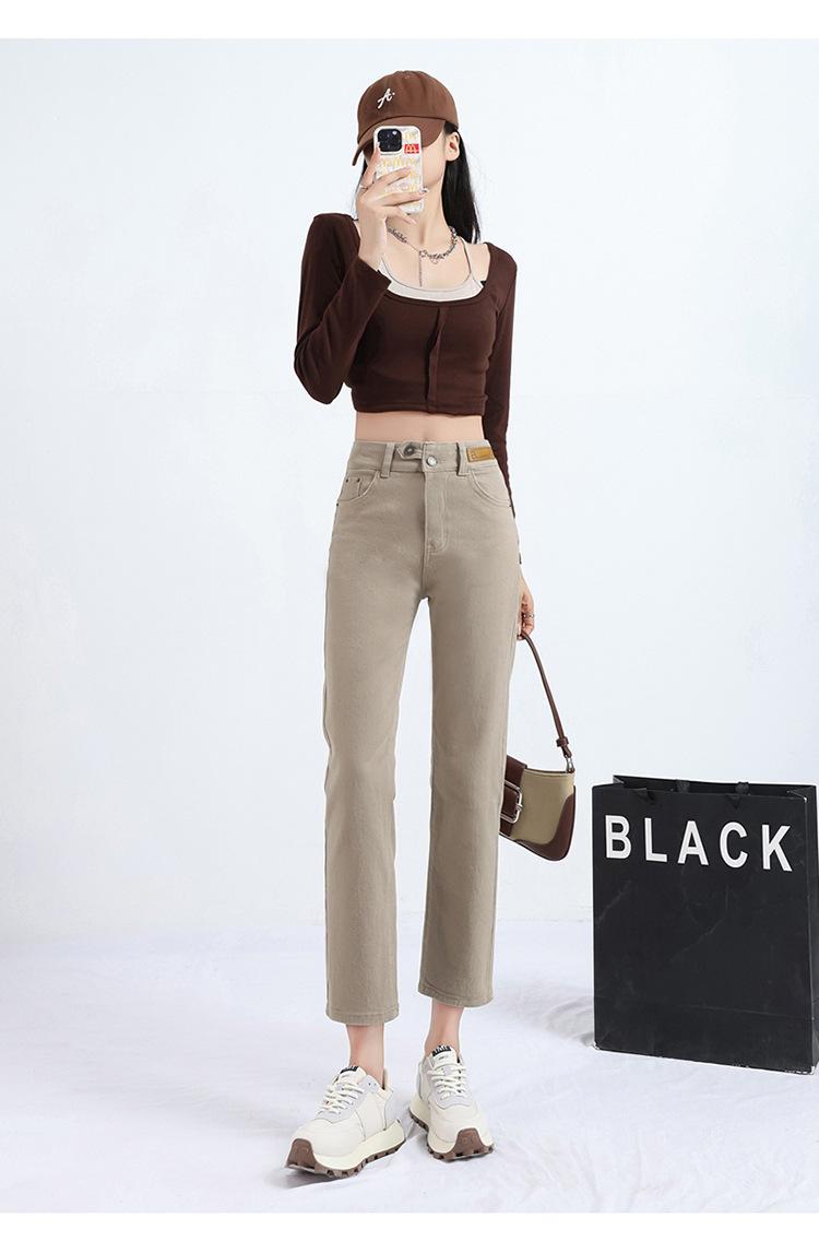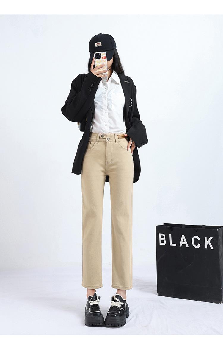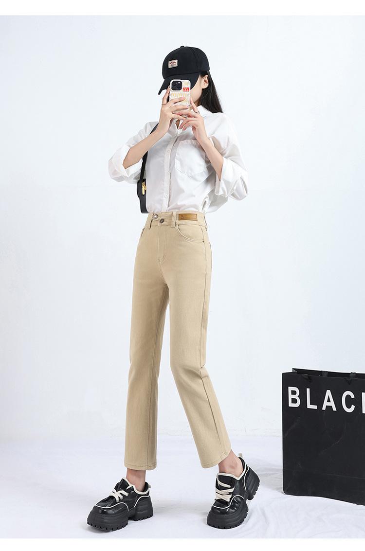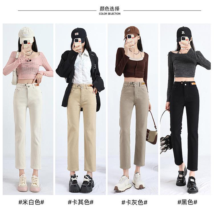 Pantalones vaqueros rectos y elásticos para mujer, otoño 2024, cintura alta, adelgazantes, ocho y nueve puntos