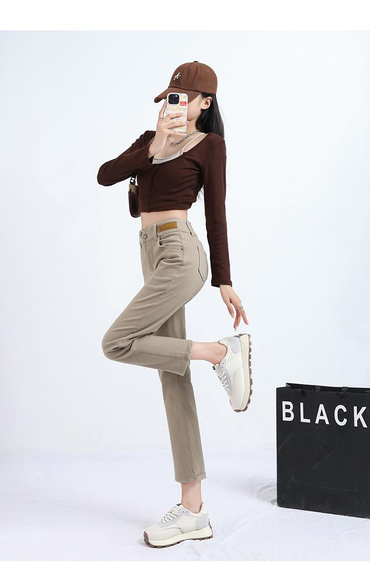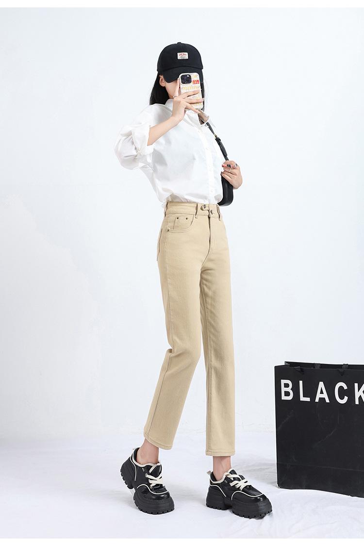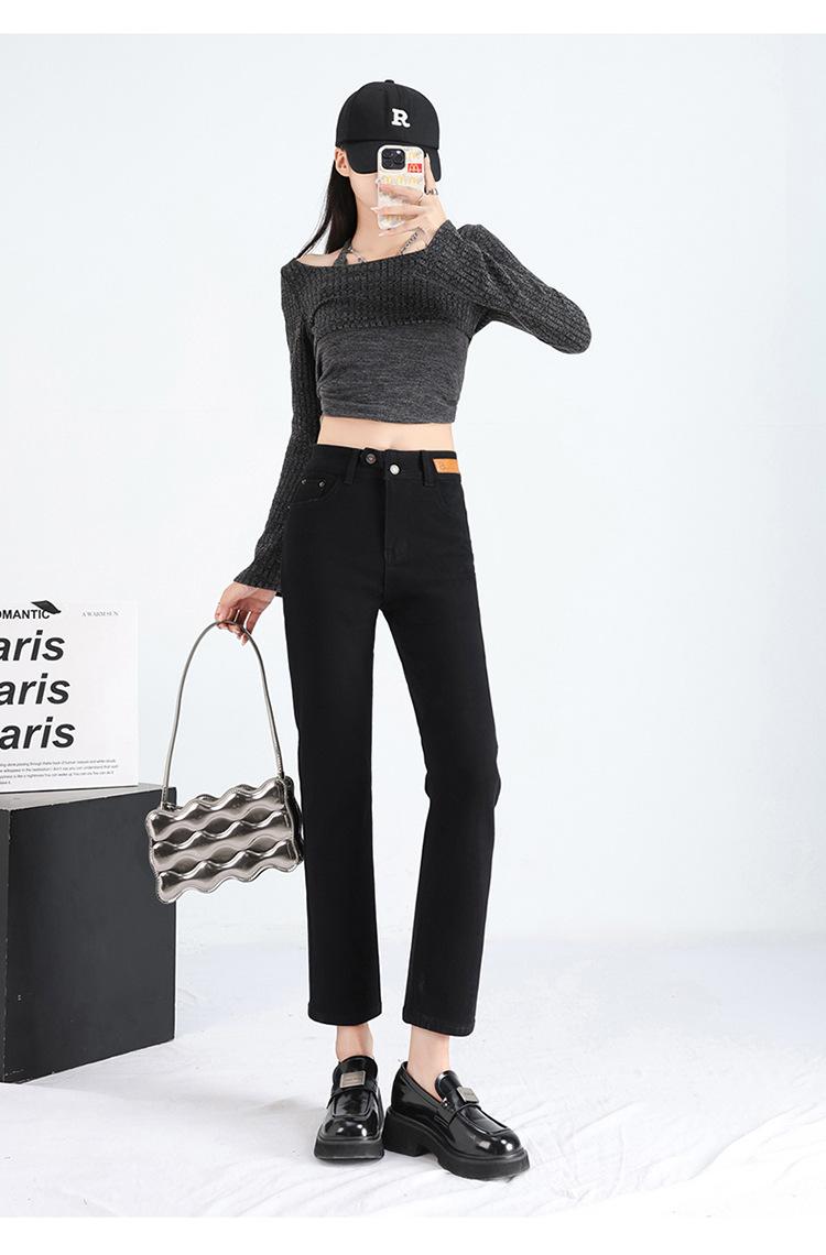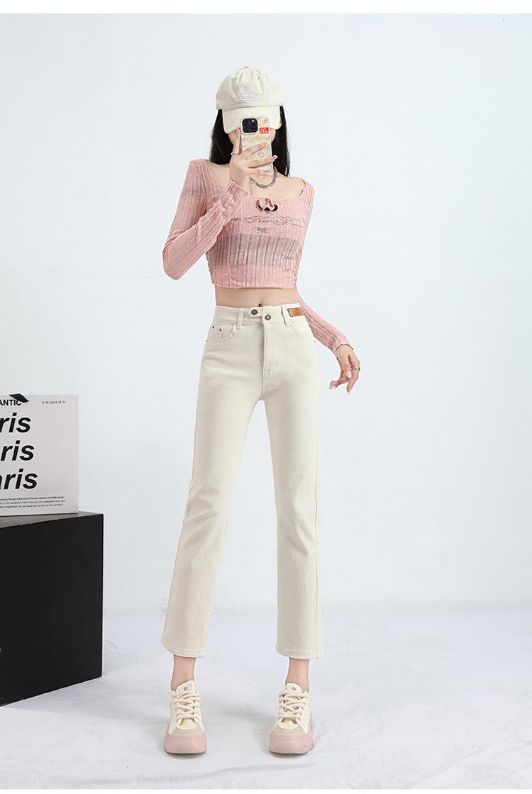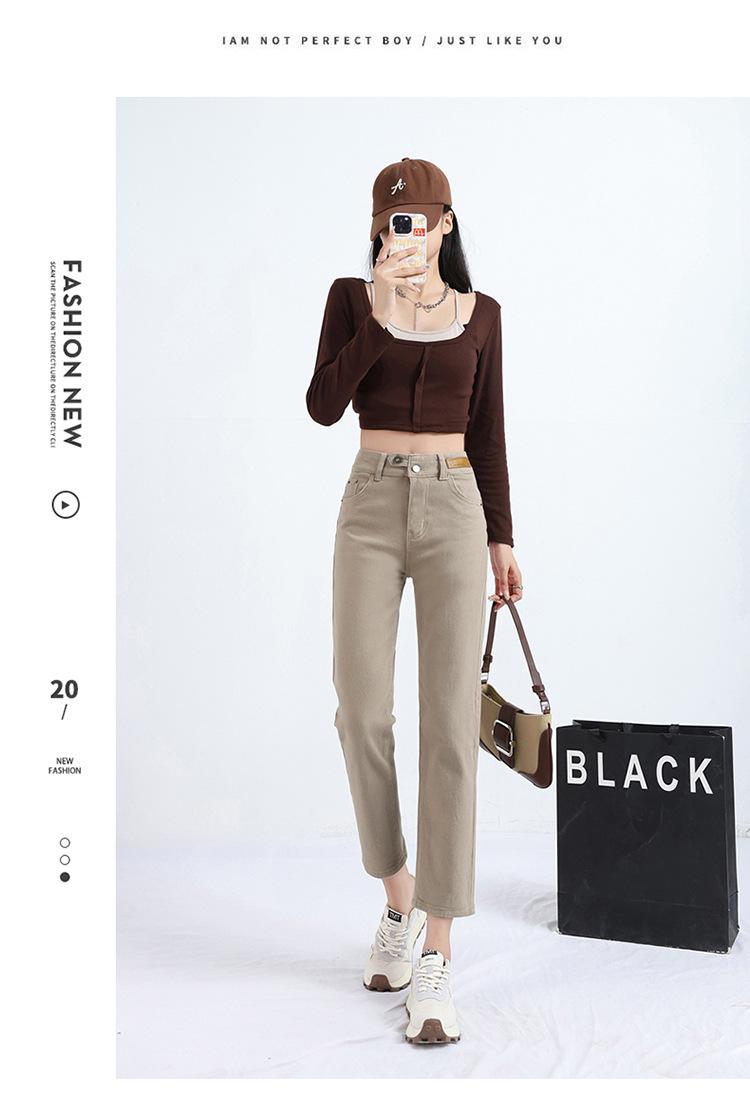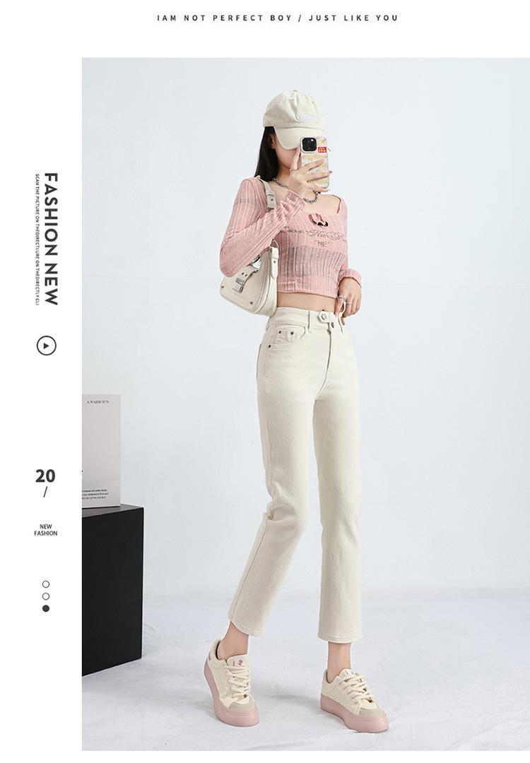 Pantalones vaqueros rectos y elásticos para mujer, otoño 2024, cintura alta, adelgazantes, ocho y nueve puntos