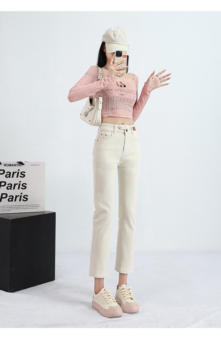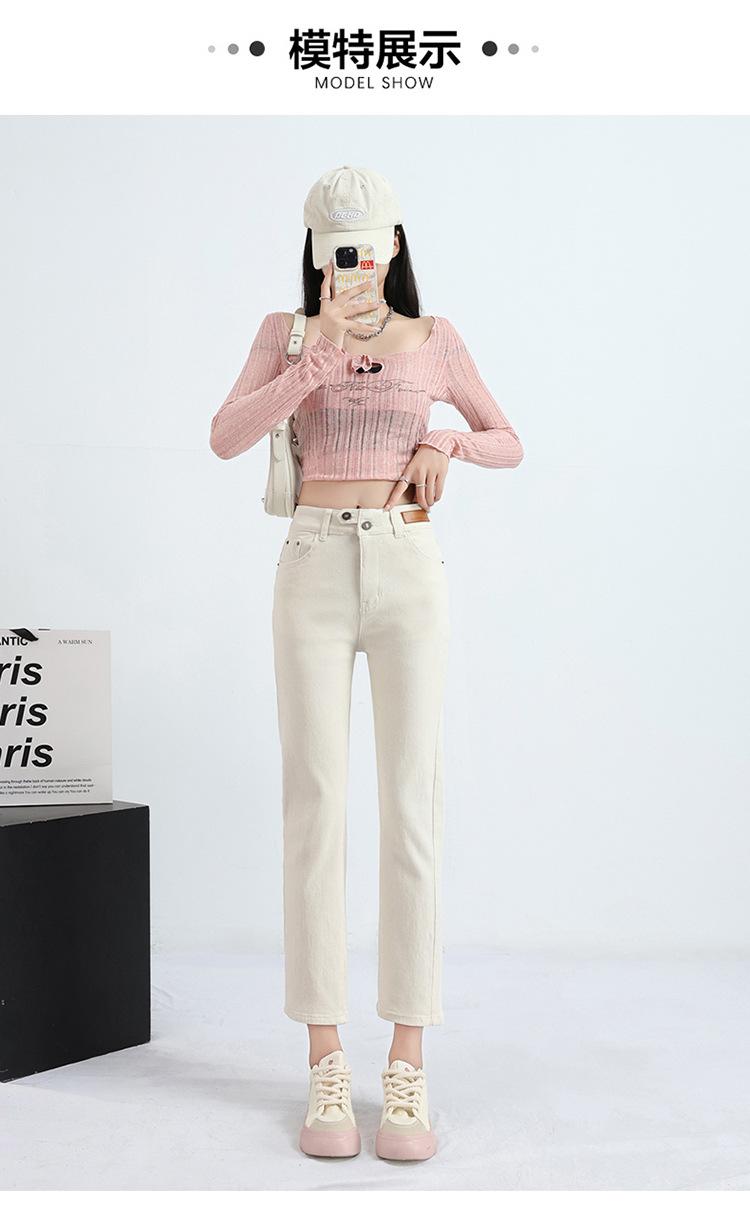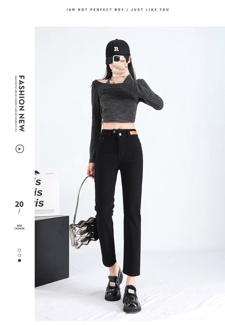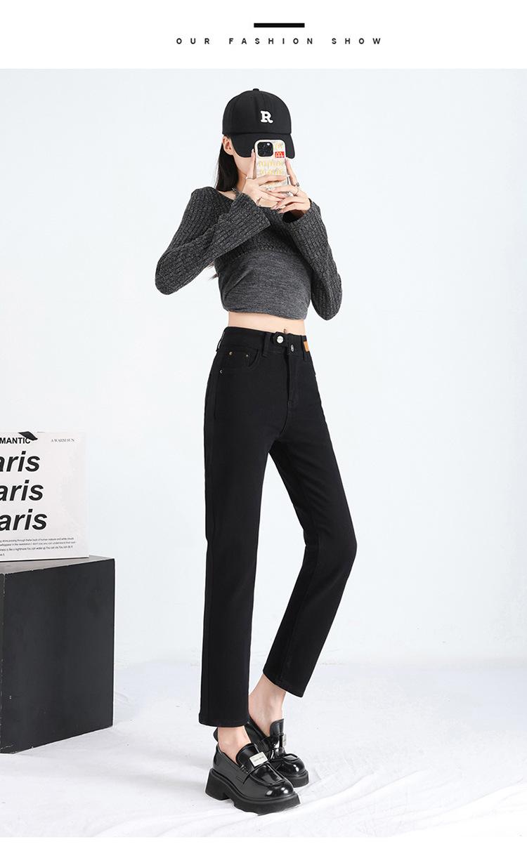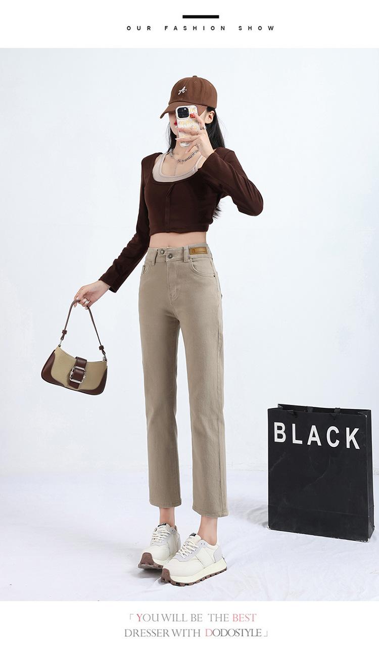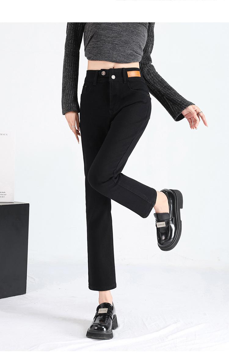 Pantalones vaqueros rectos y elásticos para mujer, otoño 2024, cintura alta, adelgazantes, ocho y nueve puntos
