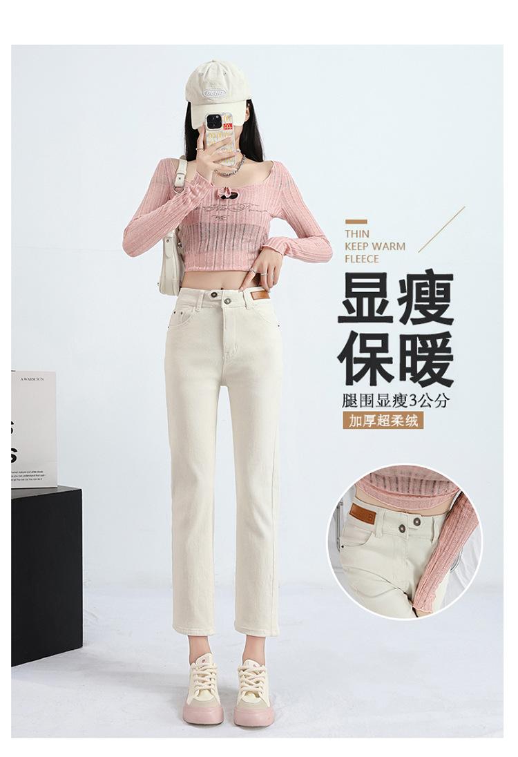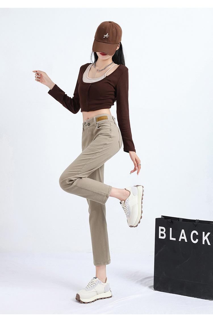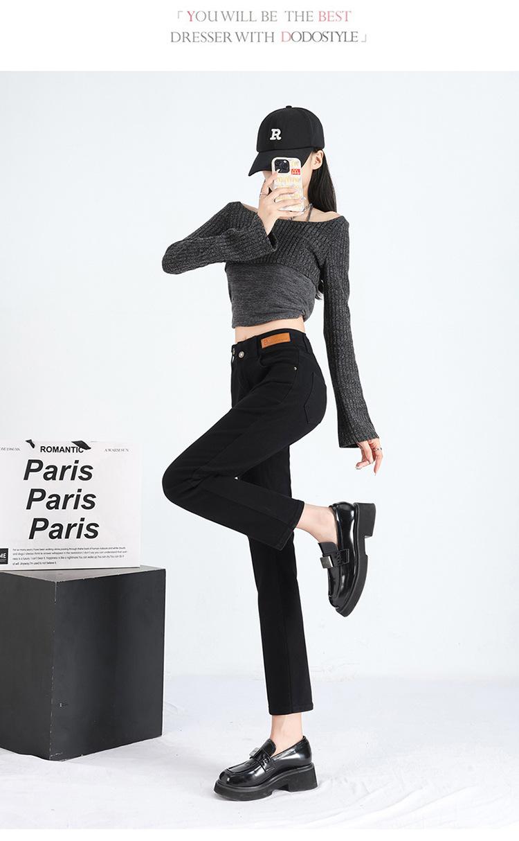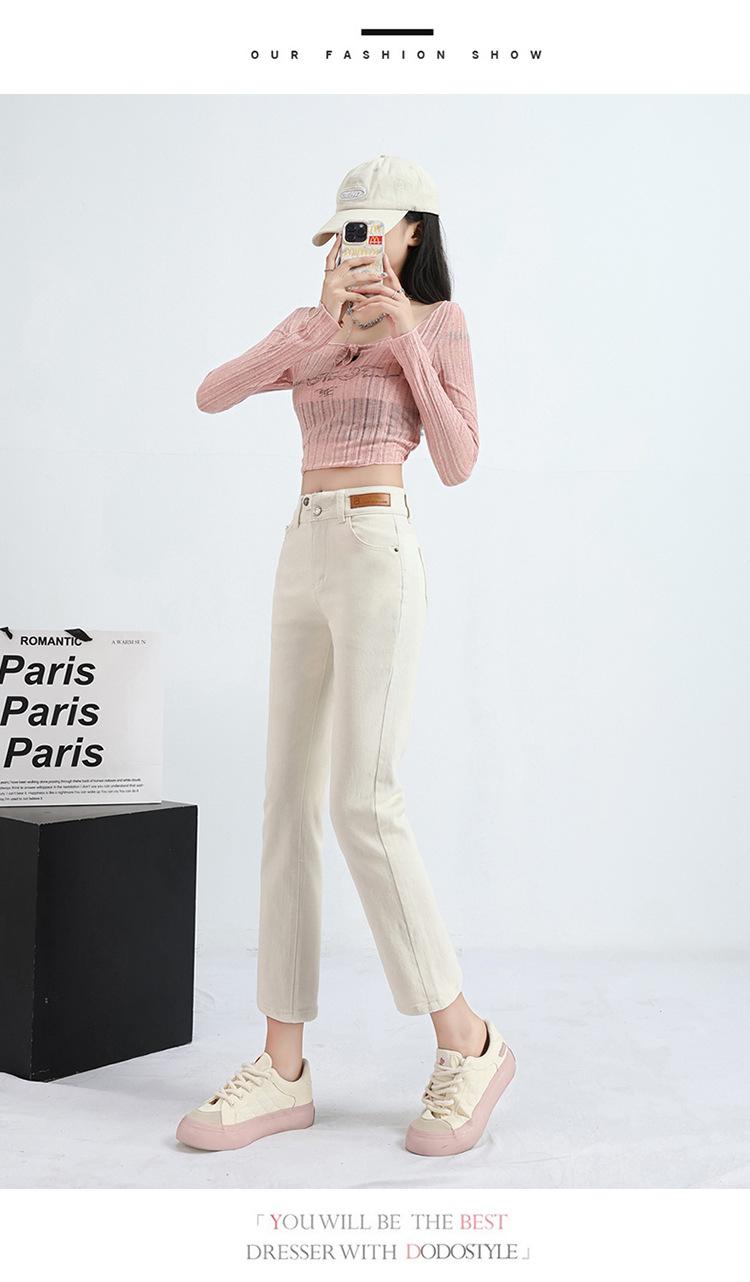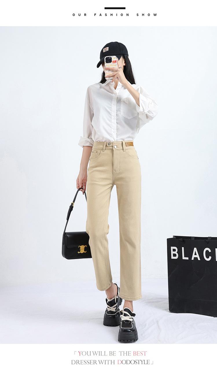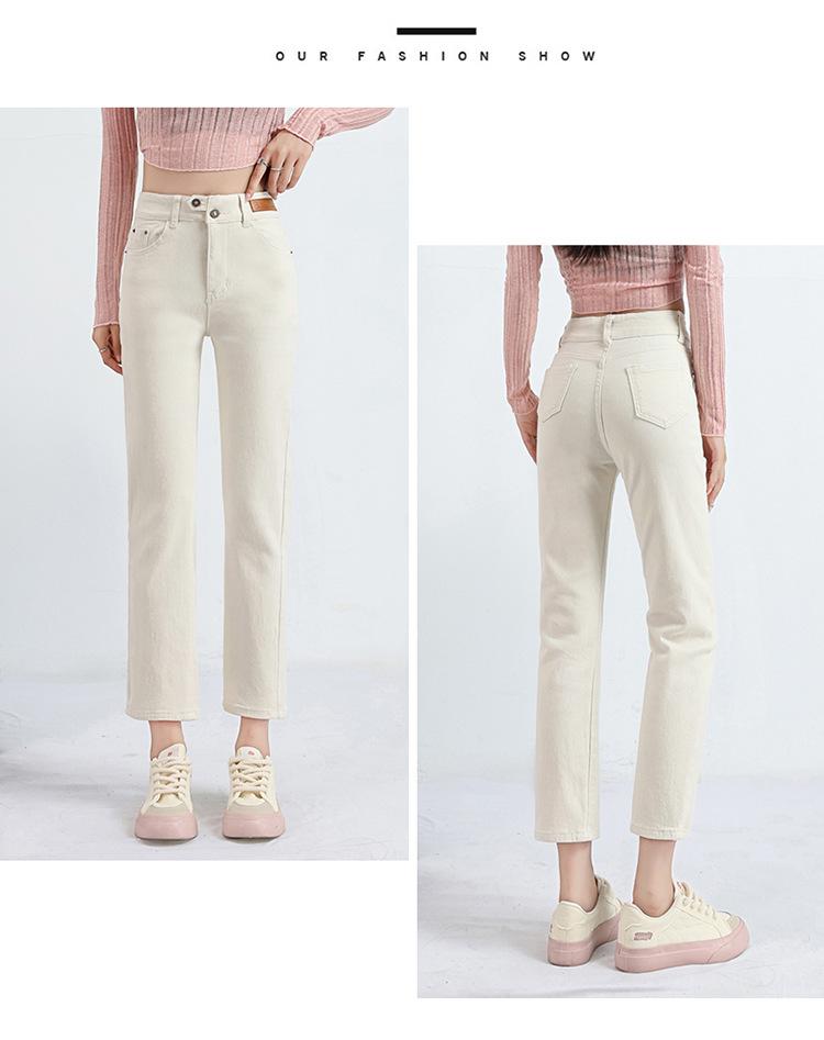 Pantalones vaqueros rectos y elásticos para mujer, otoño 2024, cintura alta, adelgazantes, ocho y nueve puntos