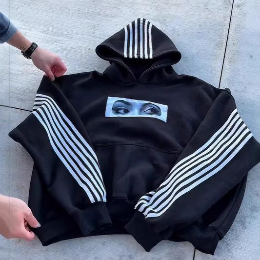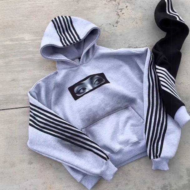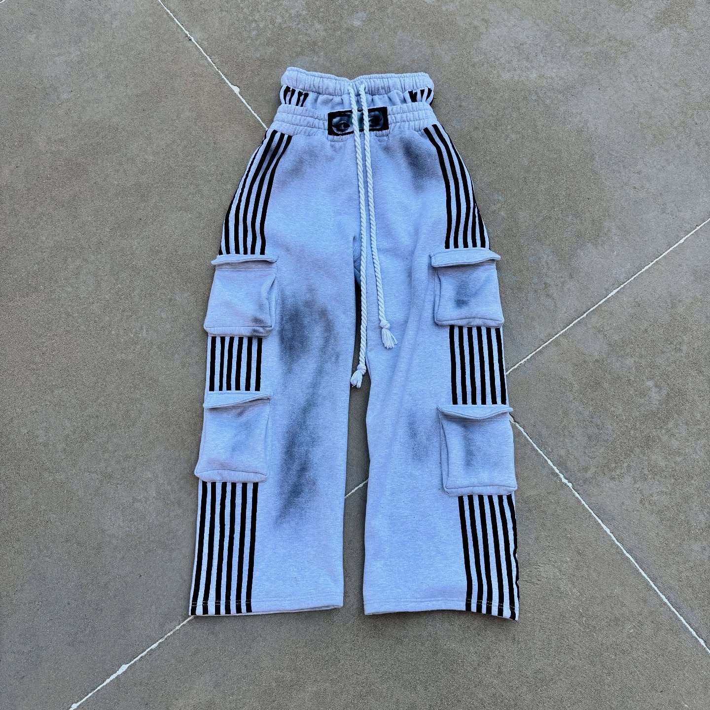 Primavera y Otoño Nueva Marca de Moda Estilo Deportivo Americano Tres Rayas Estampado Suelto Casual para Hombre y Mujer Pantalones Dobles Sudaderas y Pantalones de Chándal