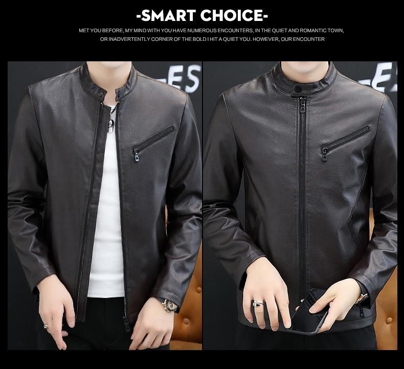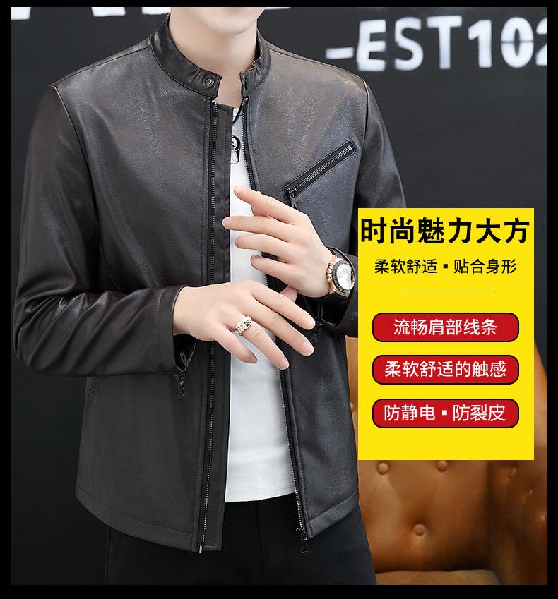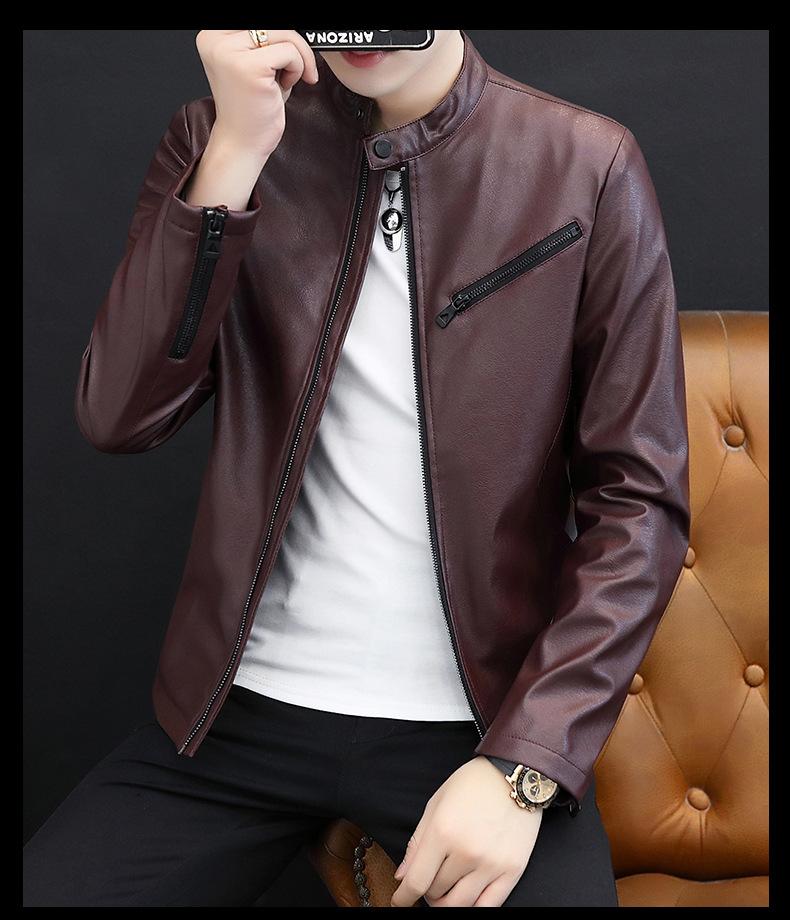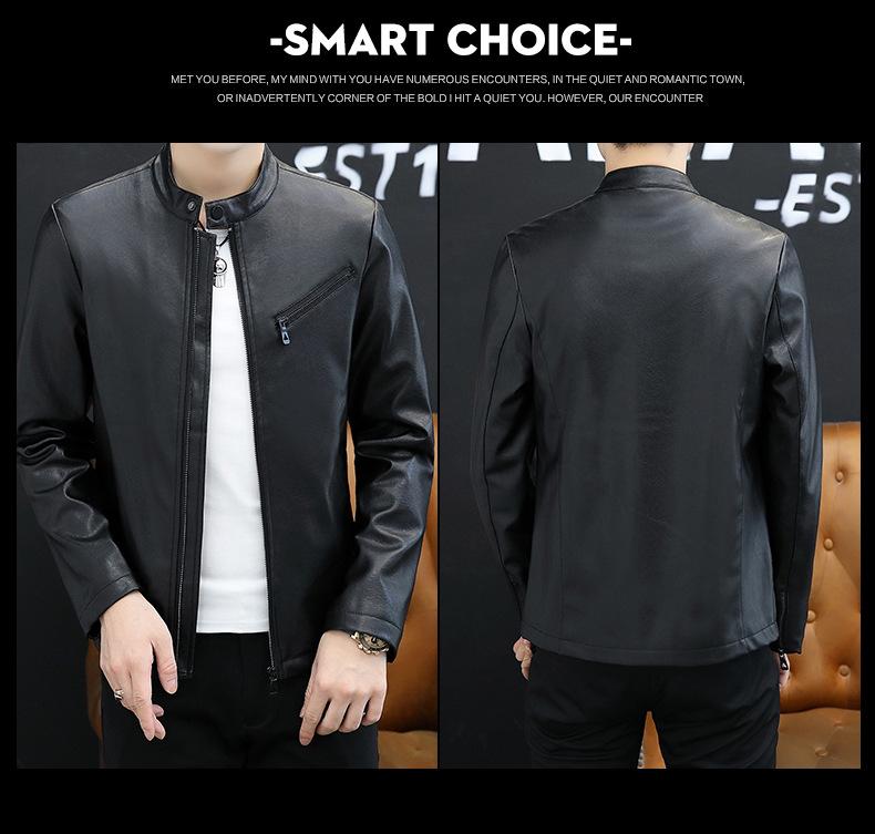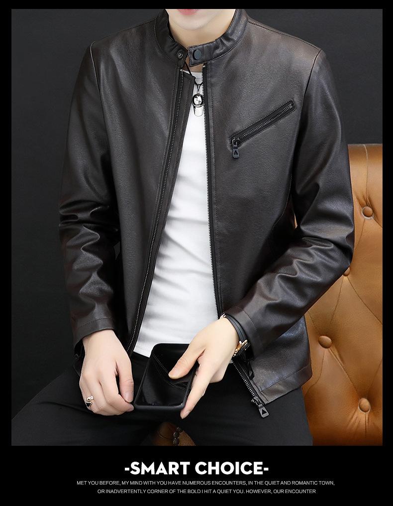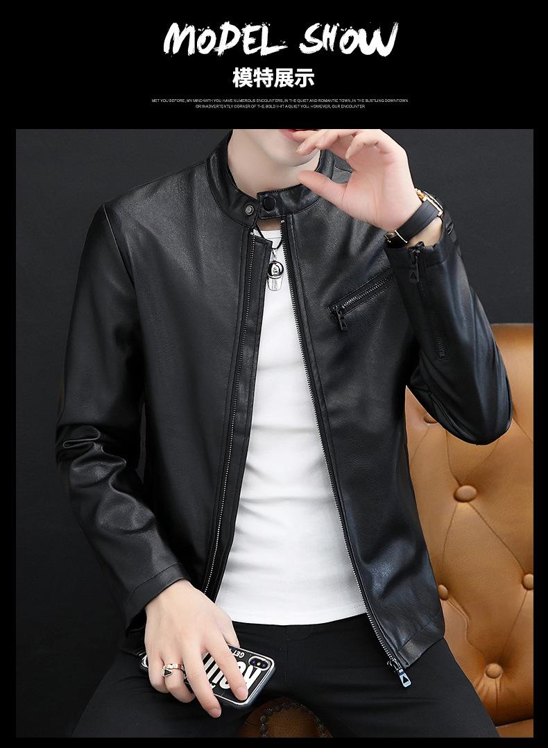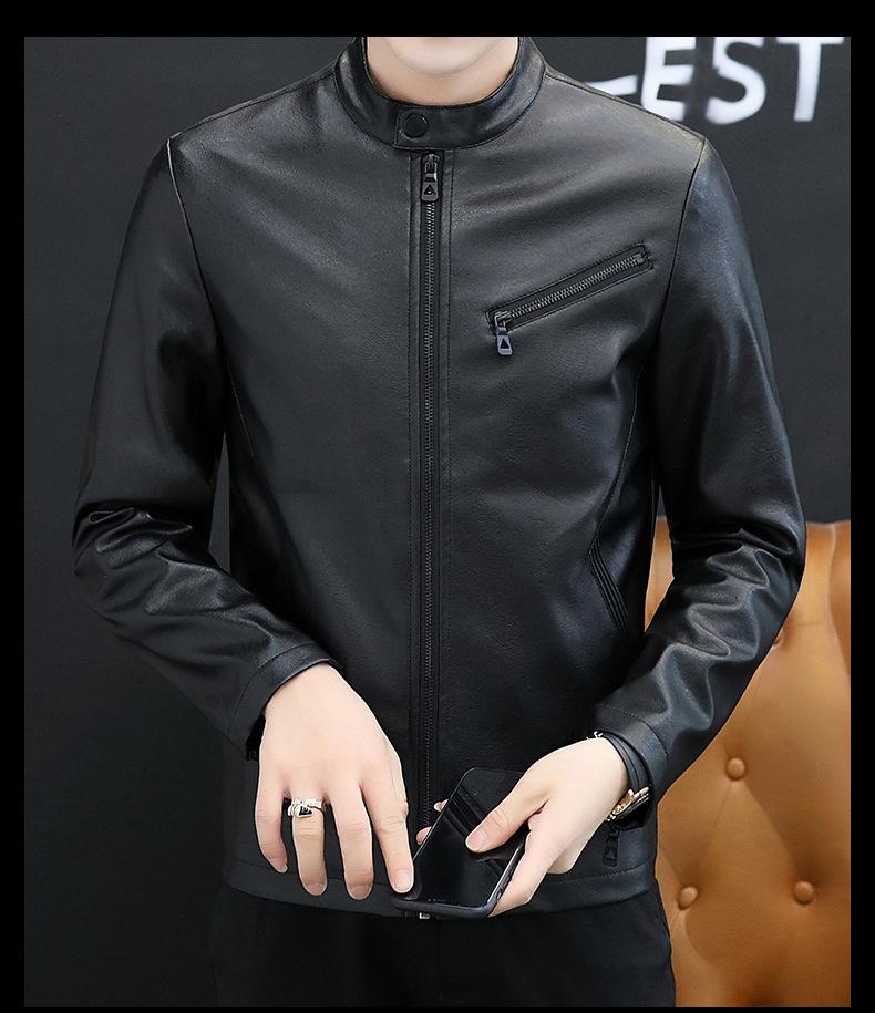 Chaqueta de cuero para hombre, chaqueta de motociclista de primavera y otoño, estilo coreano, ajustada, moderna, elegante, informal, con cuello alto, de cuero suave para jóvenes.