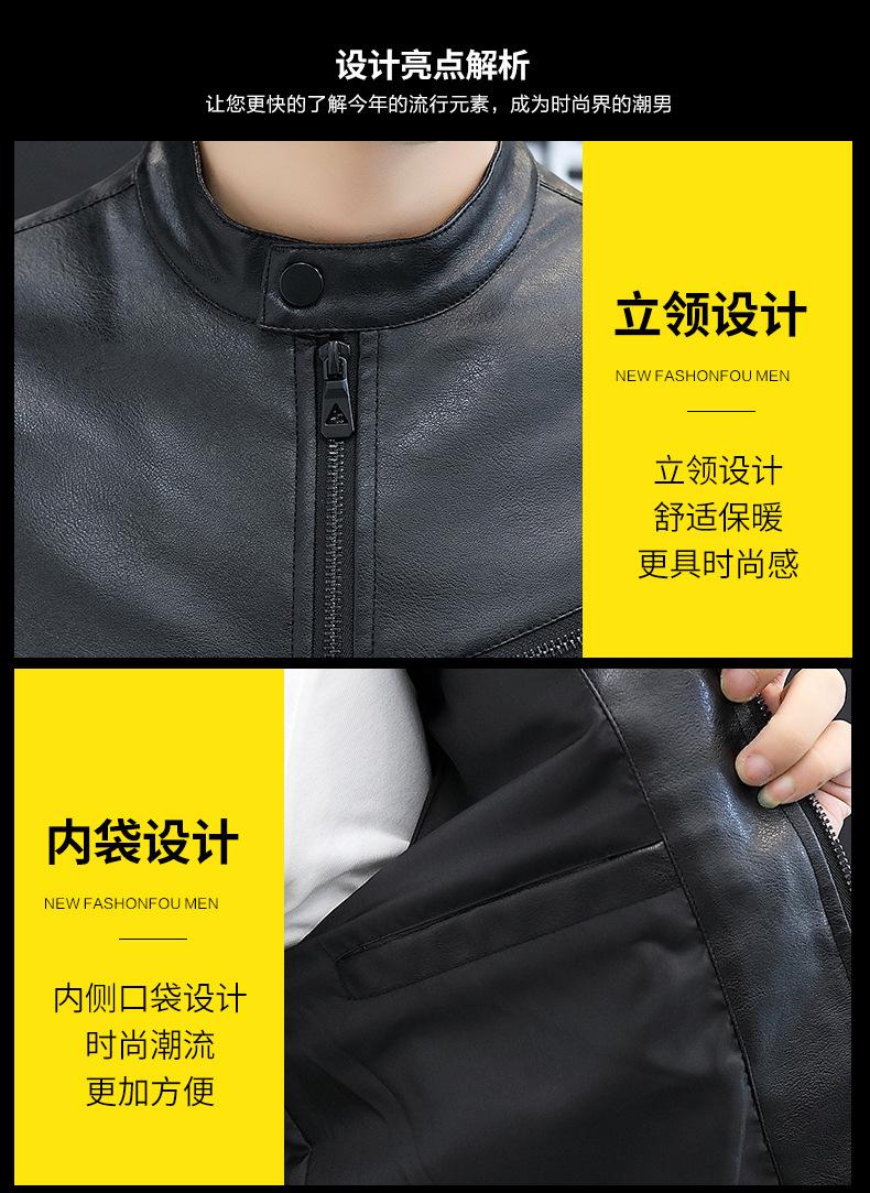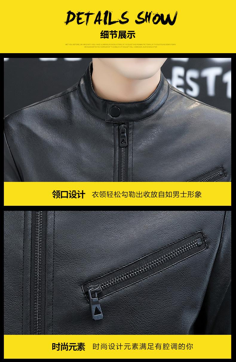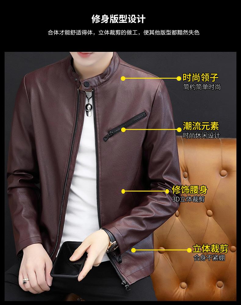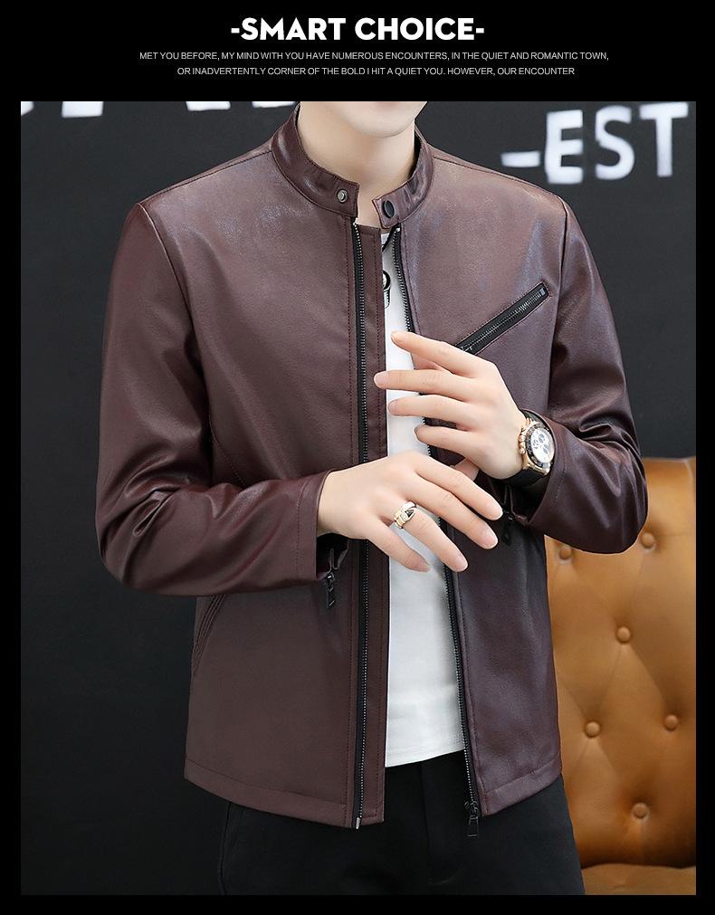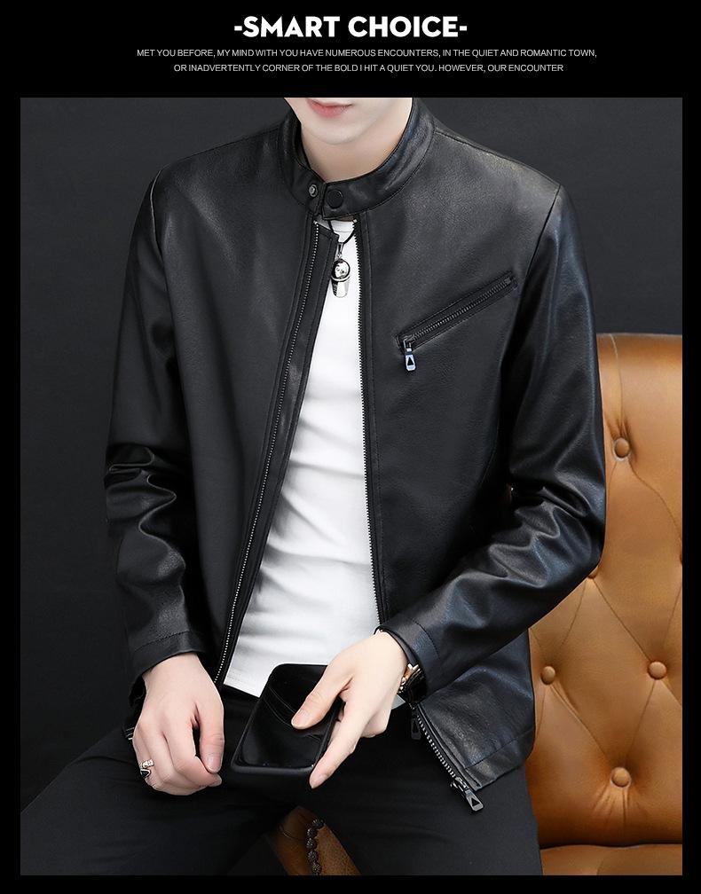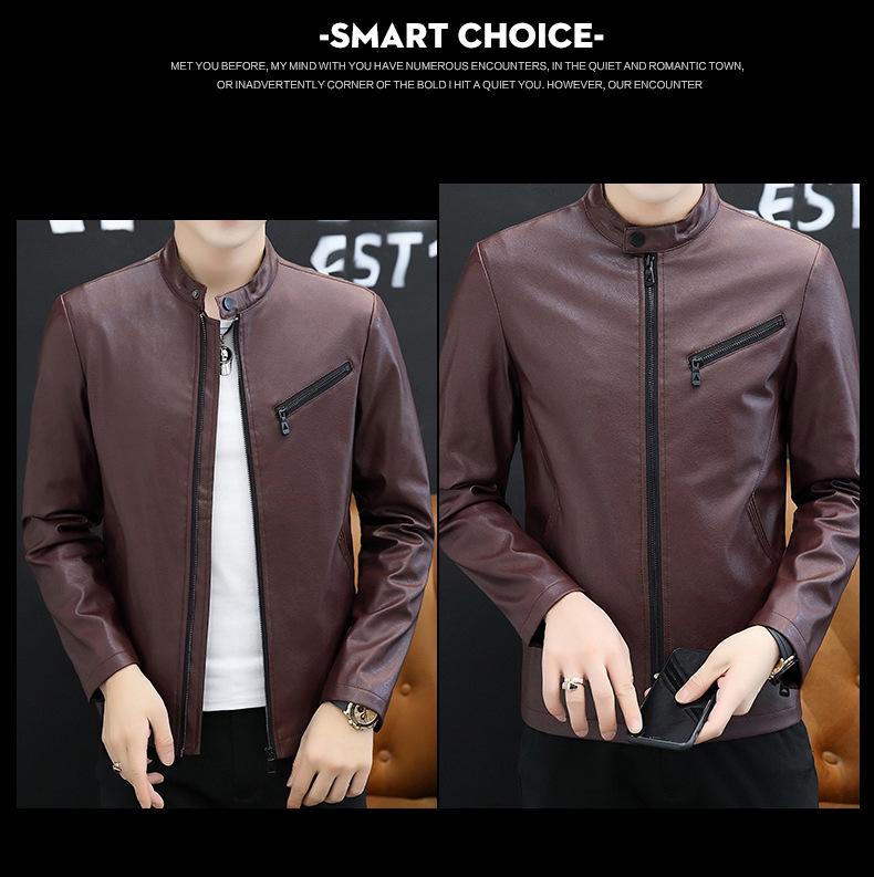 Chaqueta de cuero para hombre, chaqueta de motociclista de primavera y otoño, estilo coreano, ajustada, moderna, elegante, informal, con cuello alto, de cuero suave para jóvenes.