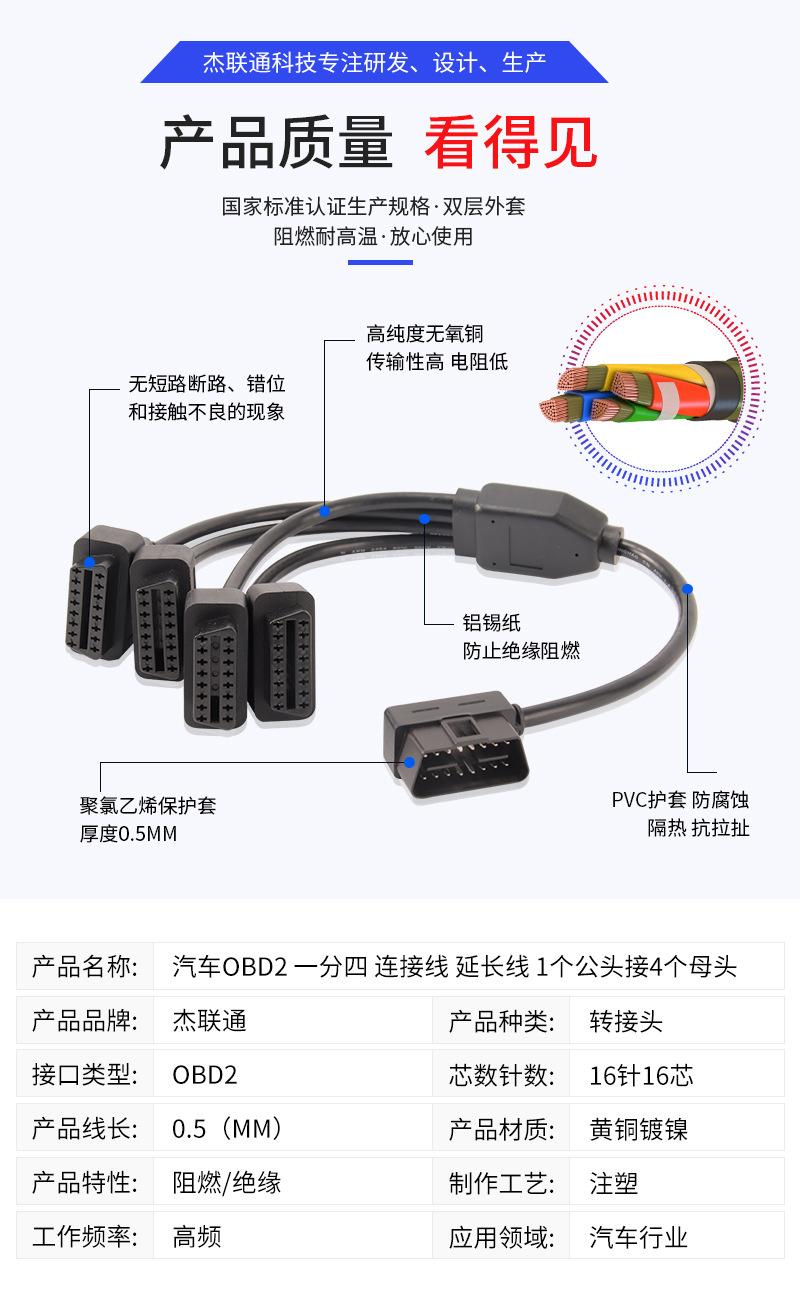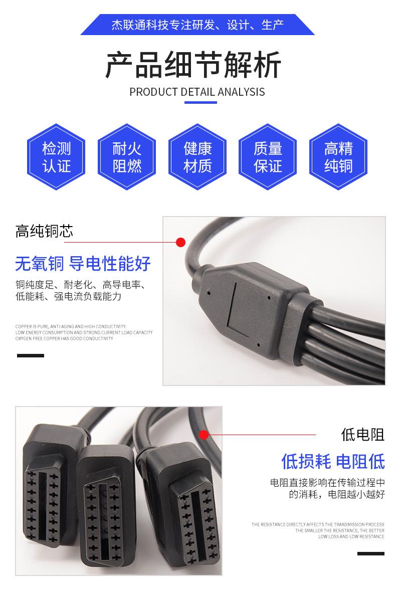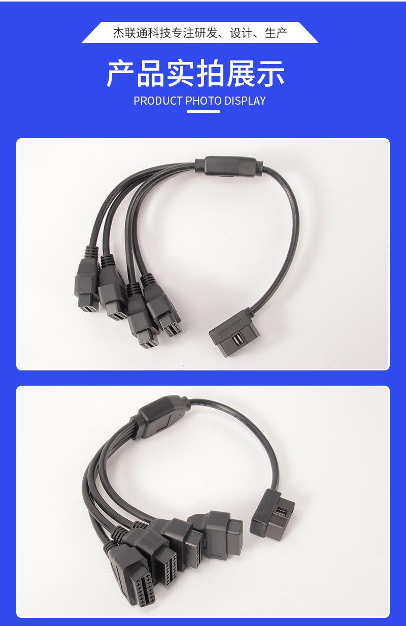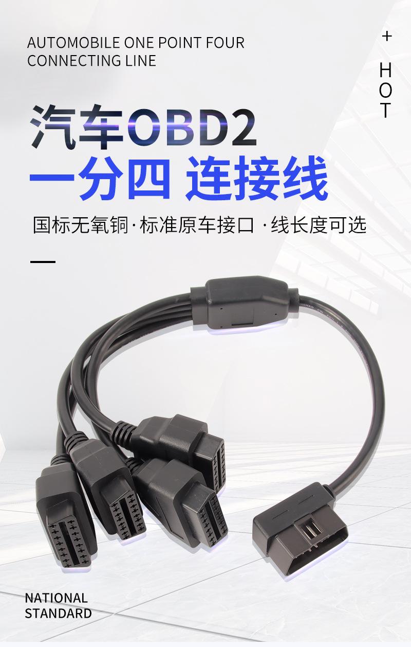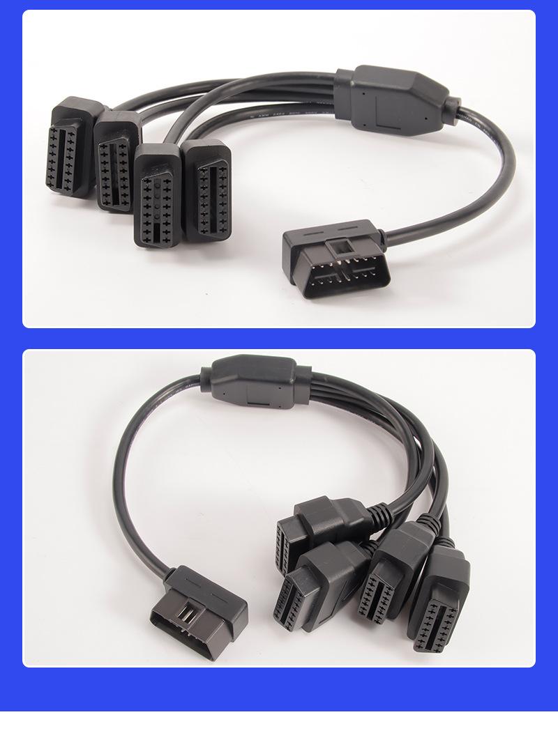 Cable de Conexión de Coche Obd2 de 16 Pines de 16 Núcleos Uno a Cuatro 0.5 m Cable de Extensión 1 Macho Conectado a 4 Cabezales Hembra Venta al por Mayor