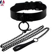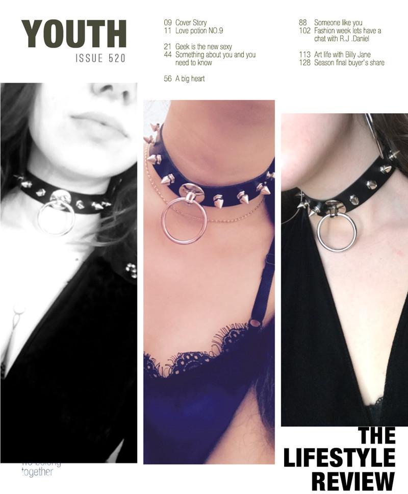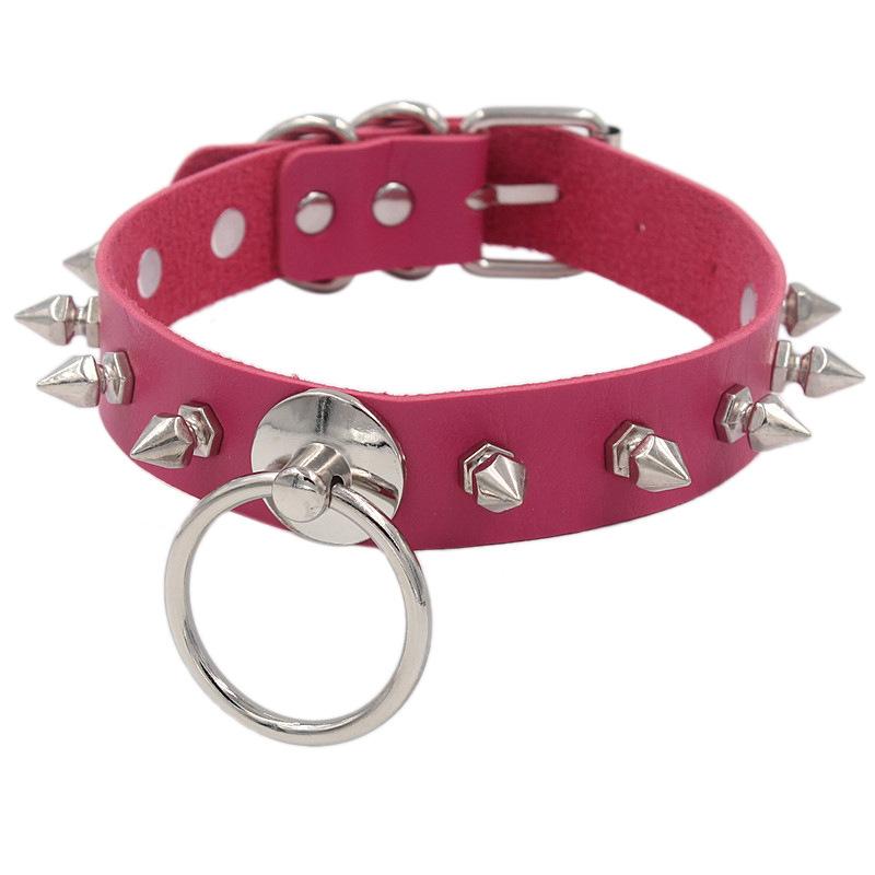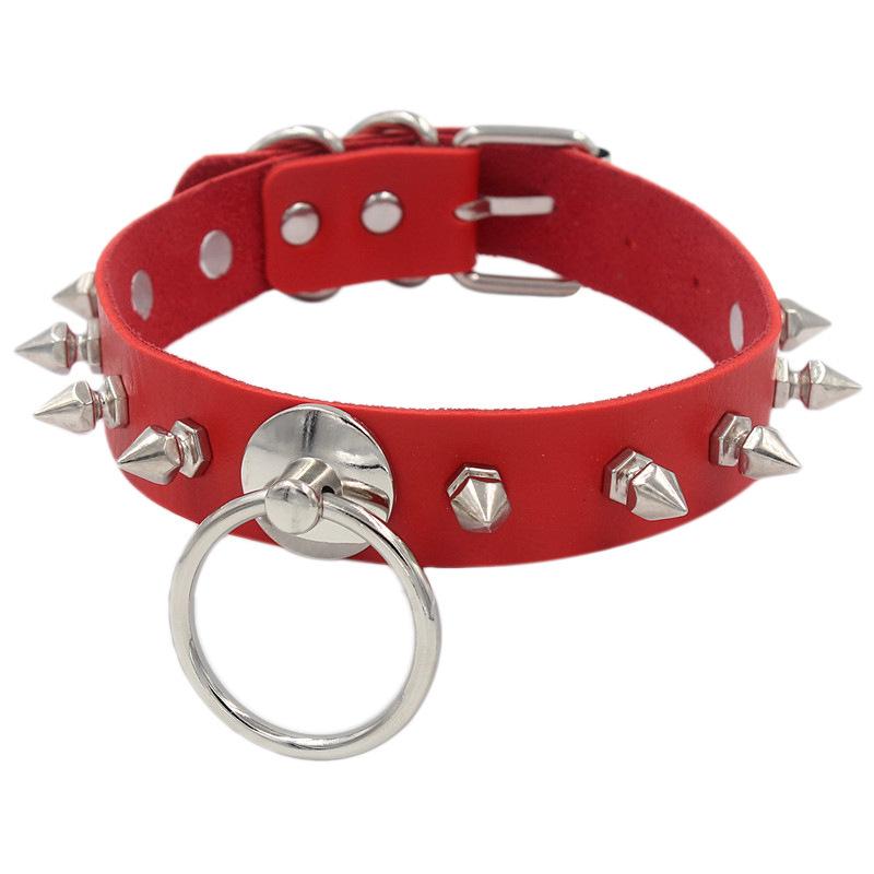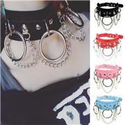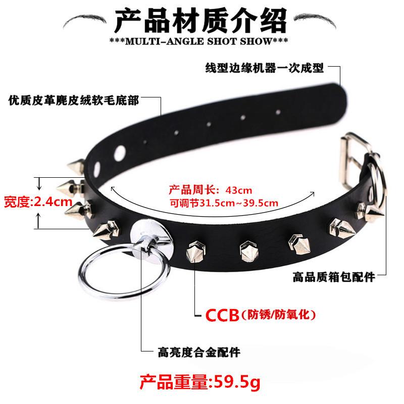 Collar de cuero con anillo redondo exagerado, estilo europeo y americano, directo de fábrica, con remaches para discotecas callejeras y cuello con púas.