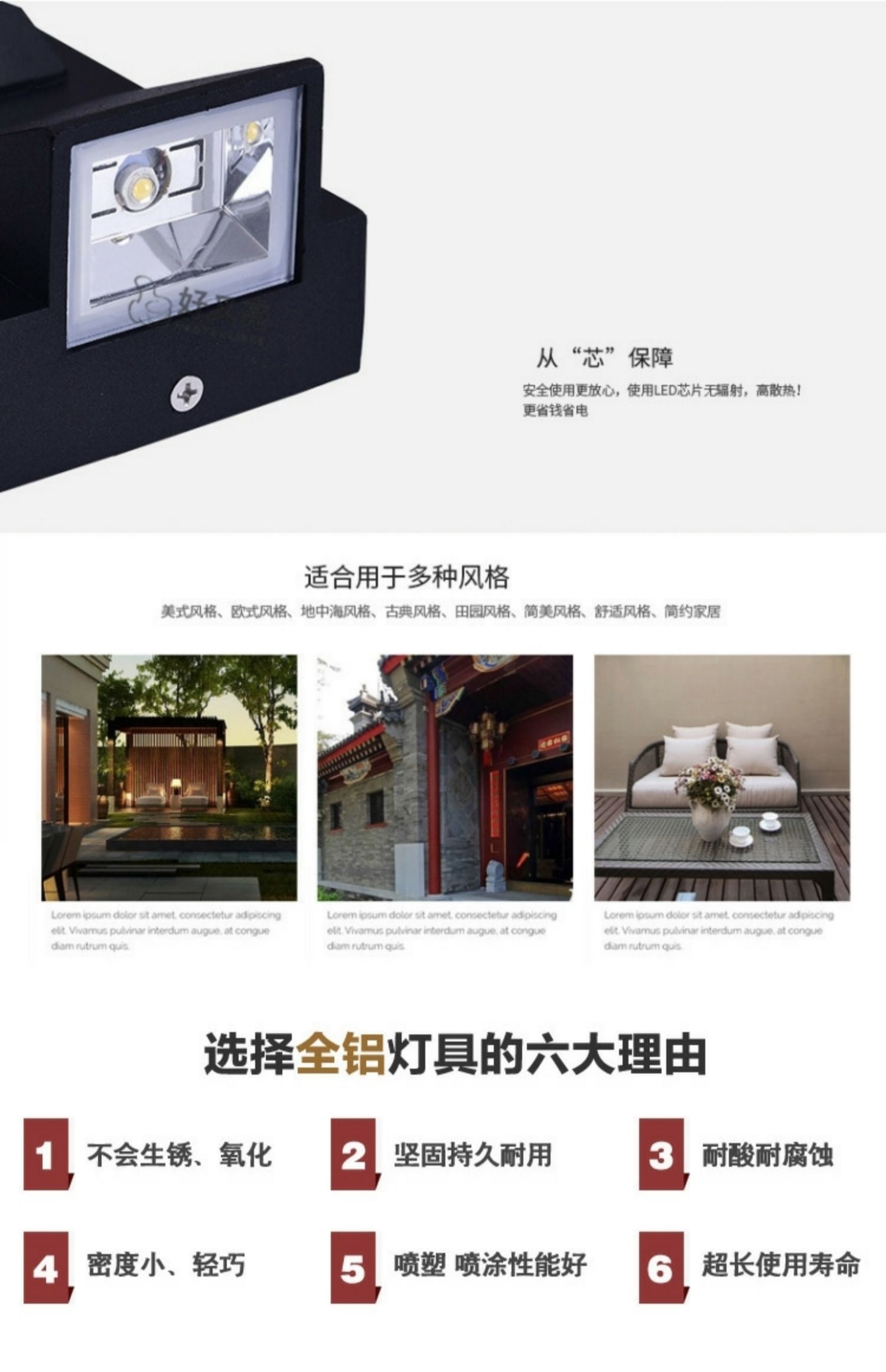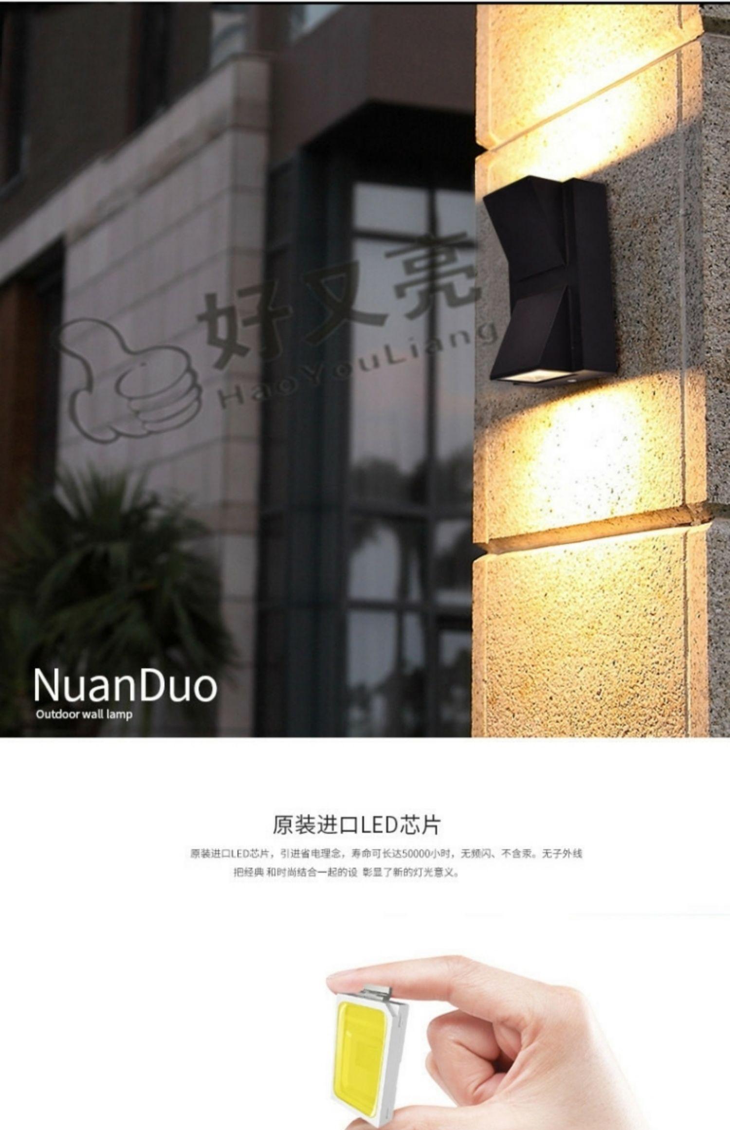 Lámpara de pared LED para balcón impermeable lámpara de jardín exterior de doble cabezal arriba y abajo Fotografía Creativa Pasillo pasillo hotel pared exterior foco