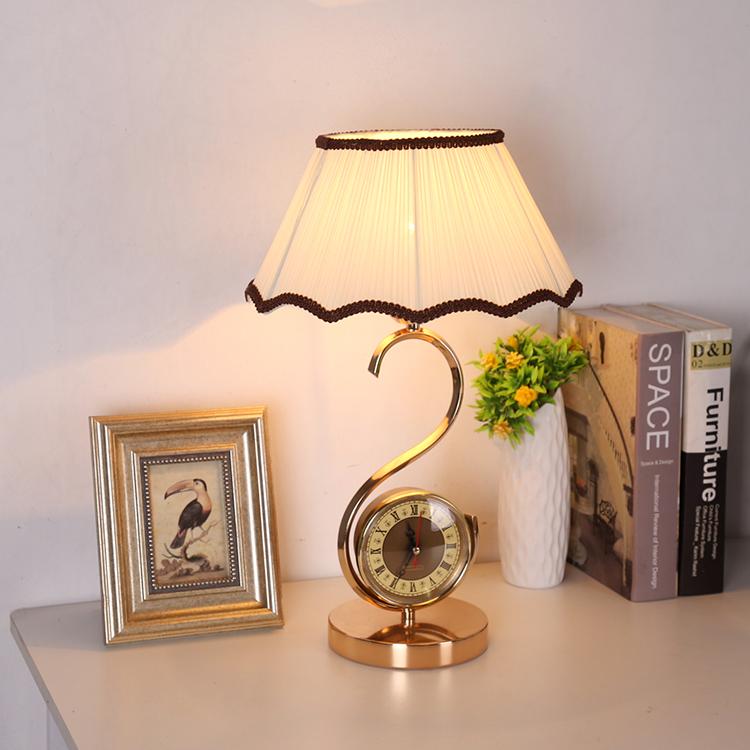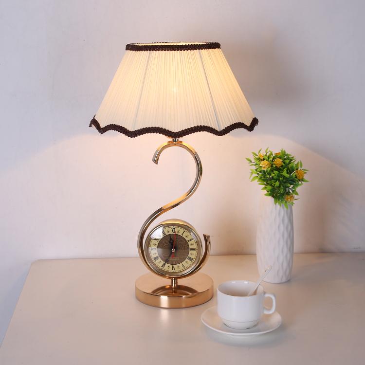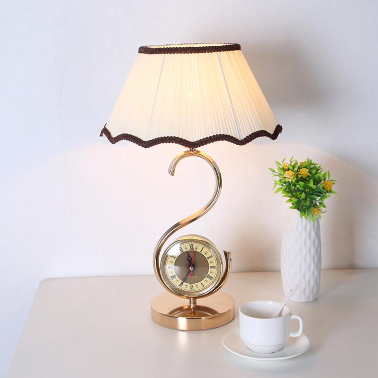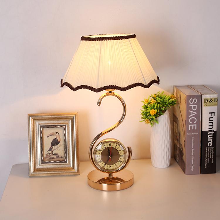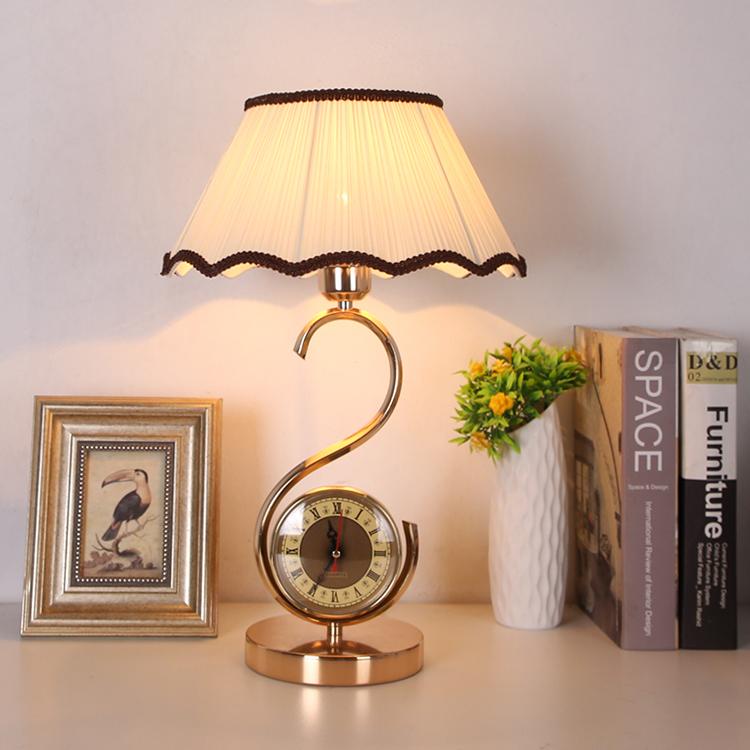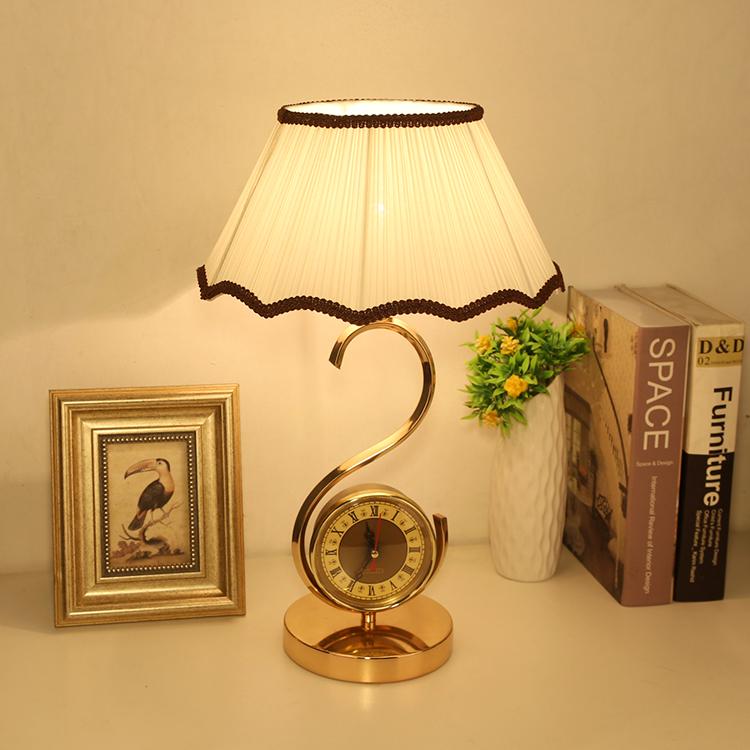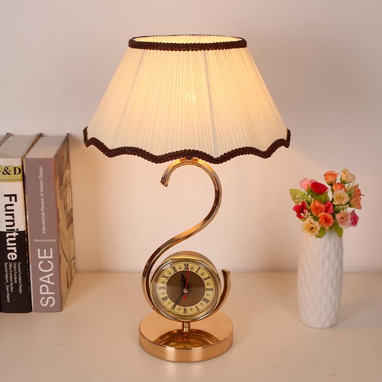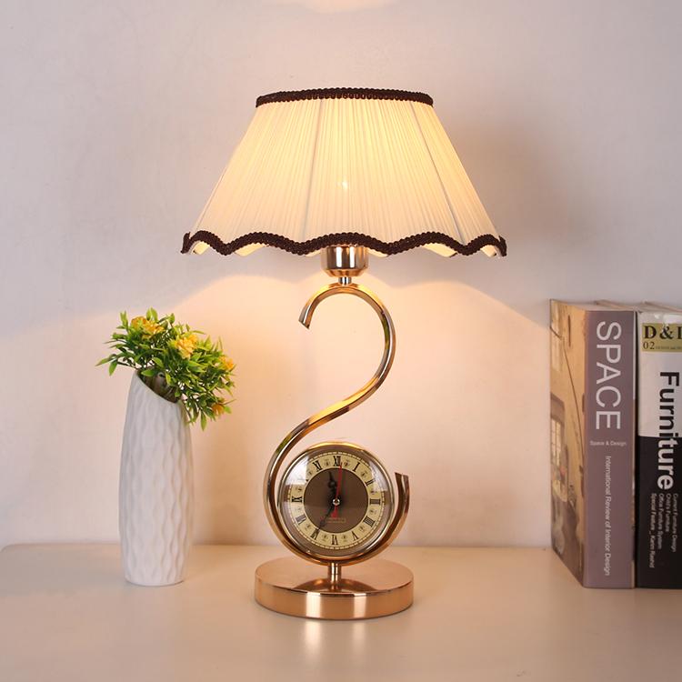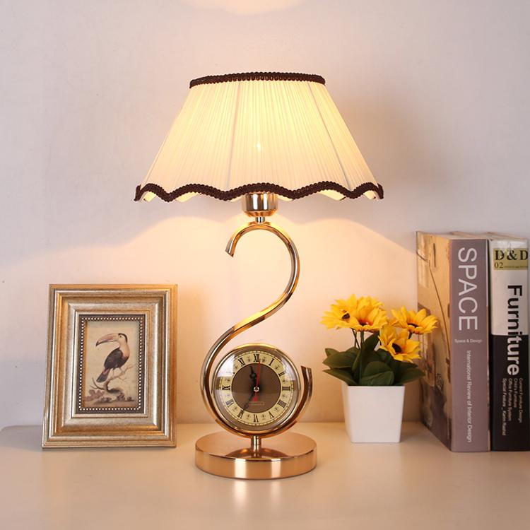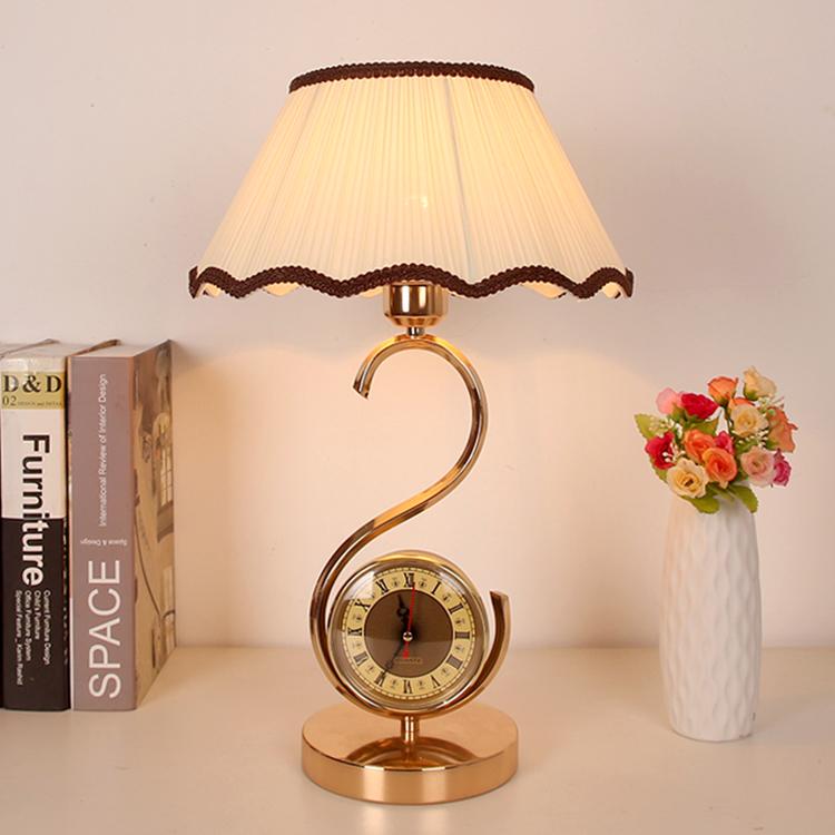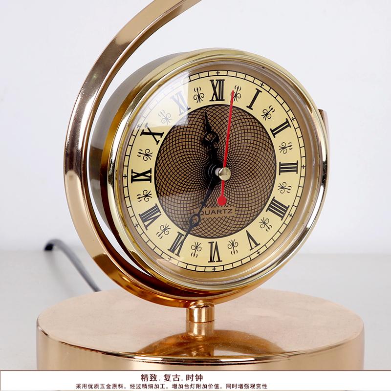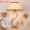 Lámpara de mesa muda estilo europeo con reloj moderna simple europea cálida para dormitorio, lámpara de noche, lámpara creativa de moda con atenuación táctil