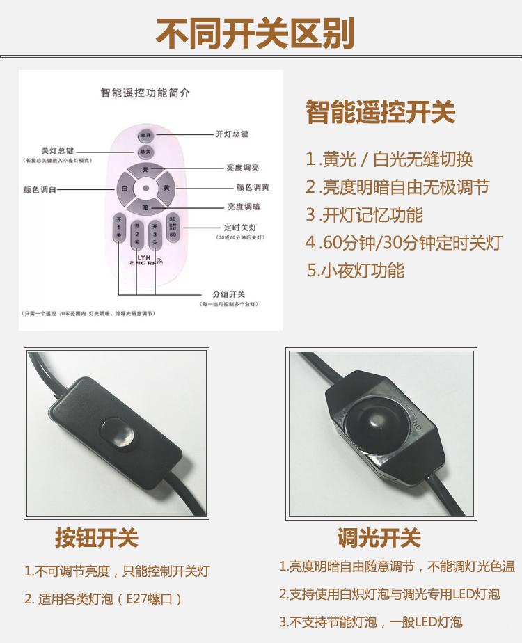 Button switch, Touch switch, Dimmer switch, Remote control switch