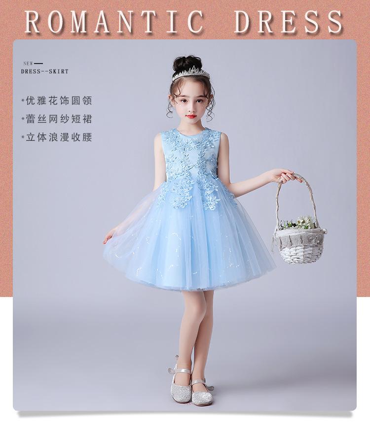 Vestido Corto sin Mangas para Niña 2025 Nuevo Vestido de Princesa Tutú para Niña de las Flores para Niños Mayores Disfraz de Actuación para el Día del Niño