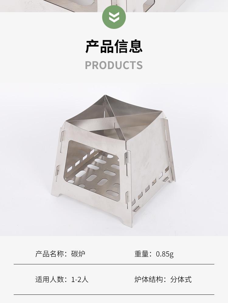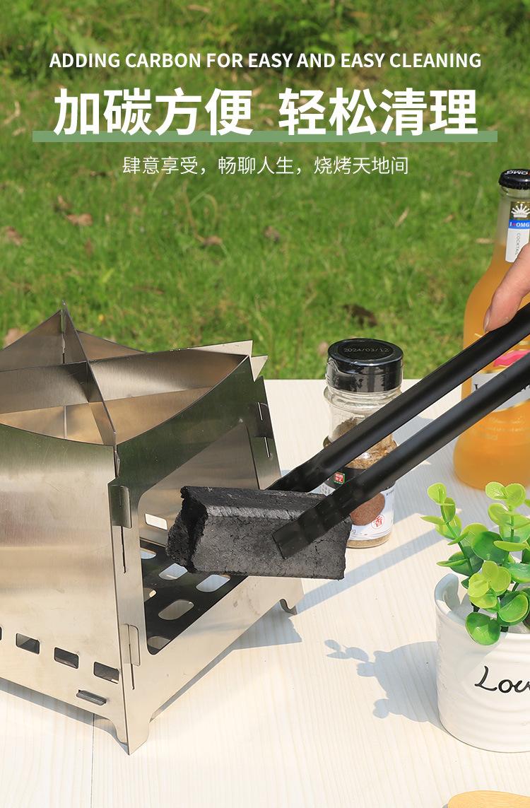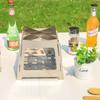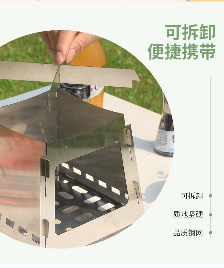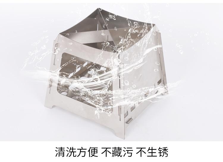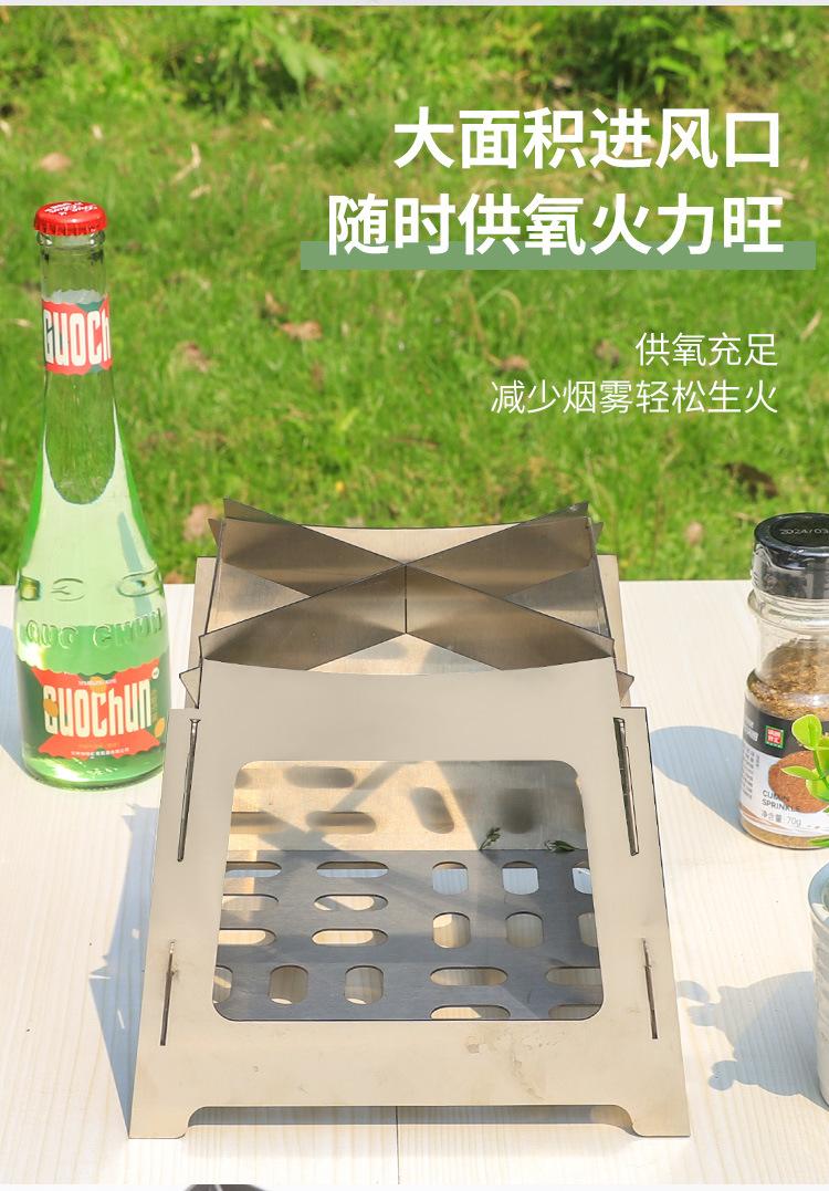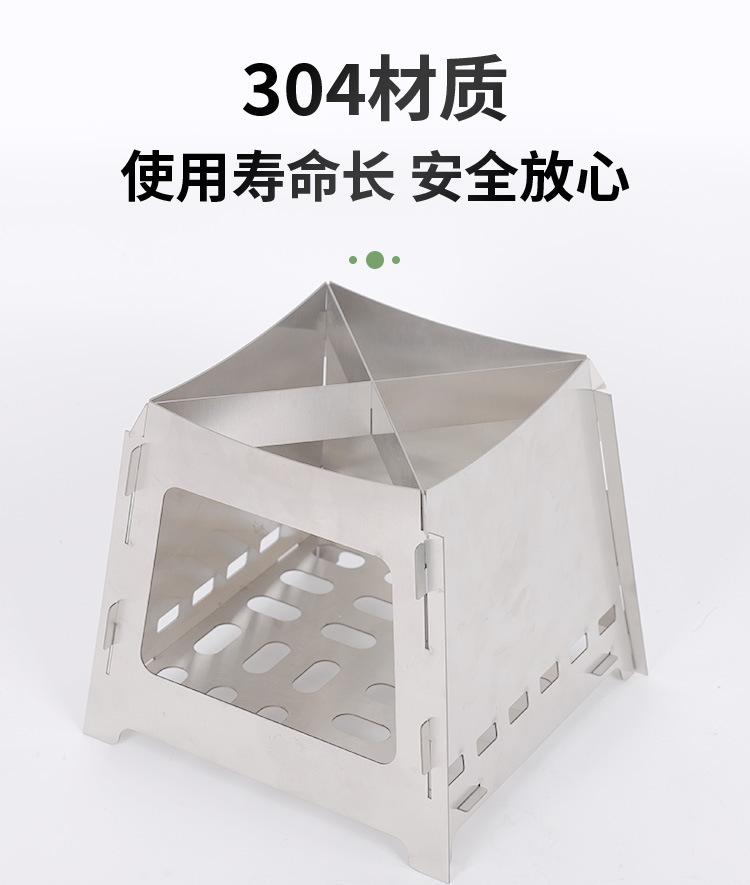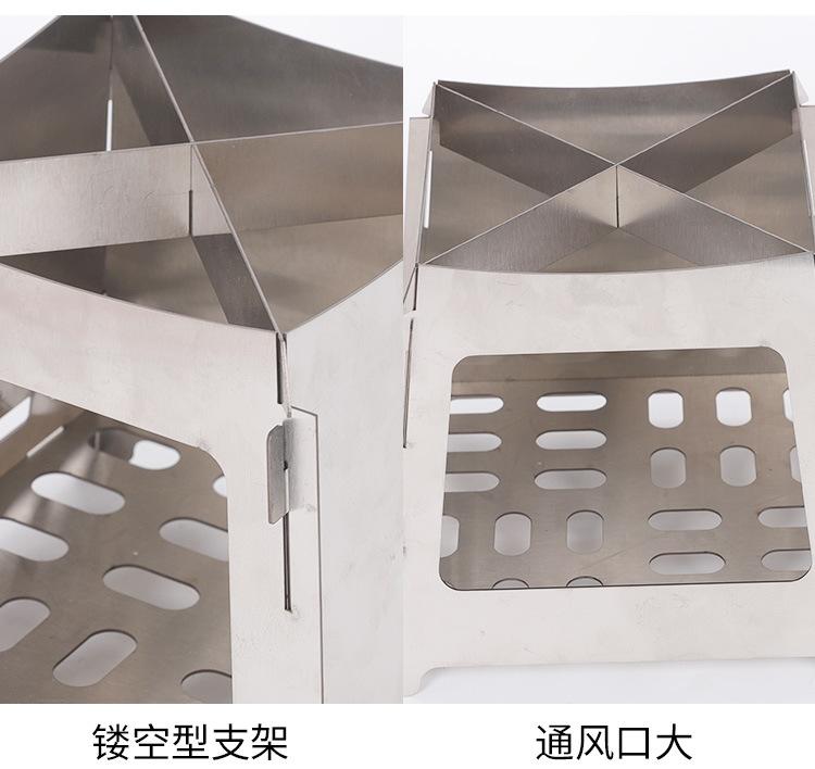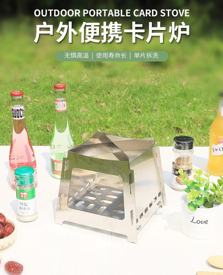 Estufa de exterior de acero inoxidable 304 personalizada, portátil, estilo camping, con tarjeta, miniestufa de picnic desmontable.