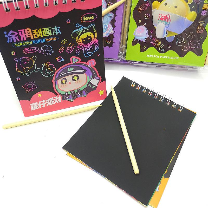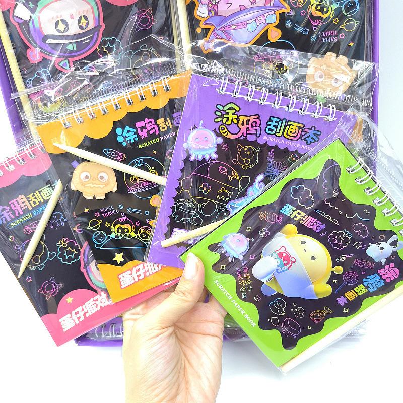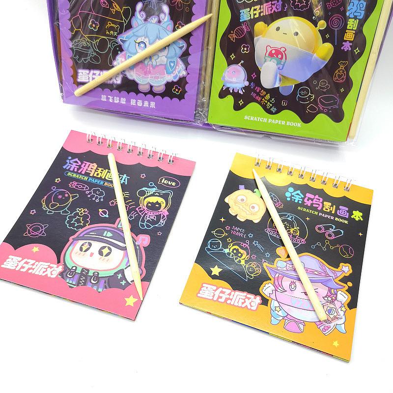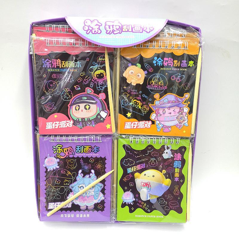 Paquete:Un paquete exterior de papel contiene 36 libros y 5 tarjetas rasca y gana en el interior.