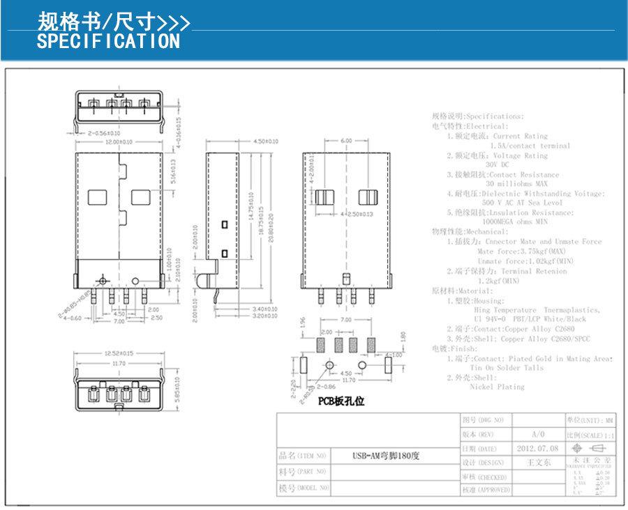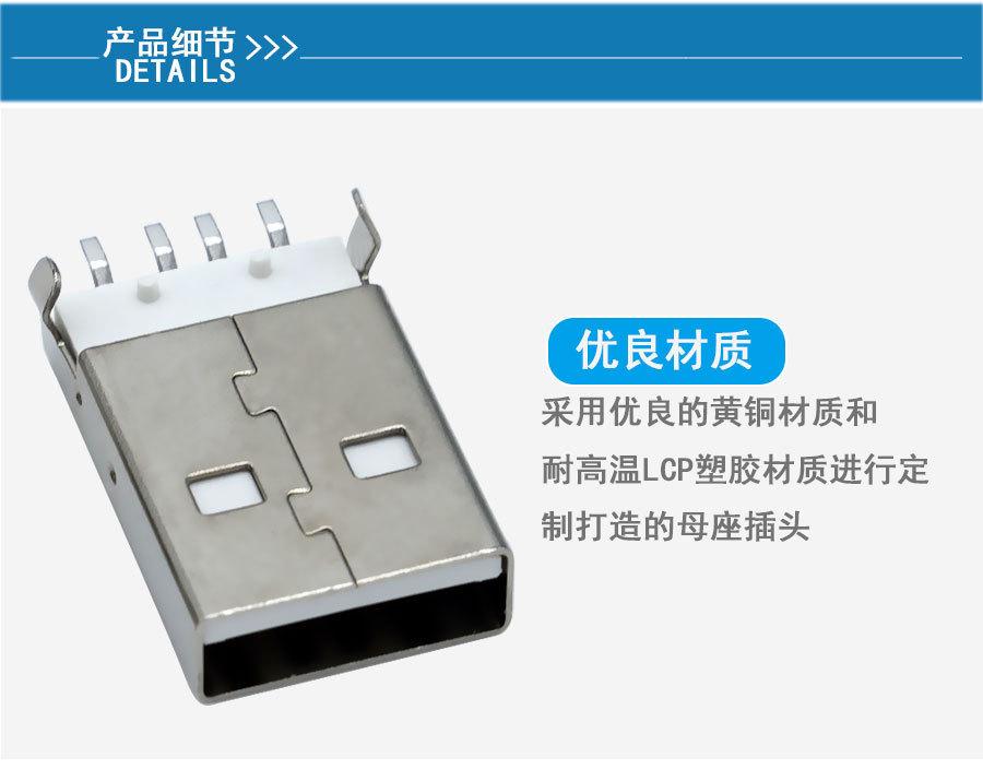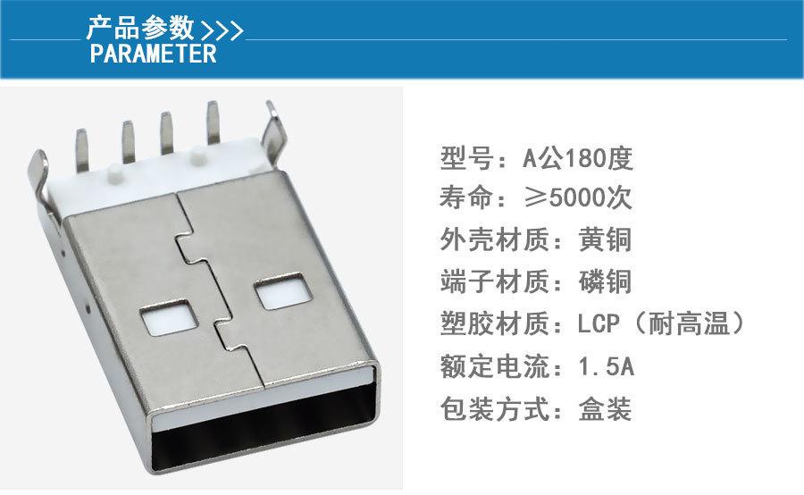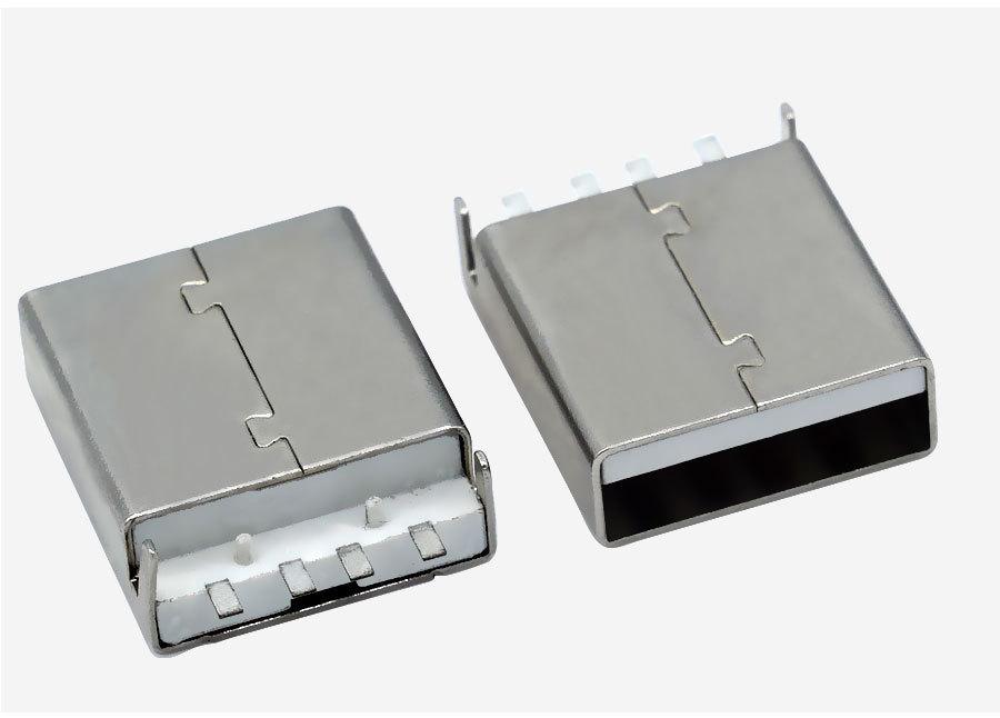 Conector USB A macho directo de fábrica AM90 grados con base doblada a 180 grados directamente en conector USB macho