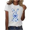 Camiseta de manga corta informal con estampado de conejo de Pascua de dibujos animados de AliExpress para mujer europea y americana de otoño