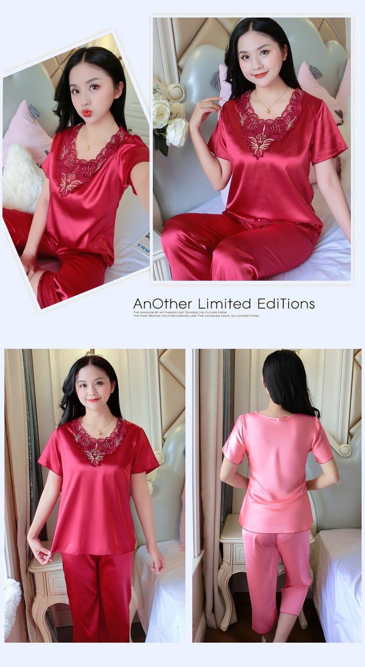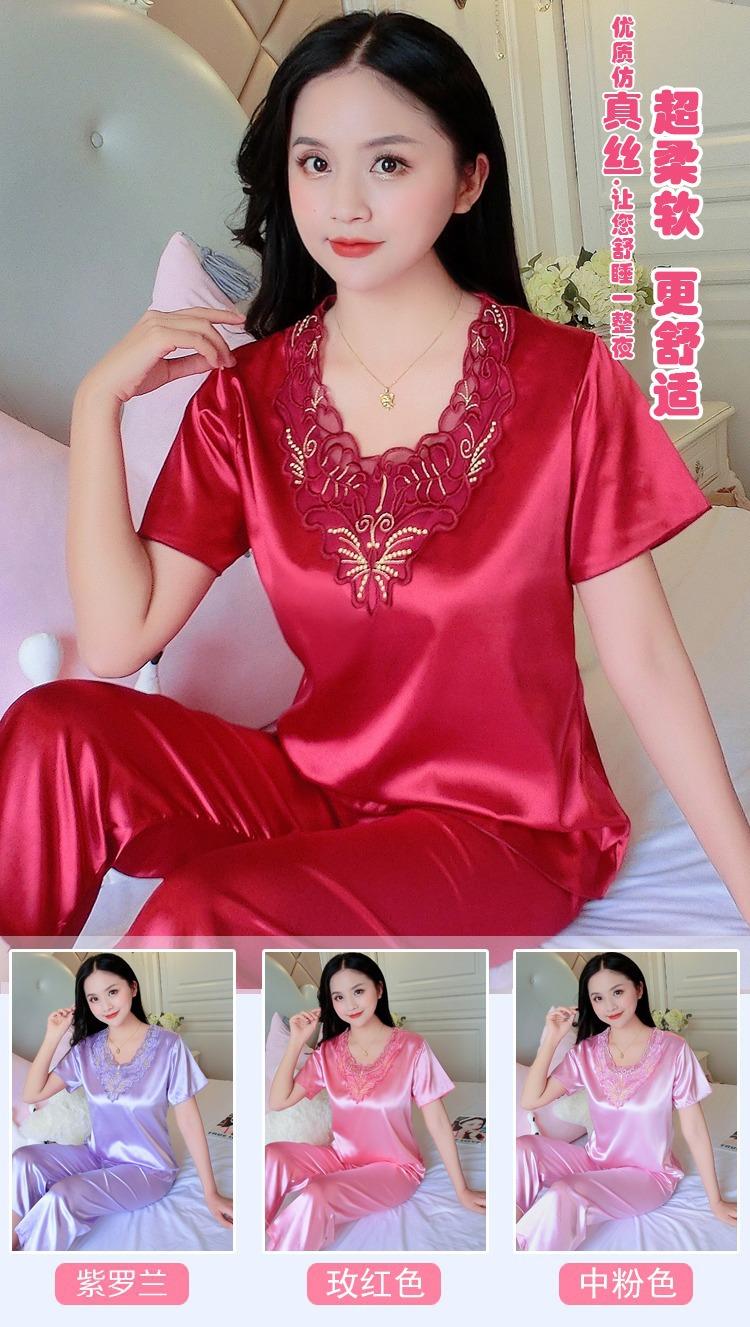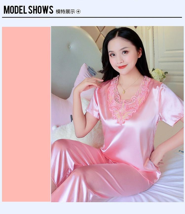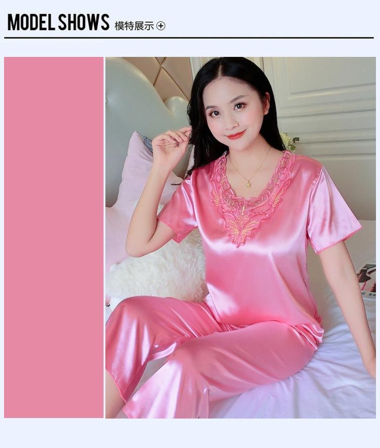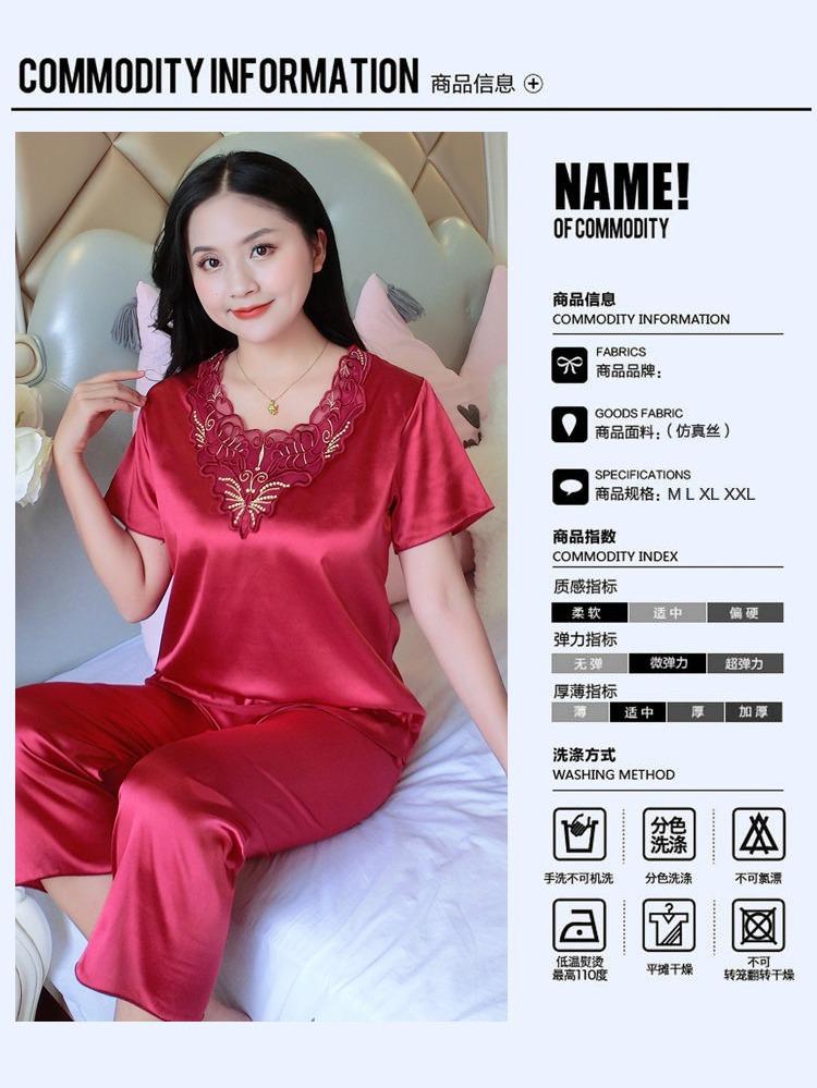 Compra Pijamas de Seda de Hielo para Mujer, Conjunto de Verano de Manga Corta, Estilo Delgado, Estilo Veraniego de Moda, Ropa de Dormir Nueva de Verano para Mujer 2025 al por mayor en Joom.pro