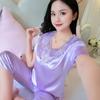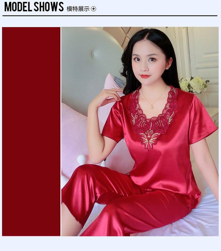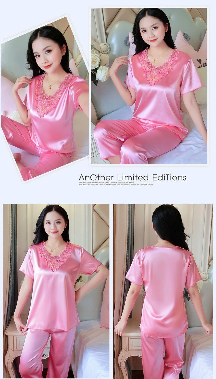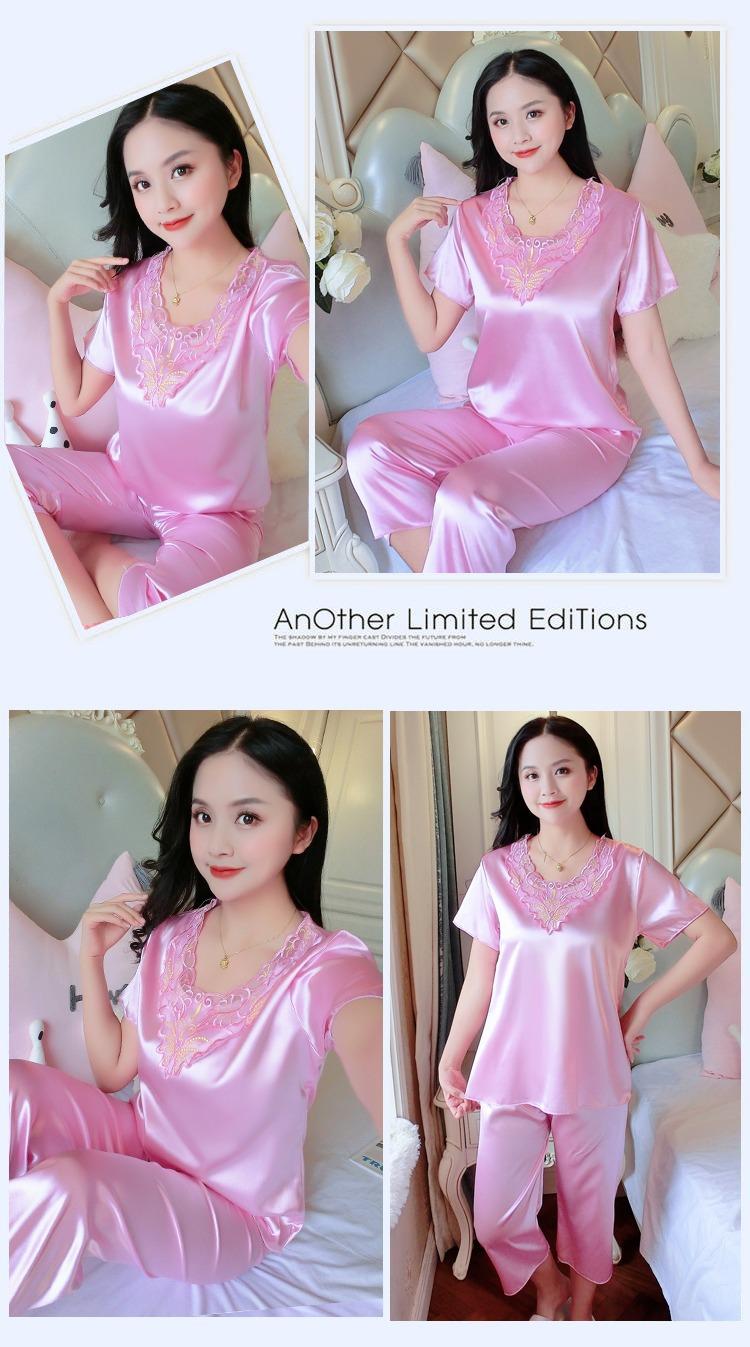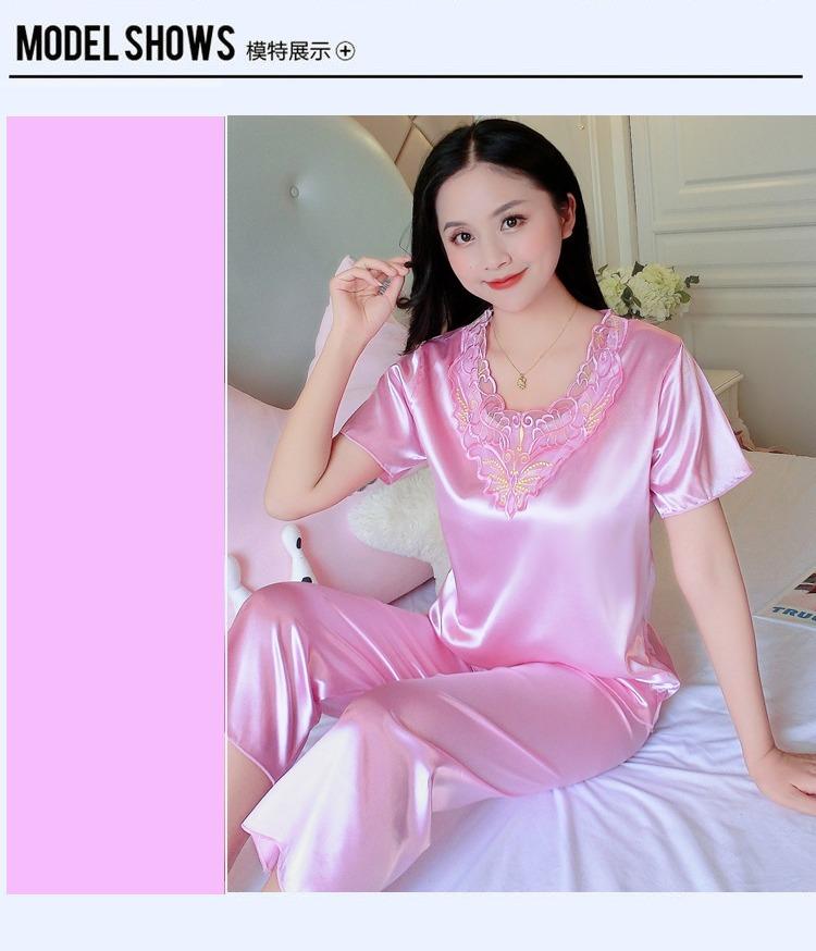 Compra Pijamas de Seda de Hielo para Mujer, Conjunto de Verano de Manga Corta, Estilo Delgado, Estilo Veraniego de Moda, Ropa de Dormir Nueva de Verano para Mujer 2025 al por mayor en Joom.pro