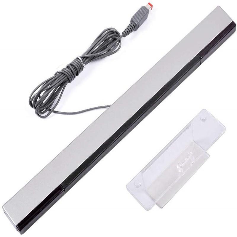 El nuevo sensor con cable de Wii se puede colocar en cualquier ángulo del televisor para que funcione con los periféricos. Con este sensor, los mandos izquierdo y derecho se pueden conectar inalámbricamente al televisor.
