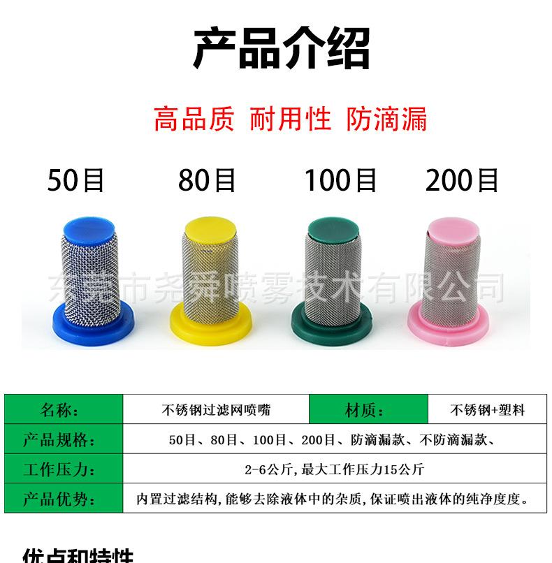 Accesorios para pulverizadores de pesticidas agrícolas, boquilla de filtro antigoteo de acero inoxidable, malla 50, malla 80, malla 100 y malla 200.