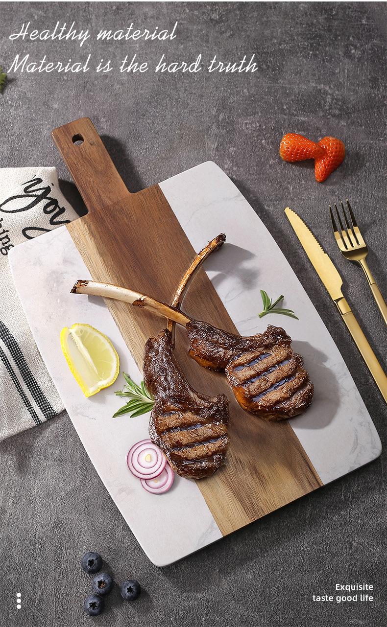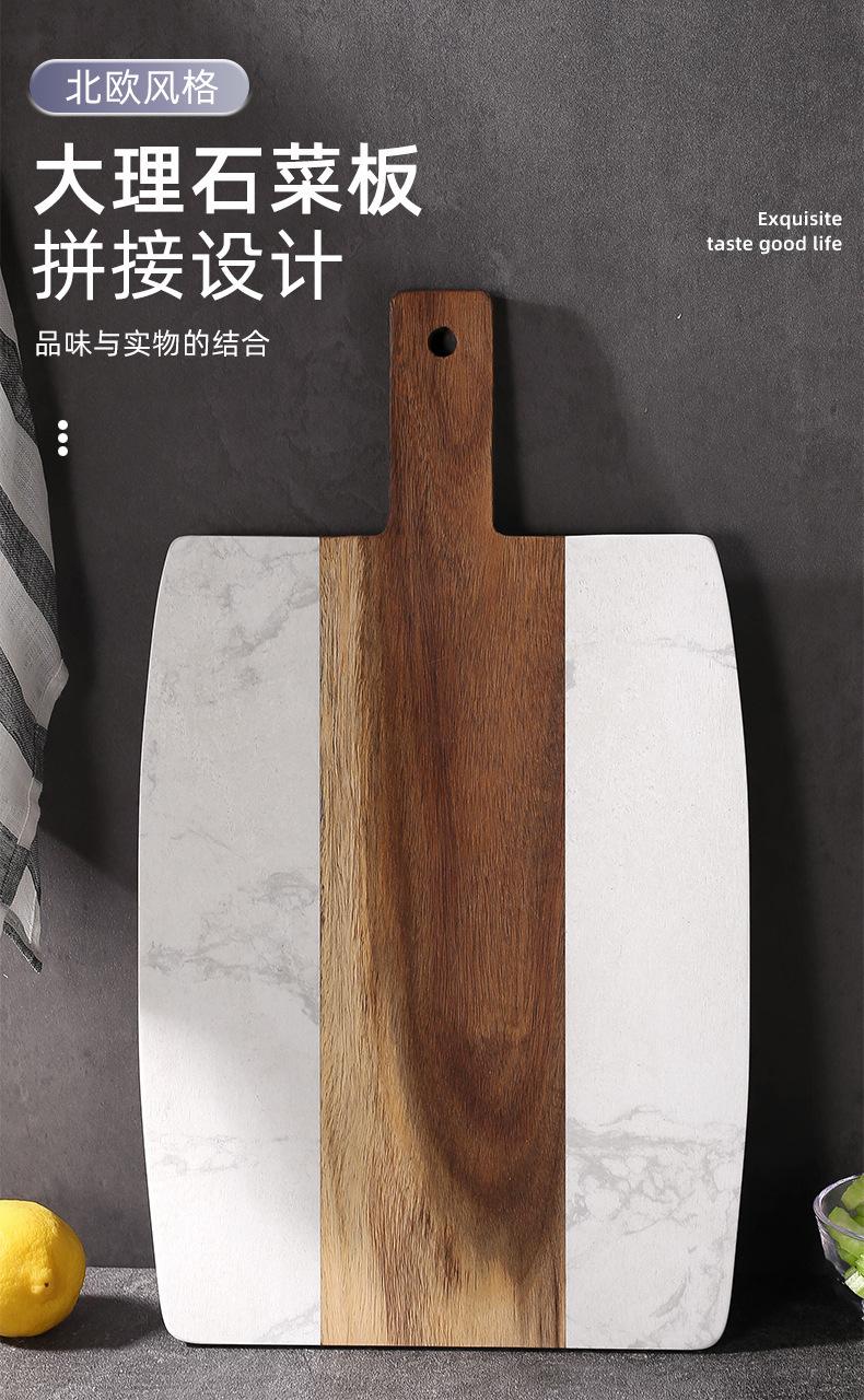 Compra Tabla de cortar de mármol, madera de acacia con costuras, juego de tabla de cortar de mármol blanco, plato para queso, plato para queso, tabla de cortar con mango al por mayor en Joom.pro