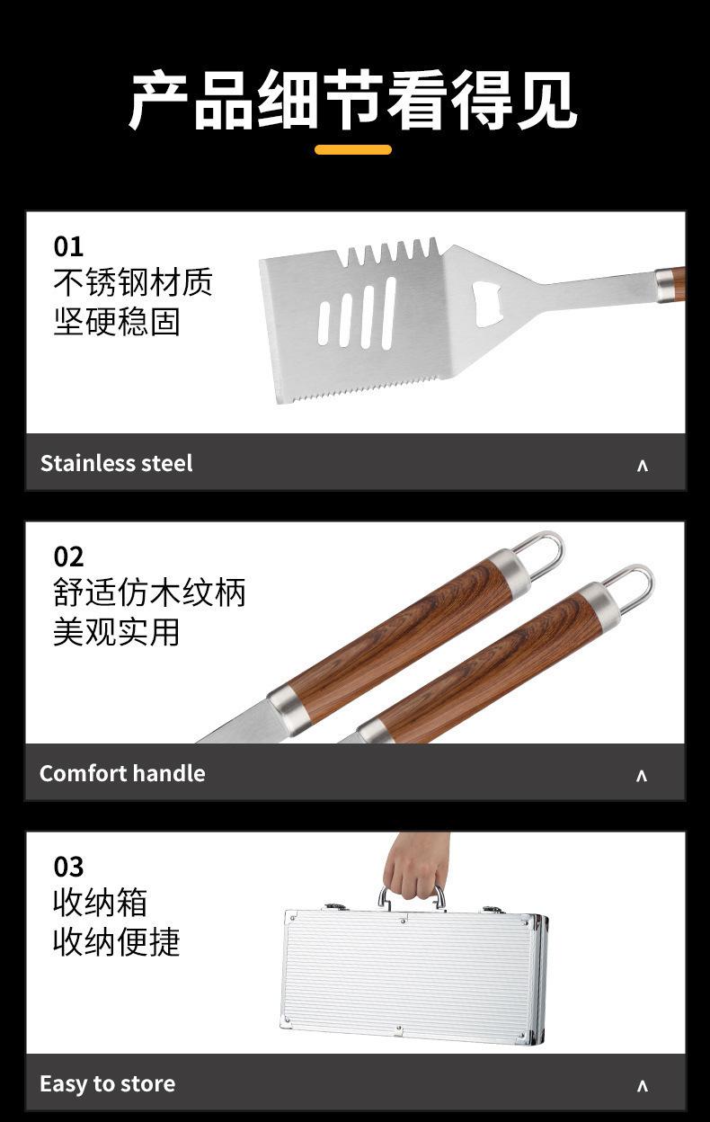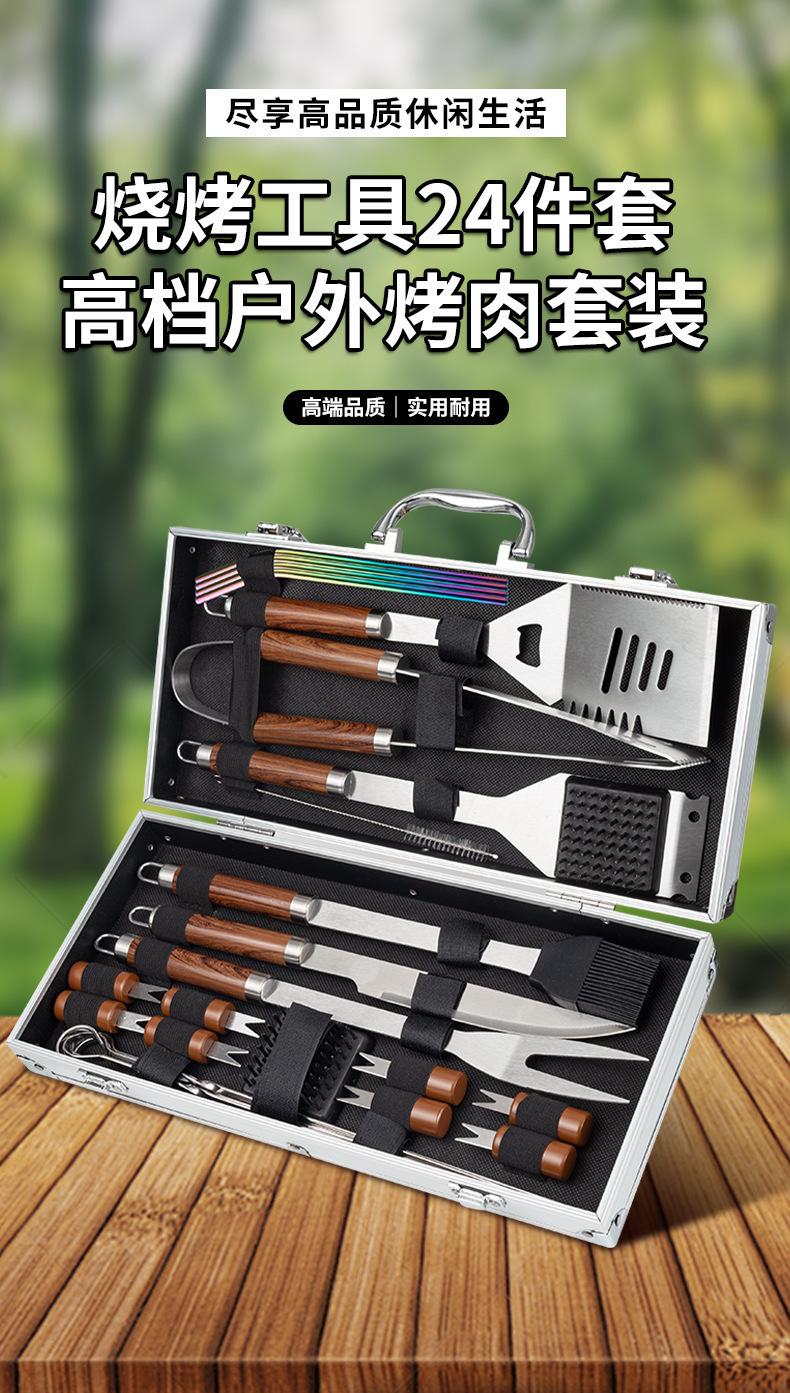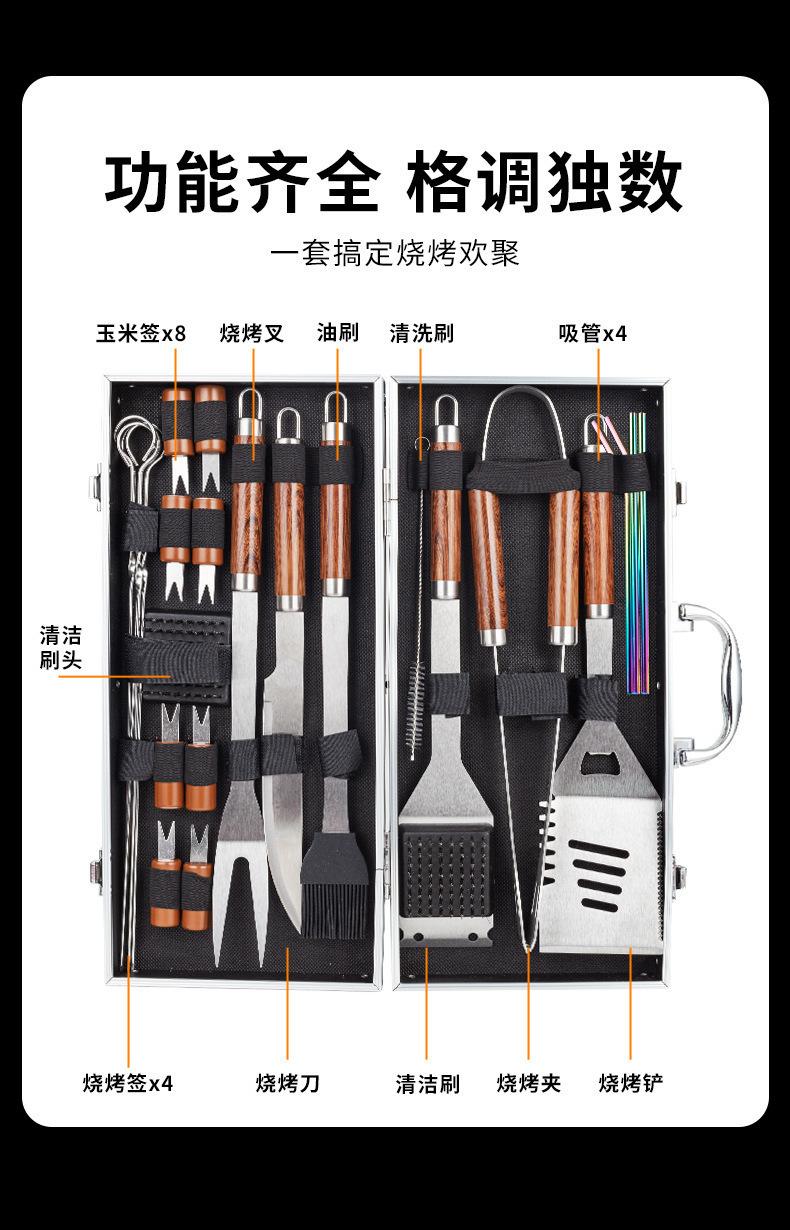 Compra Juego de barbacoa de combinación de caja de aluminio y acero inoxidable, utensilios para barbacoa de alta gama, herramientas para barbacoa de camping al aire libre, 24 piezas al por mayor en Joom.pro