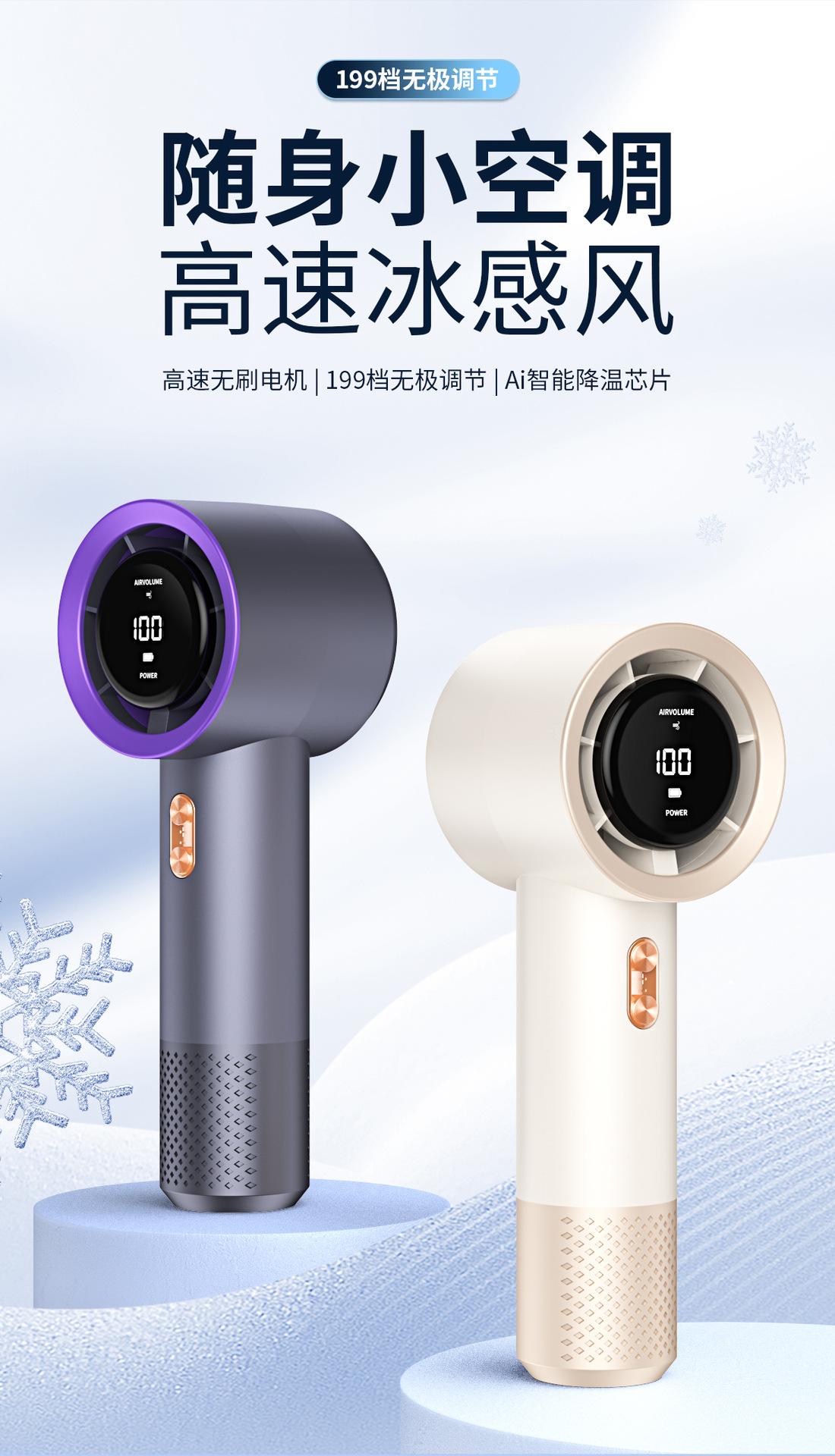 Nuevo mini ventilador turbo digital portátil de mano de alta velocidad y violencia transfronteriza 199 con carga USB