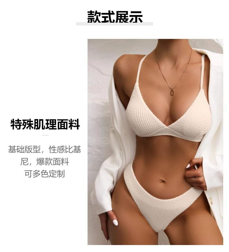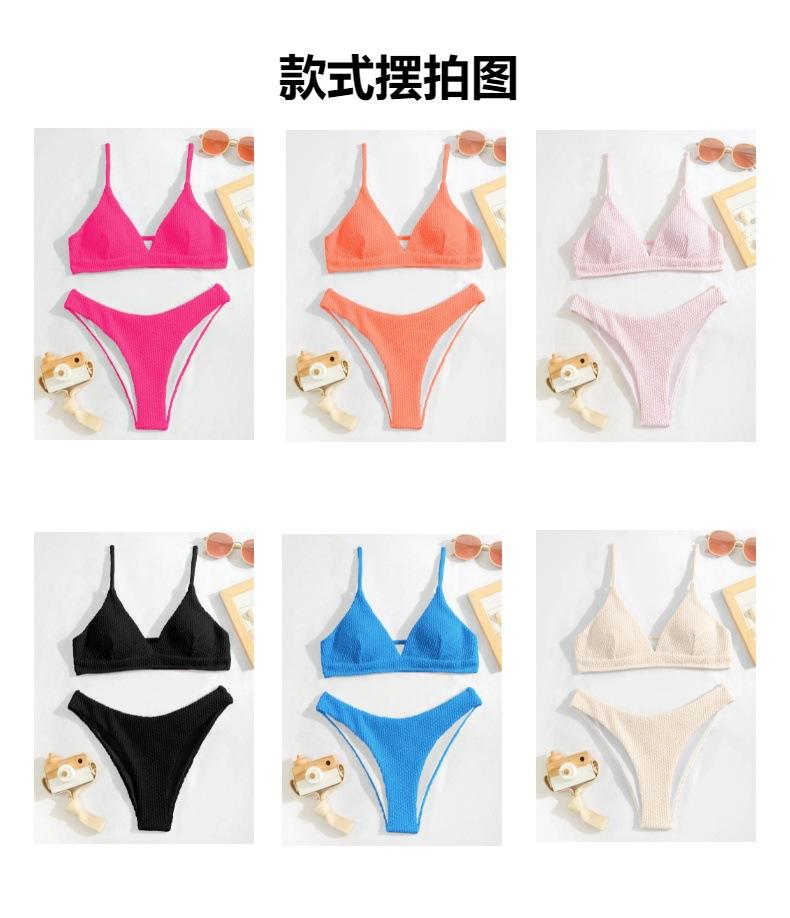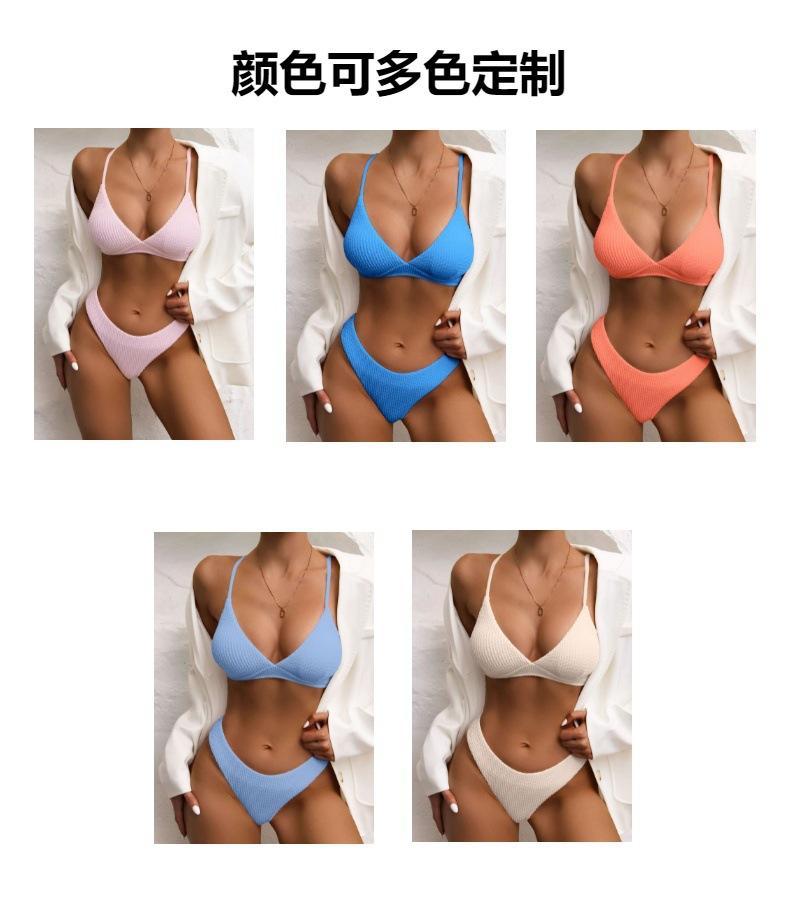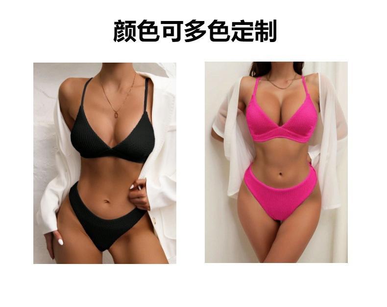Traje de baño de color sólido de tela especial con explosión de bikini de comercio exterior europeo y americano 2023, traje de baño de bikini multicolor, fábrica al por mayor para mujeres