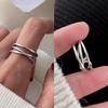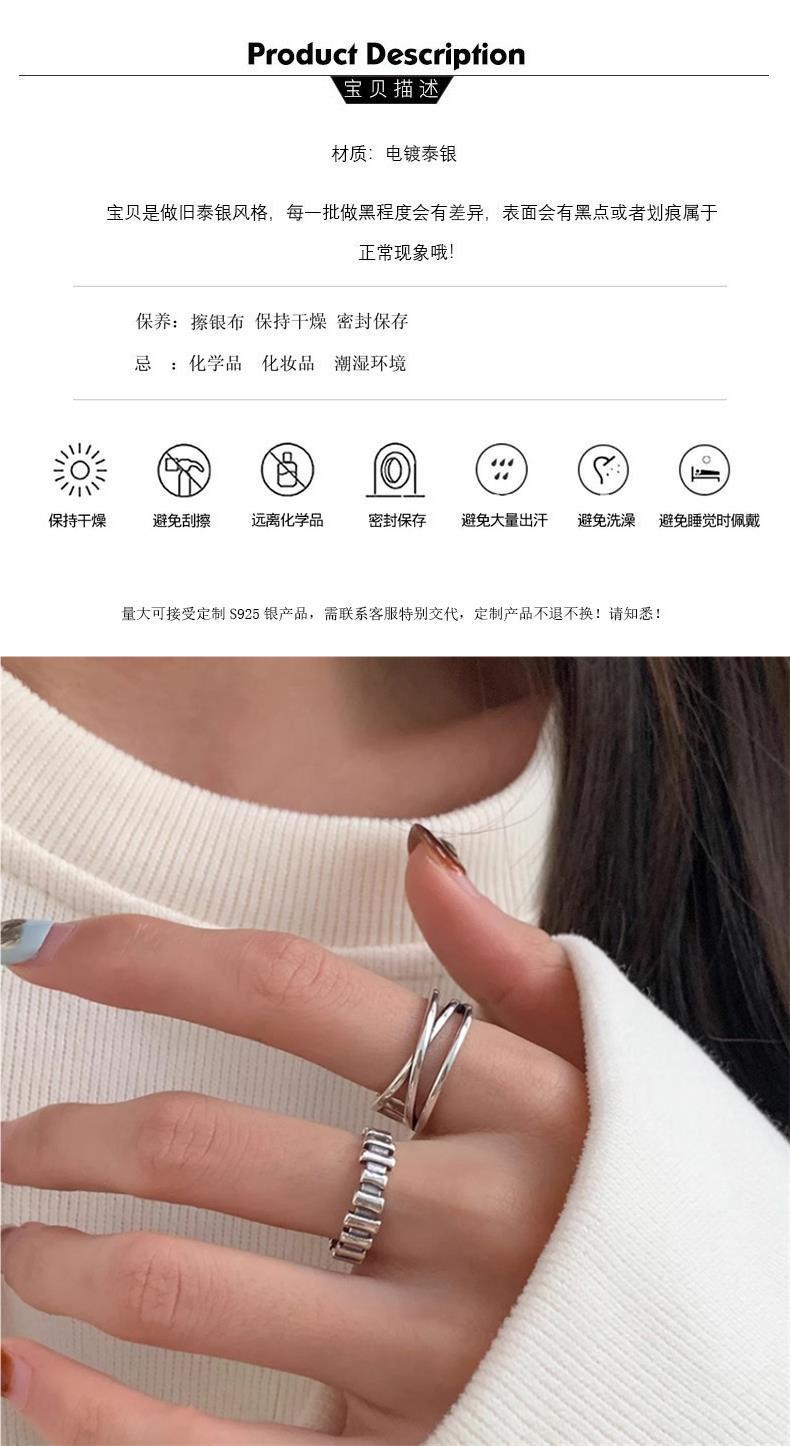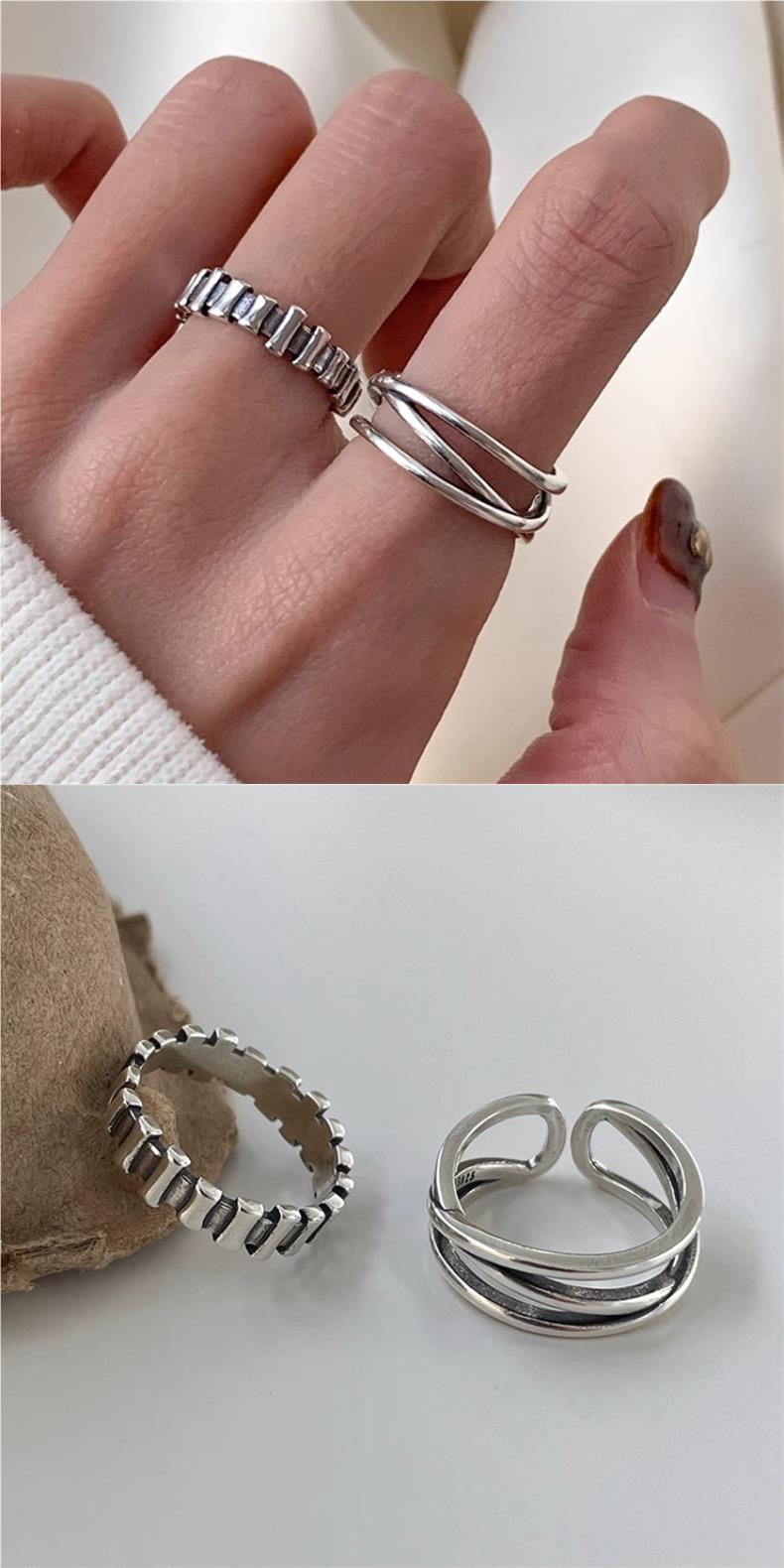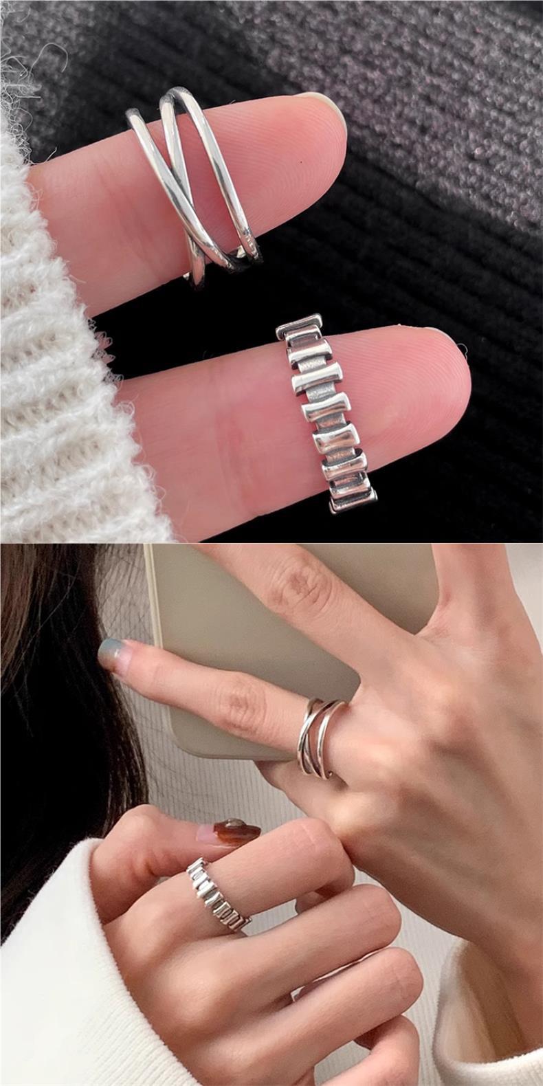Anillo cruzado con líneas geométricas vintage para mujer, apilado, dulce, moderno, combinable con todo, anillo abierto de plata S925, anillo de comida a la moda.