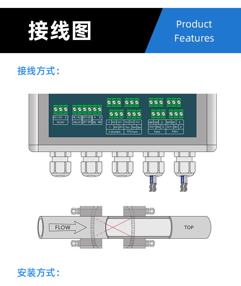 Caudalímetro Ultrasónico Multicanal Clamp-on Doble Cuatro Sonidos Multisonda Alta Precisión Aguas Residuales Riego Industrial
