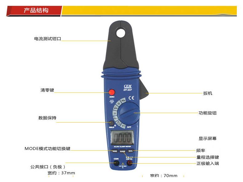 | Cantidad de embalaje: DT337 Hong Kong CEM doble inyección medidor de pinza AC y DC DT-337 medidor de pinza AC y DC DT 337 |