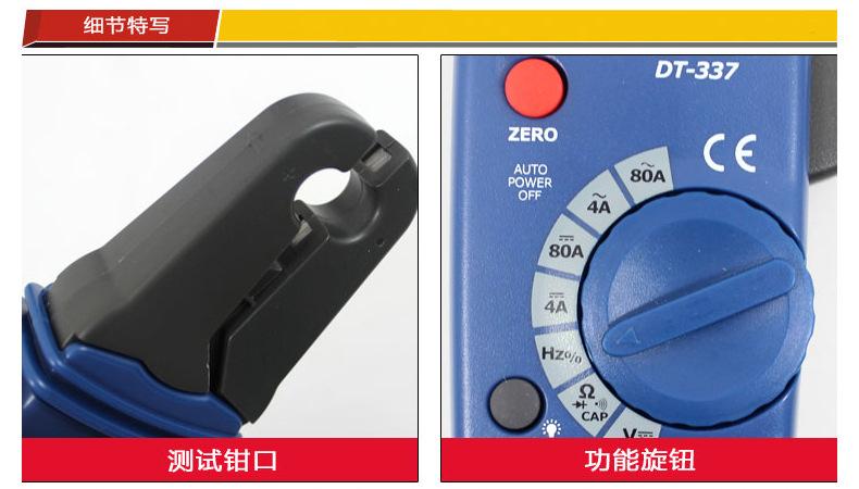 El multímetro de pinza CA/CC DT-337 no solo tiene alto rendimiento y alta precisión, sino que también el diseño de la carcasa lo hace más seguro de operar, en línea con las normas de seguridad IEC61010-2-031, CAT III 600V y grado de contaminación 2.