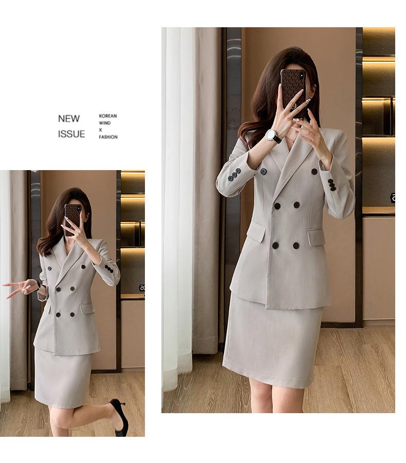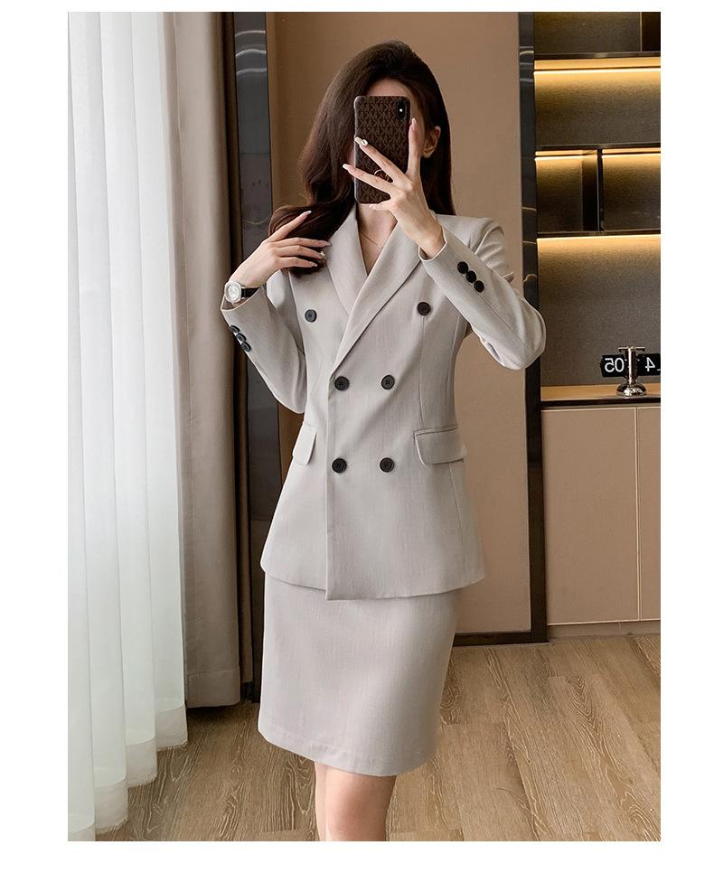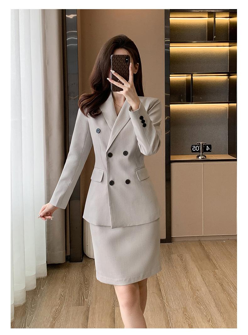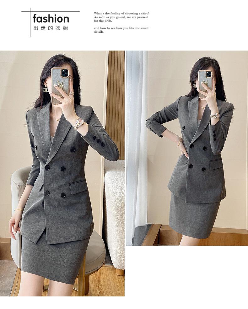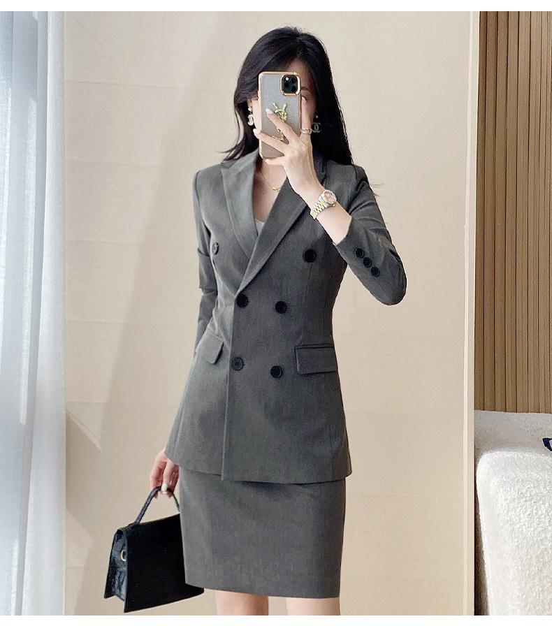 Compra 2024 Primavera y otoño nuevo gris de manga larga profesional traje pequeño cuello chaqueta pantalones de mujer falda traje de dos piezas moda al por mayor en Joom.pro