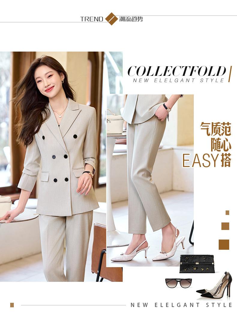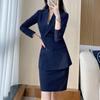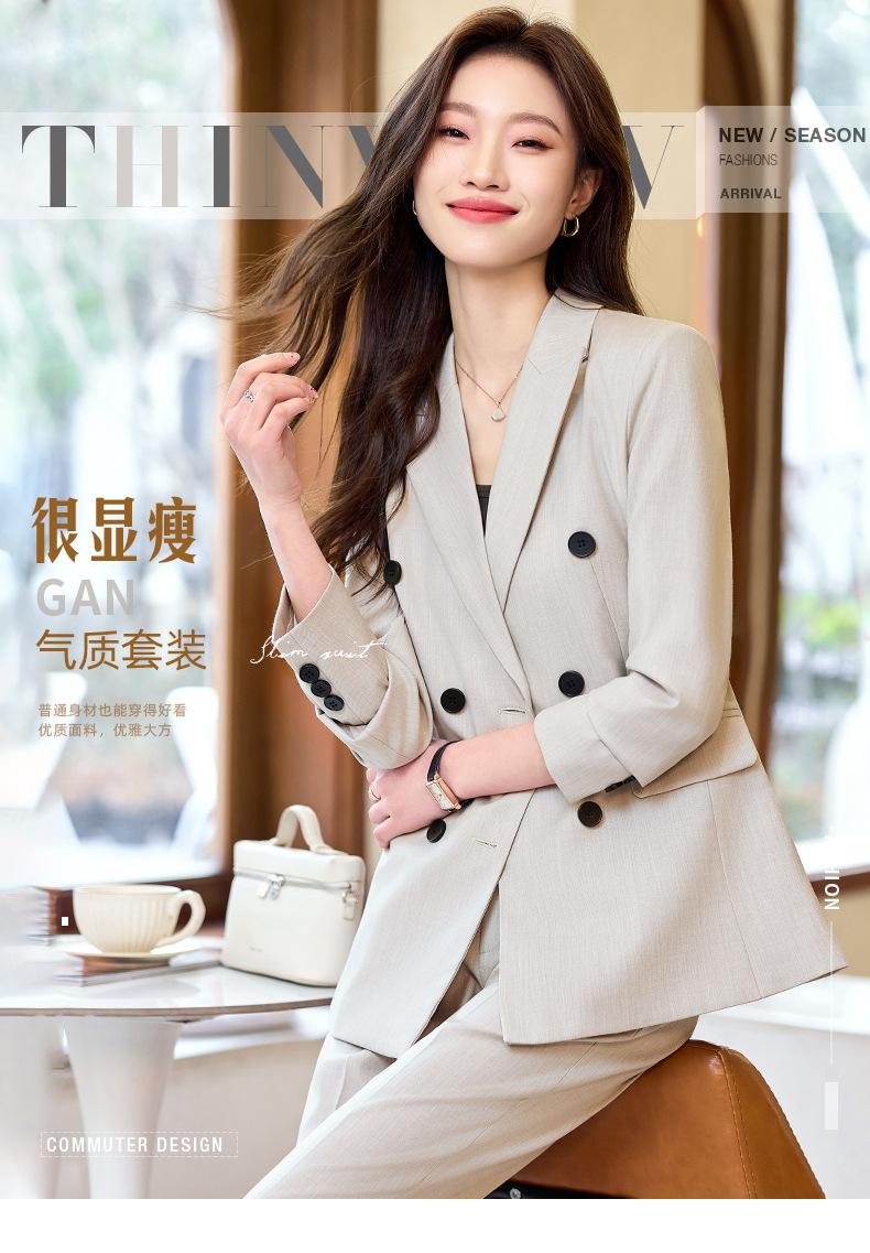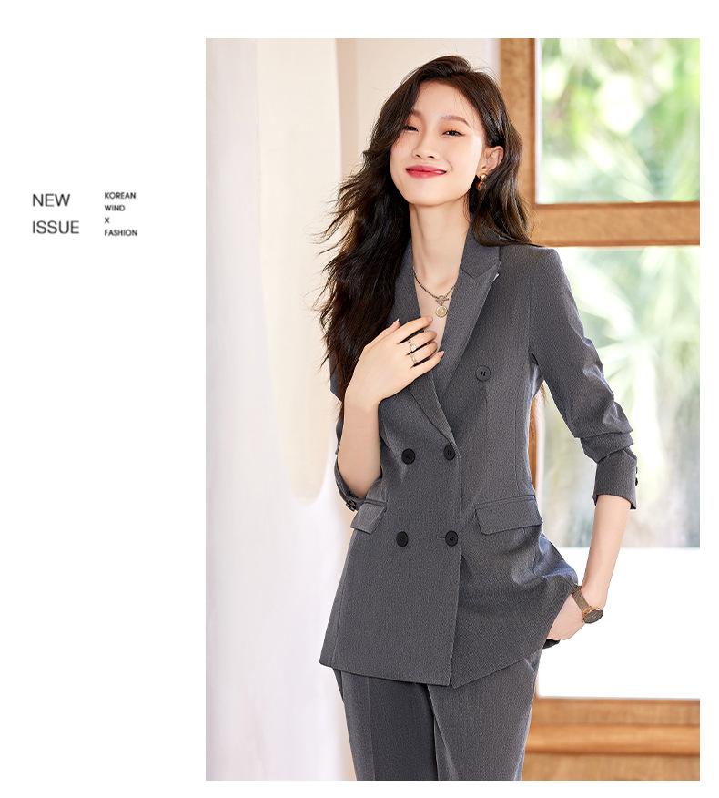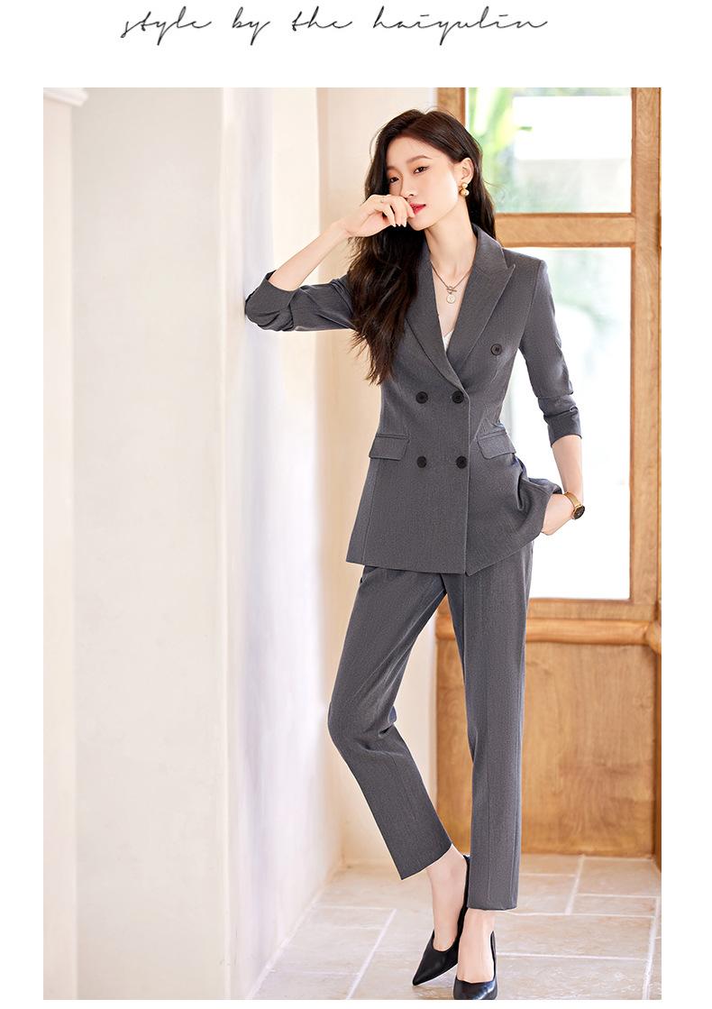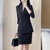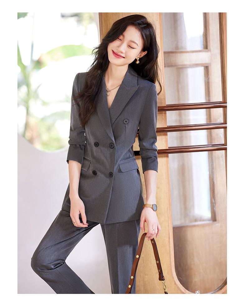 Compra 2024 Primavera y otoño nuevo gris de manga larga profesional traje pequeño cuello chaqueta pantalones de mujer falda traje de dos piezas moda al por mayor en Joom.pro