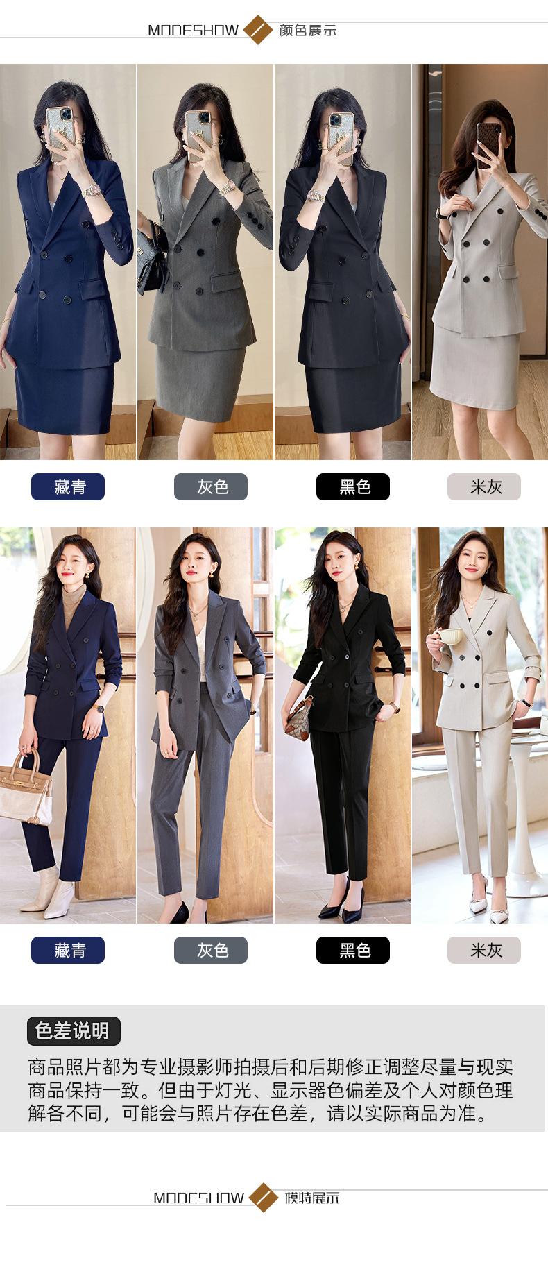 Gray suit + skirt, Navy blue suit + skirt, Black suit + skirt, Beige suit + skirt, Gray suit + pants, Navy blu...