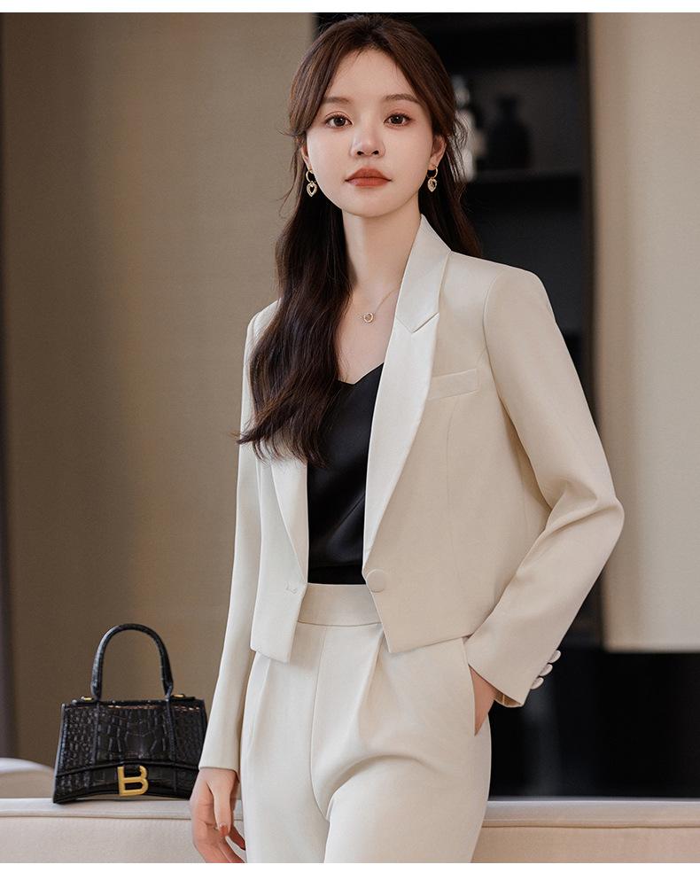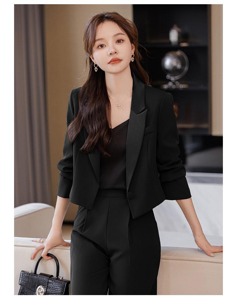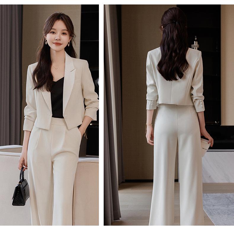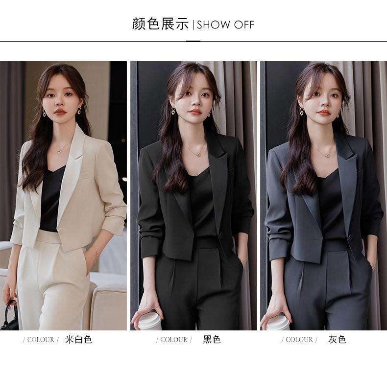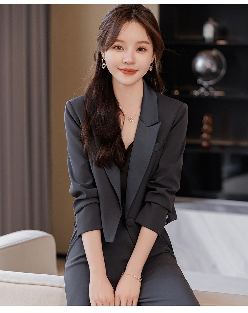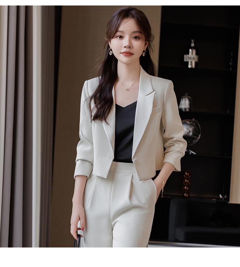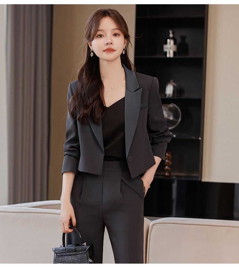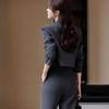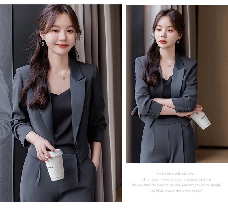 Compra 2024 Primavera y otoño nuevo gris manga larga corto profesional pequeño traje cuello chaqueta mujer pantalones traje de dos piezas moda al por mayor en Joom.pro