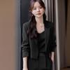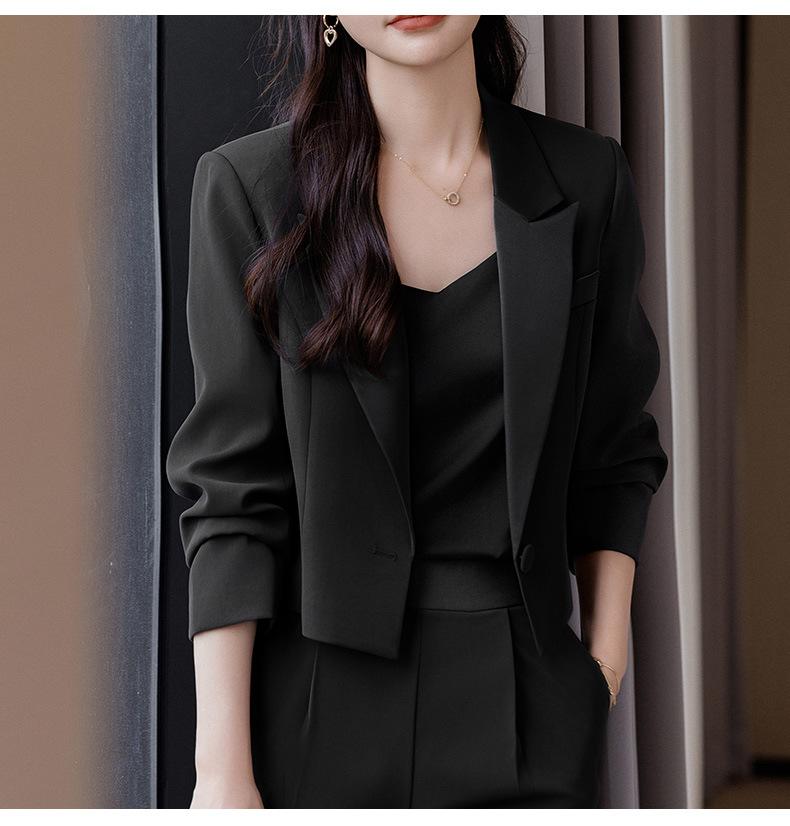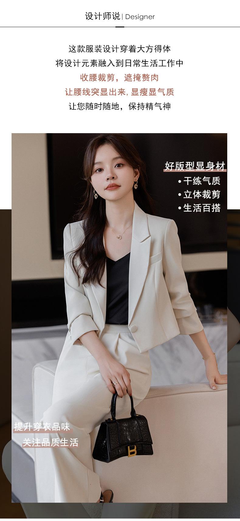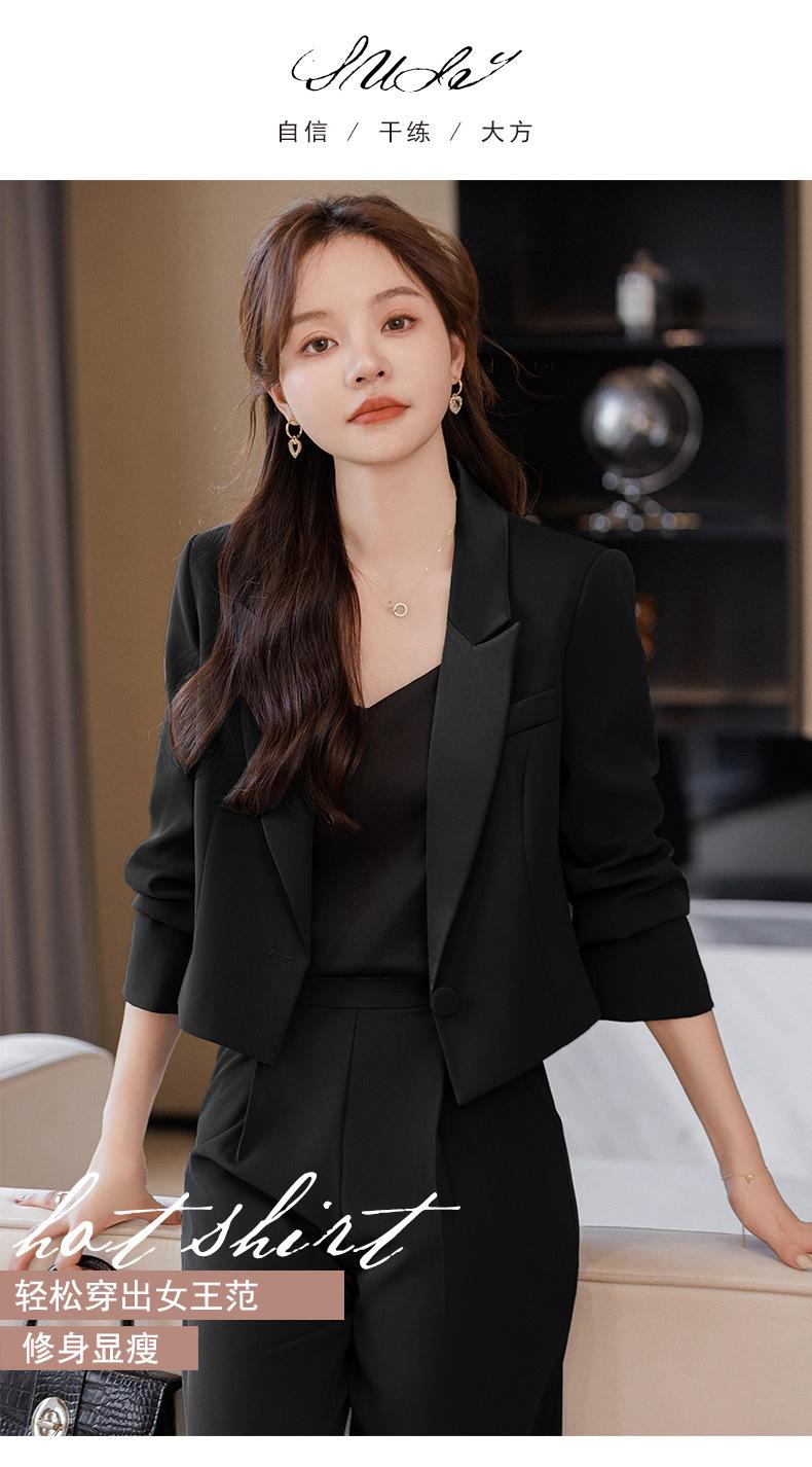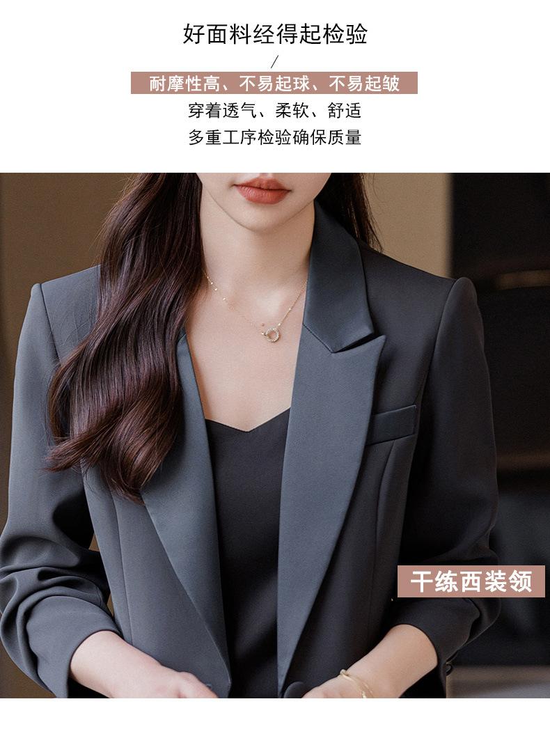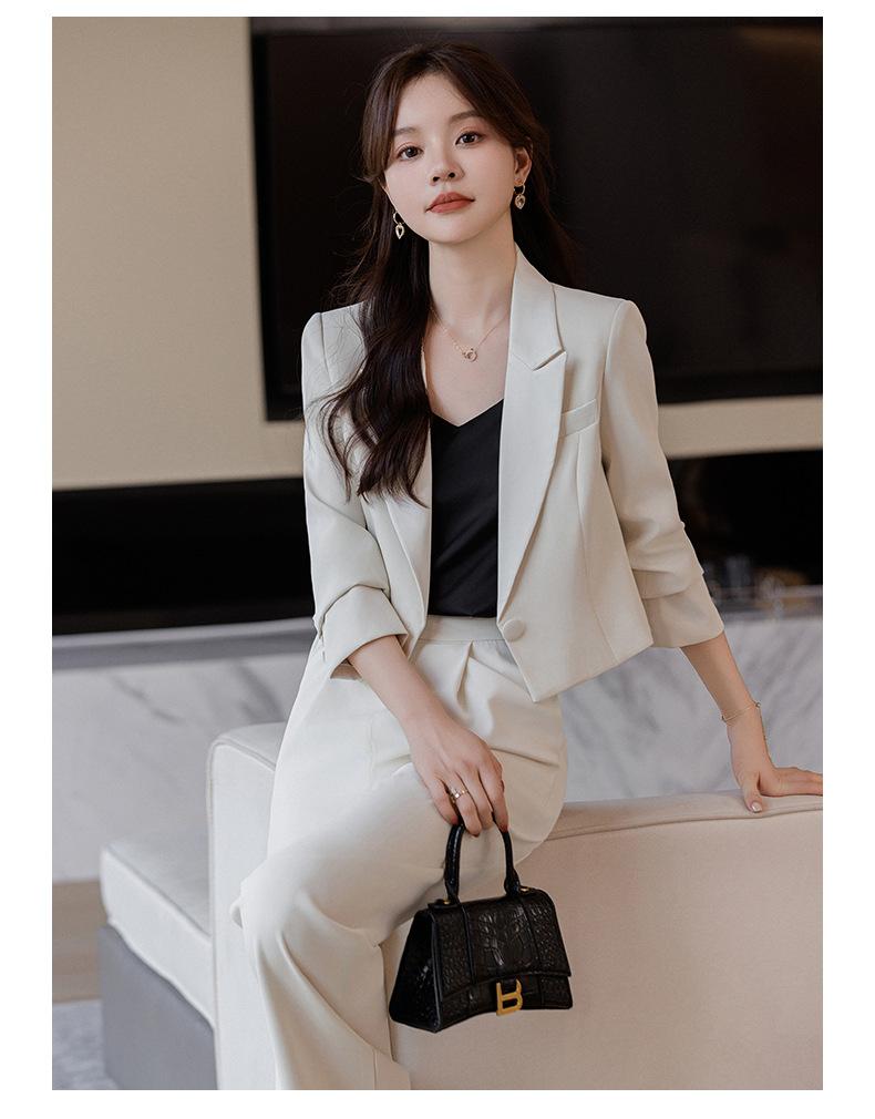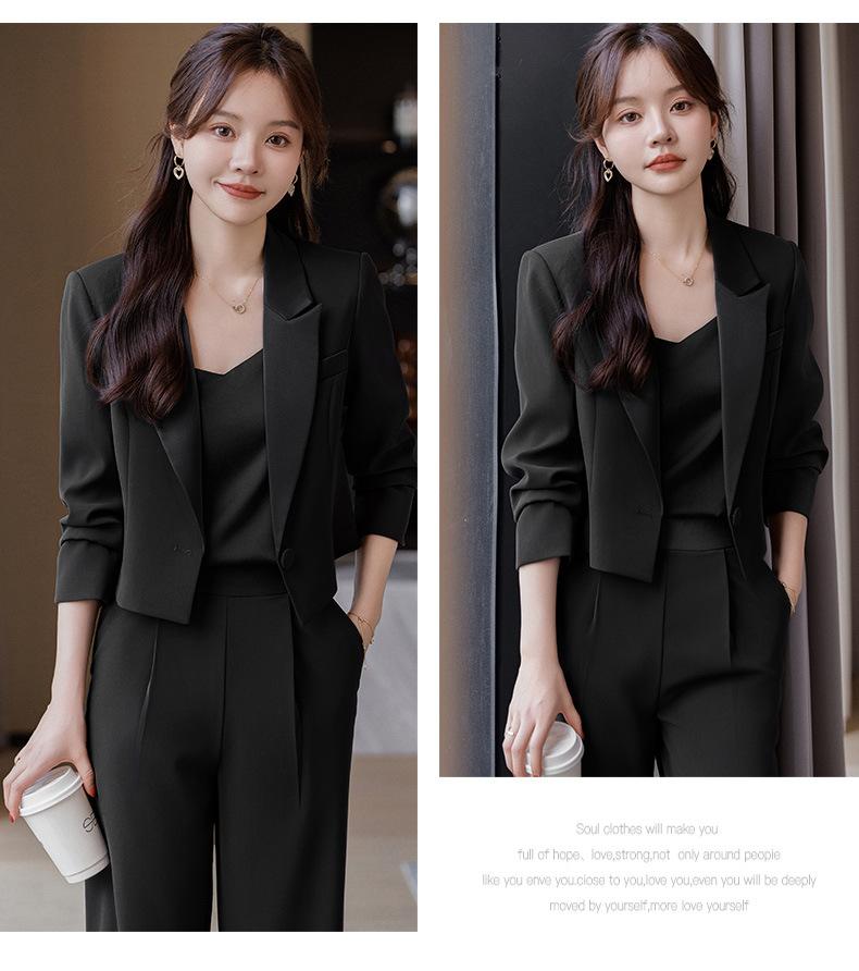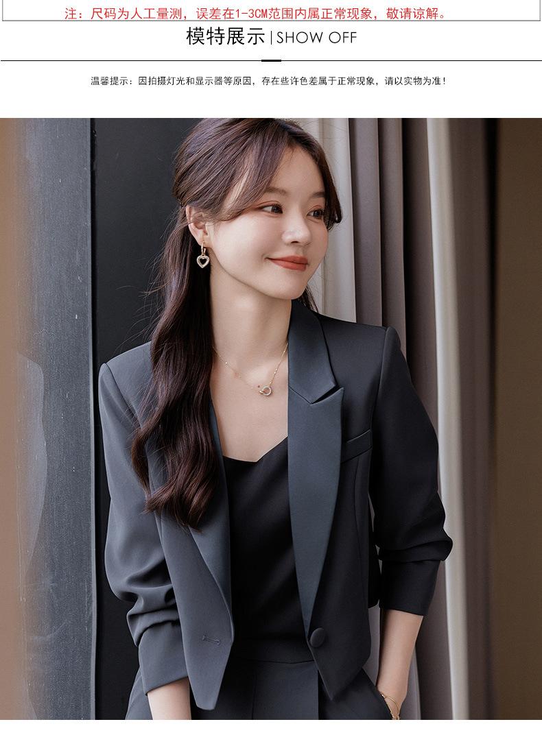 Compra 2024 Primavera y otoño nuevo gris manga larga corto profesional pequeño traje cuello chaqueta mujer pantalones traje de dos piezas moda al por mayor en Joom.pro