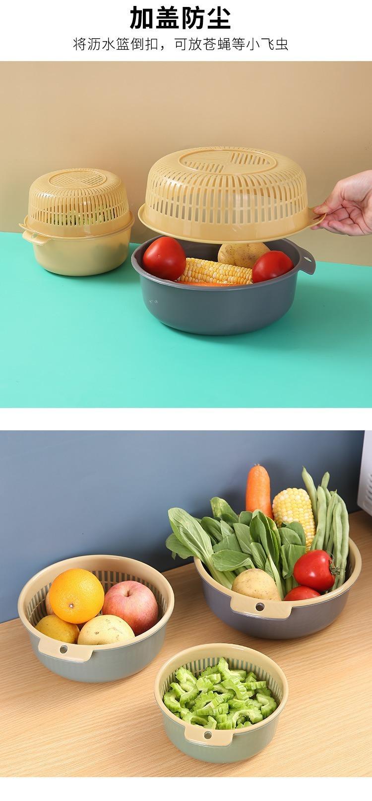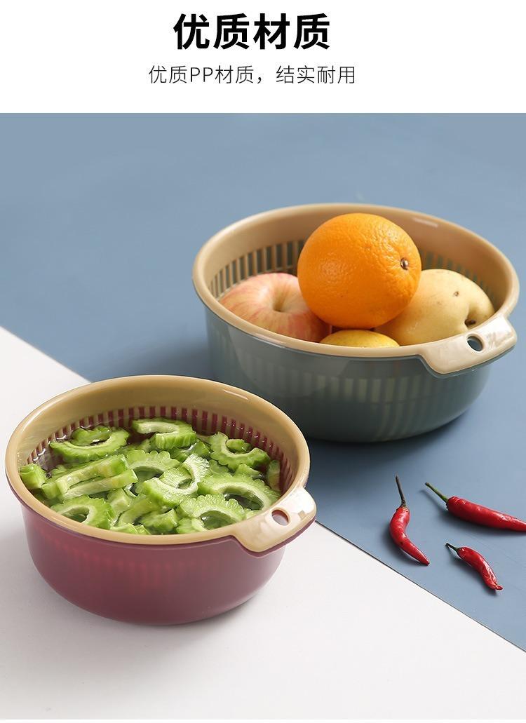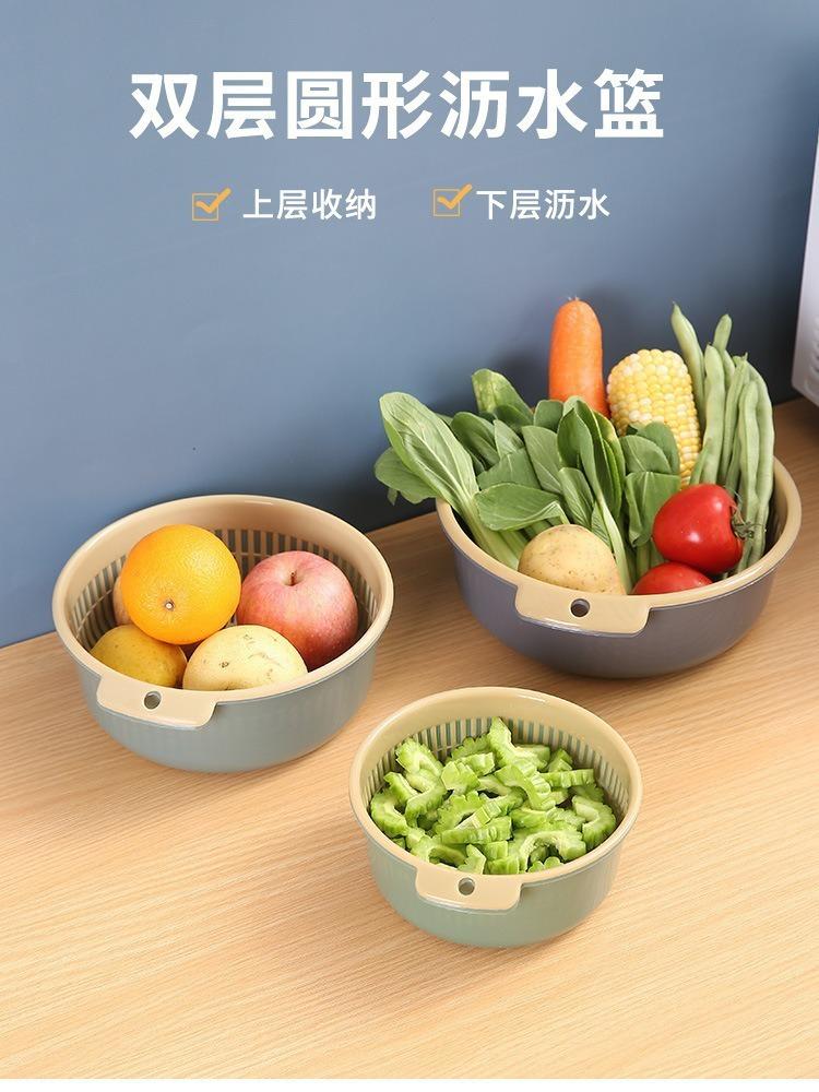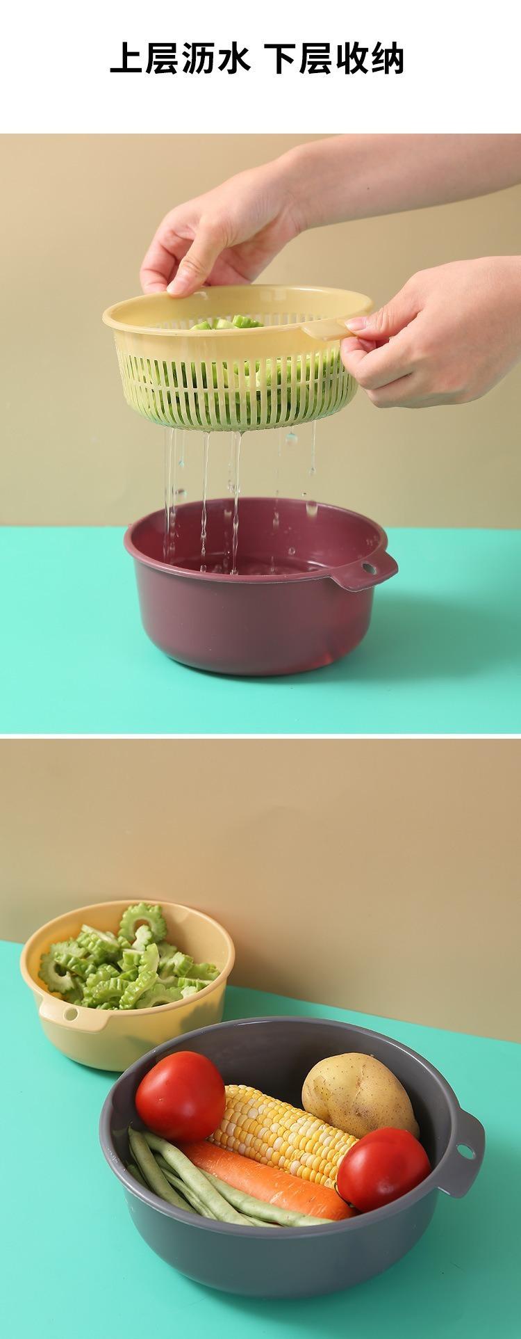 Fregadero de verduras de doble capa, cesta de drenaje de plástico para el hogar, cesta de verduras con goteo recortada multifuncional para cocina, recipiente creativo para almacenar melones y frutas.