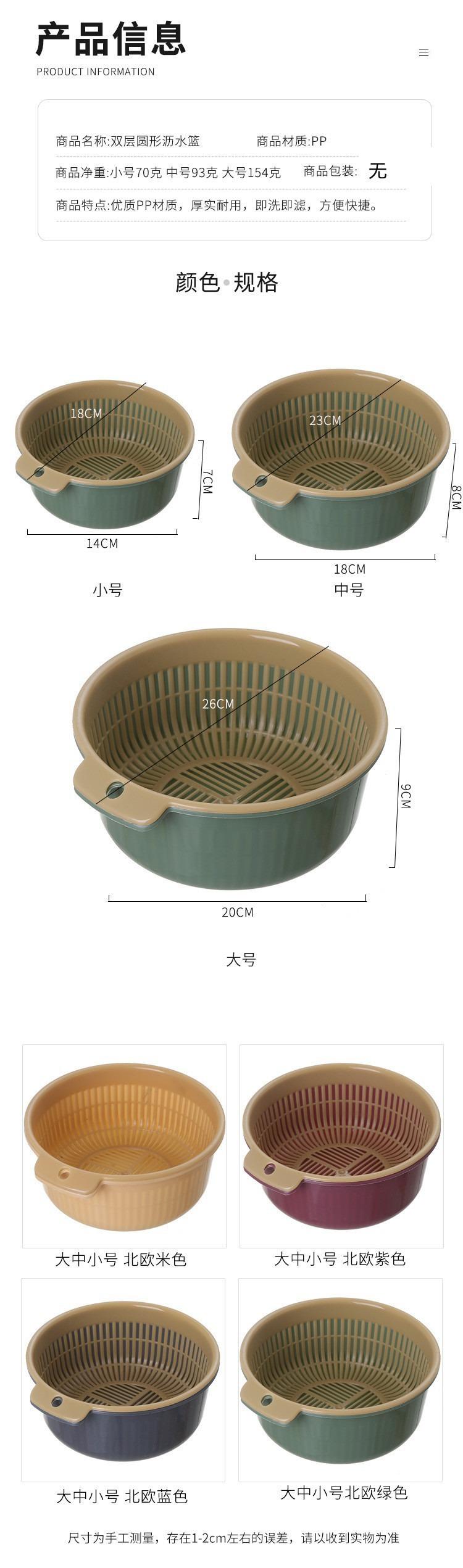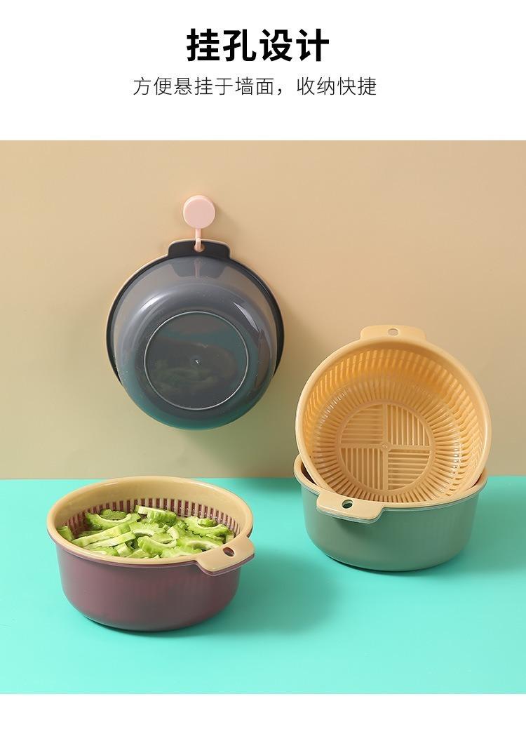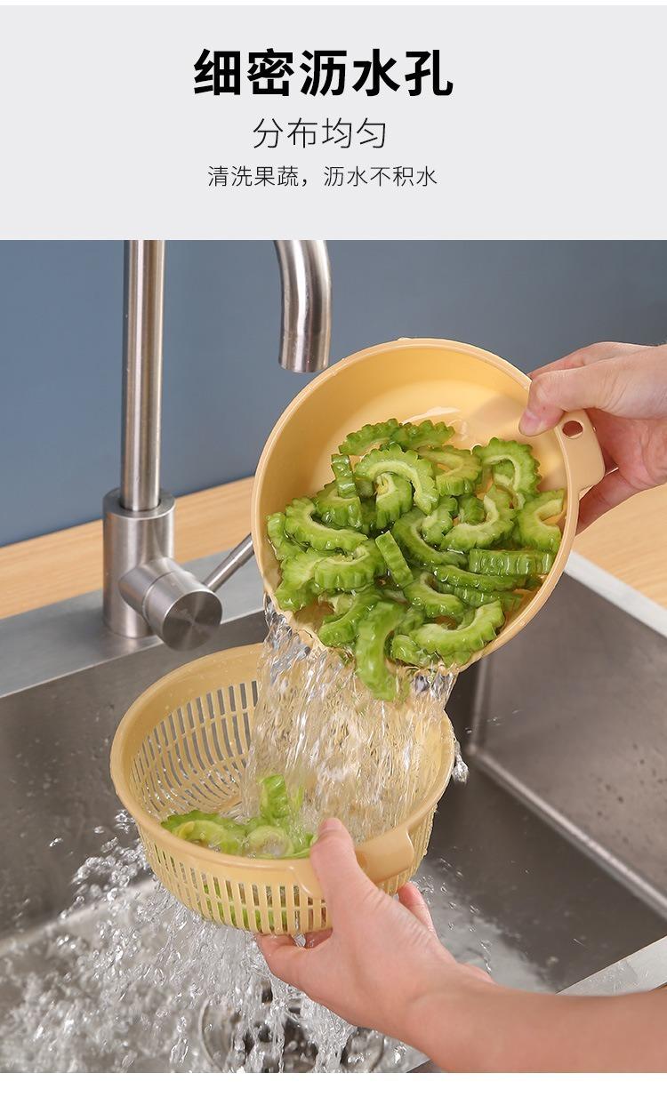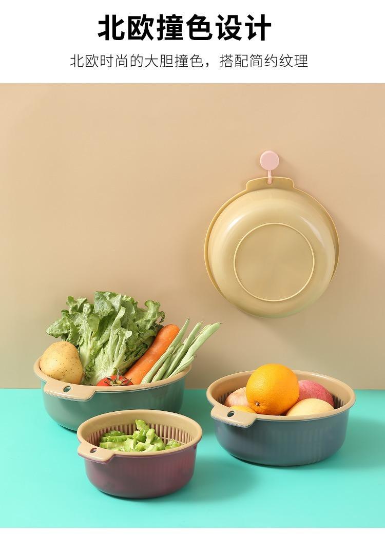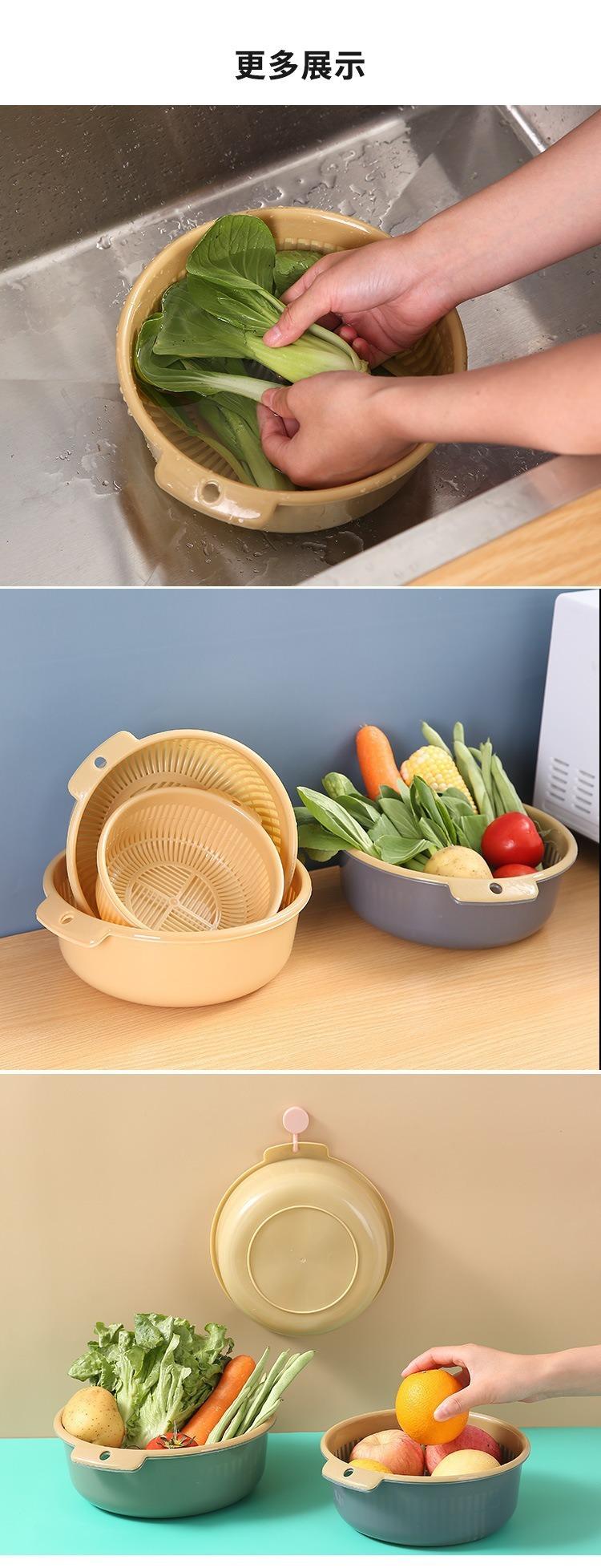 Fregadero de verduras de doble capa, cesta de drenaje de plástico para el hogar, cesta de verduras con goteo recortada multifuncional para cocina, recipiente creativo para almacenar melones y frutas.