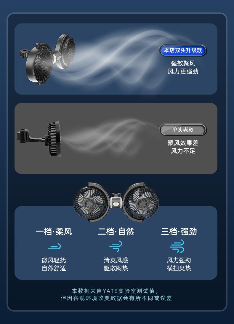 【Características del producto】: Velocidad de viento alta de 3 velocidades, cabezales dobles, bajo nivel de ruido, larga vida útil