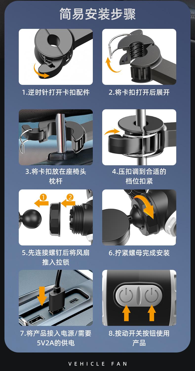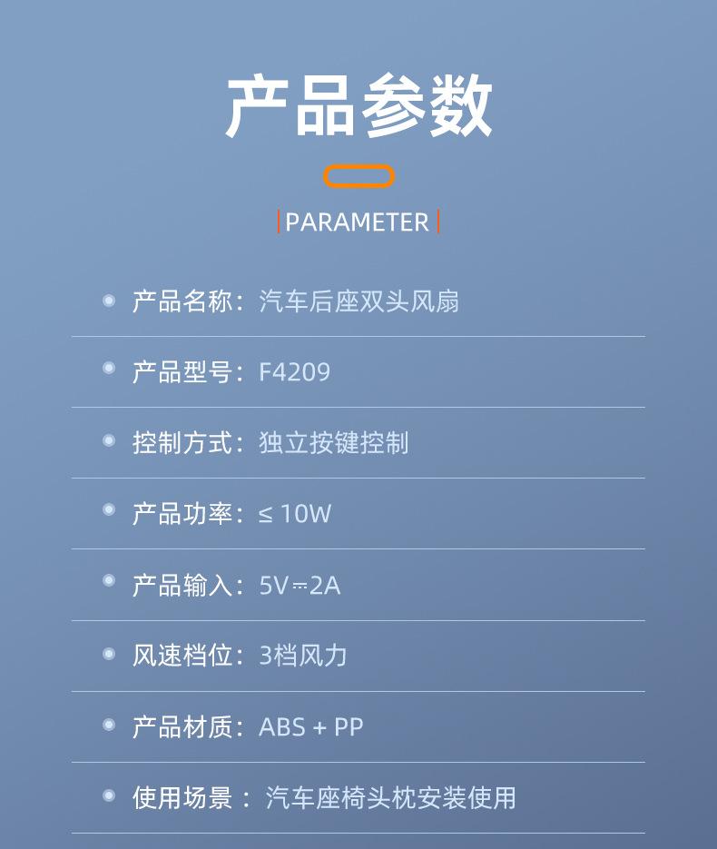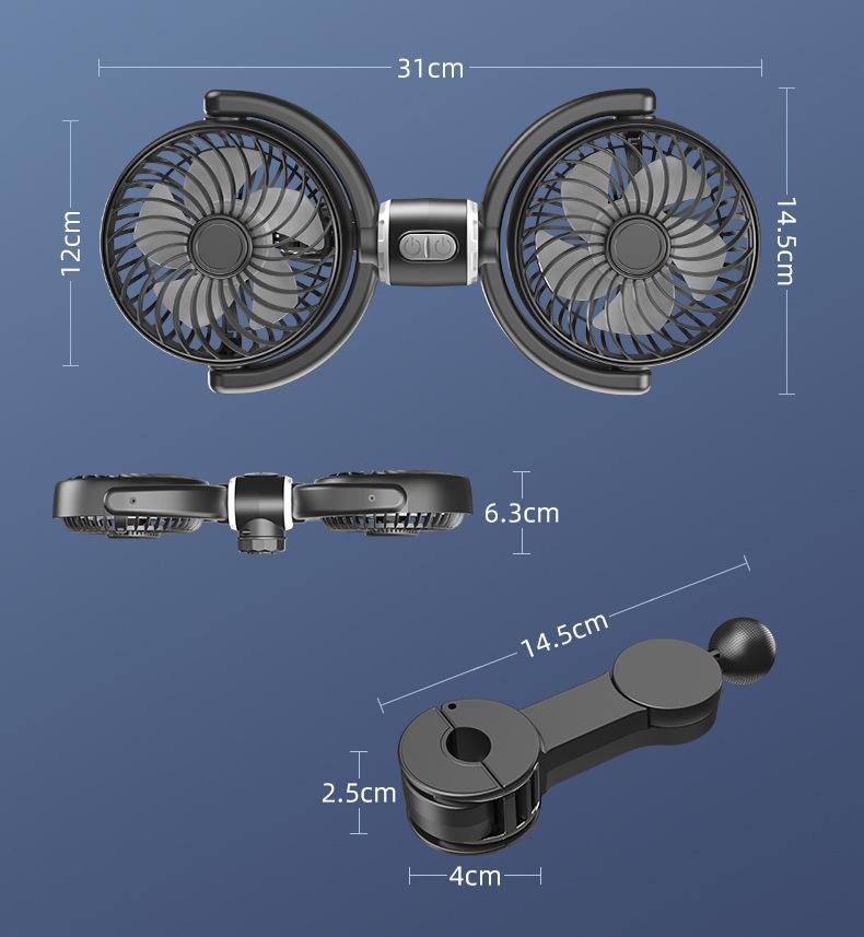【F4209】Ventilador de doble cabezal para reposacabezas trasero