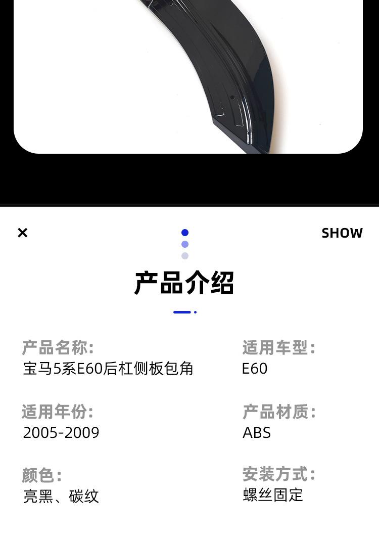Adecuado para BMW Serie 5 esquina parachoques trasero E60 panel embellecedor lateral parachoques trasero esquina grande borde faldón bolsa pequeña