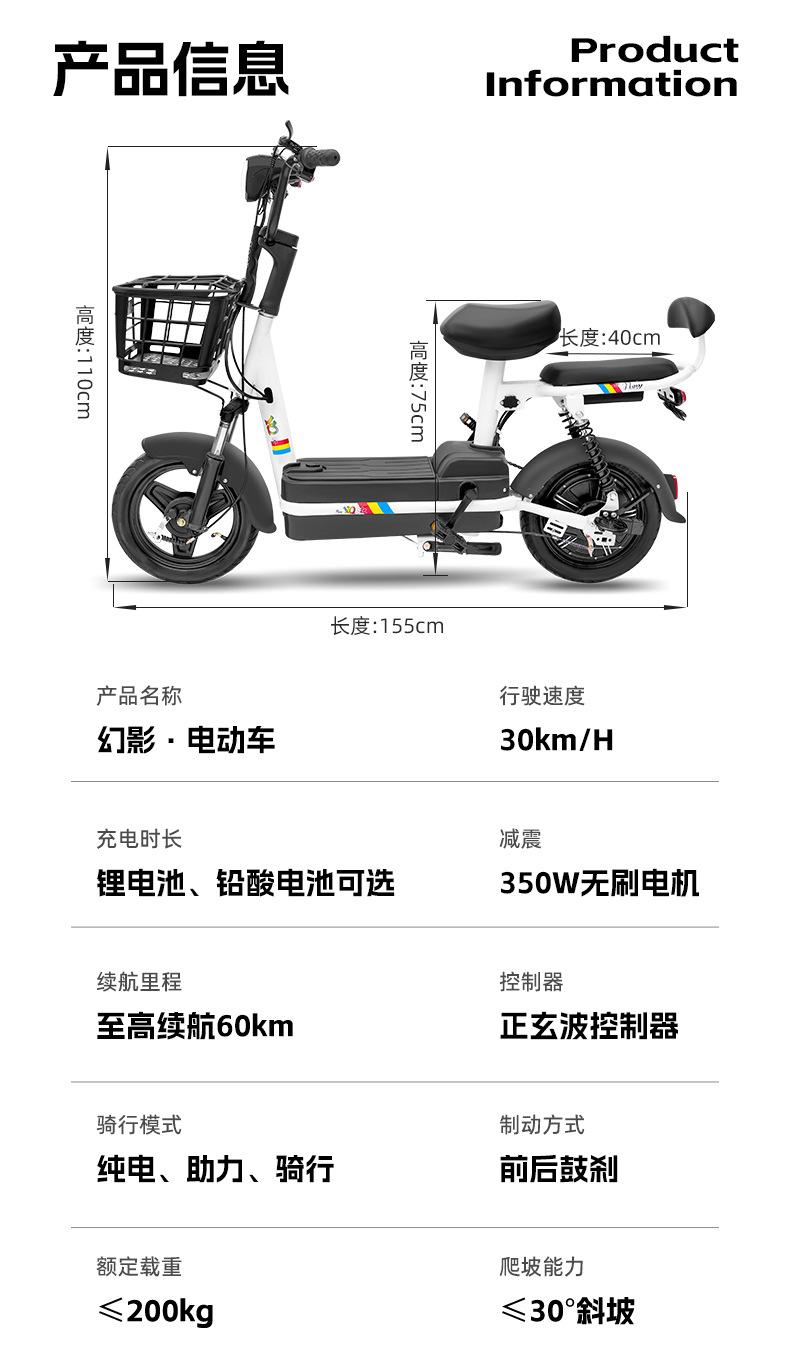 Bicicleta Eléctrica Pequeña Fantasma al Por Mayor Transfronteriza Bicicleta Eléctrica de Dos Ruedas Fabricante de Fuente de Comercio Exterior Nuevo Coche de Batería Conveniente