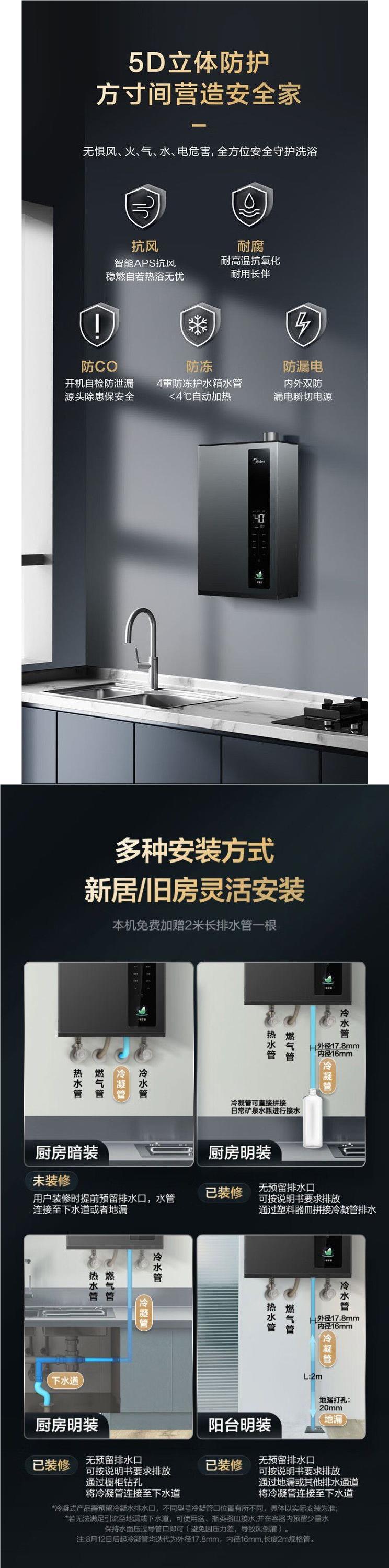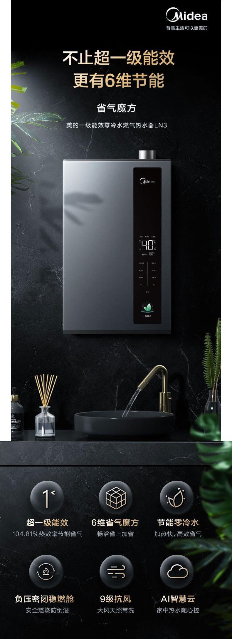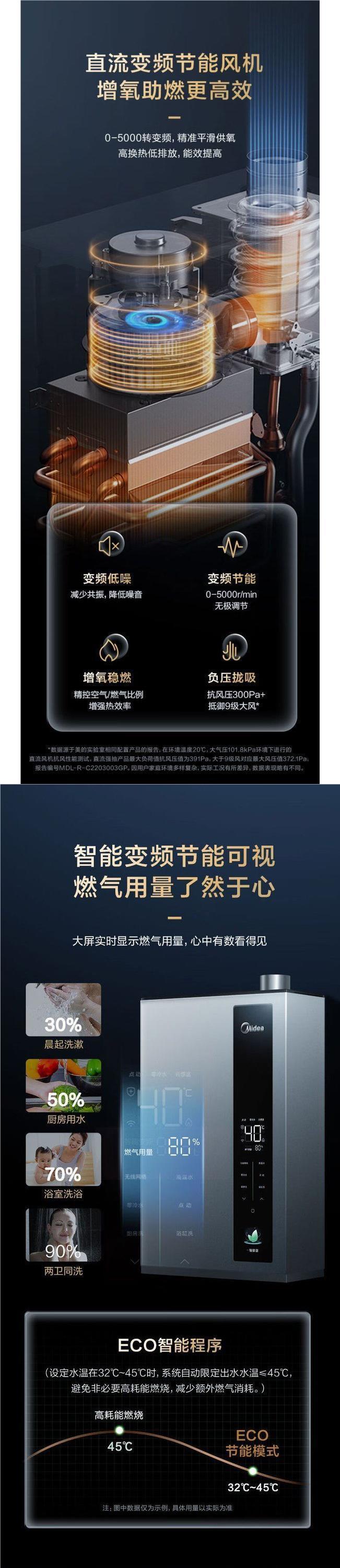 Calentador de Agua a Gas Midea para Baño Doméstico 16L Agua Fría Cero Eficiencia Energética Gas Natural JSLQ27-16LN3