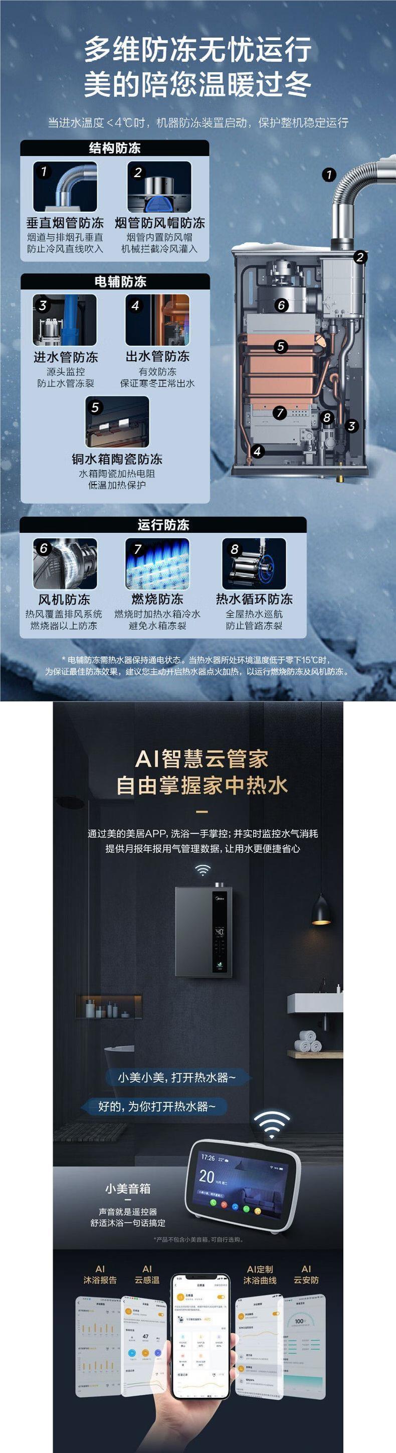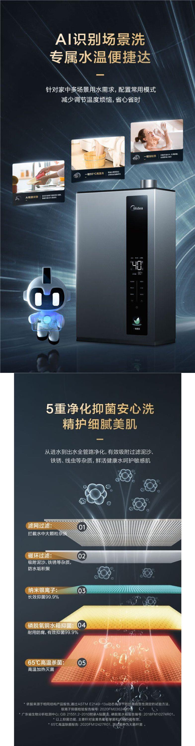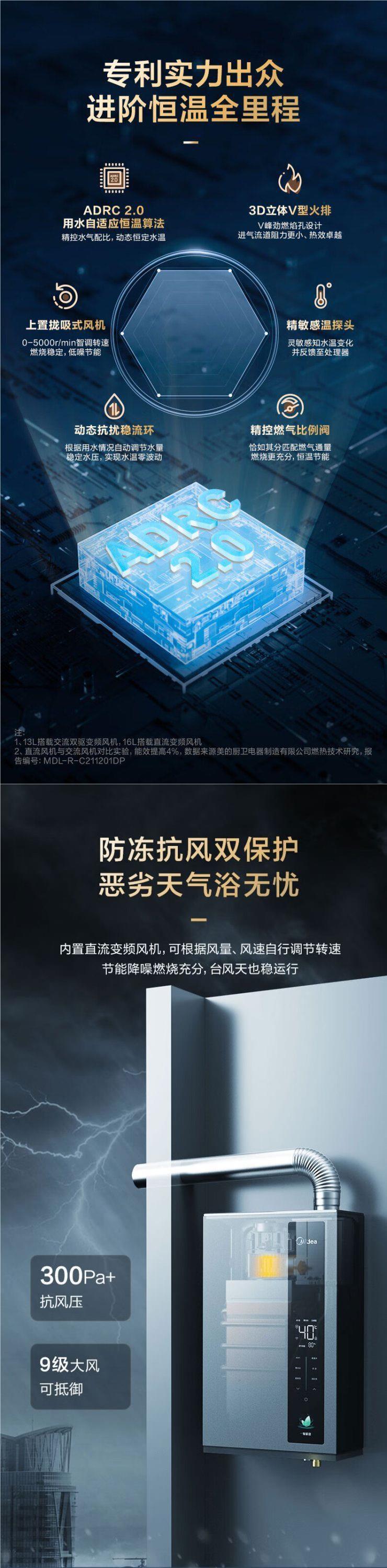 Calentador de Agua a Gas Midea para Baño Doméstico 16L Agua Fría Cero Eficiencia Energética Gas Natural JSLQ27-16LN3