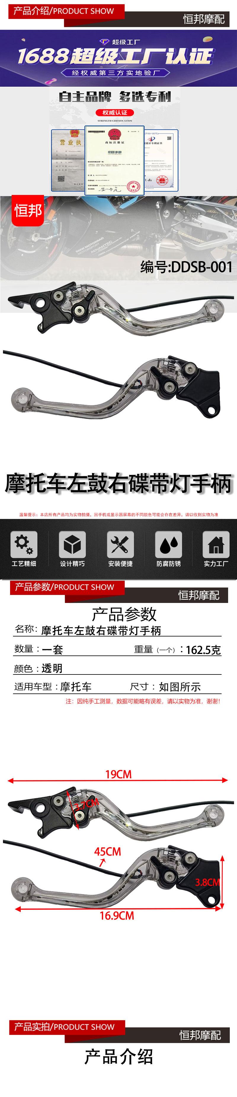 Piezas de modificación de motocicleta CG125, palanca de freno de tambor trasero con luz LED, manija de embrague y bocina