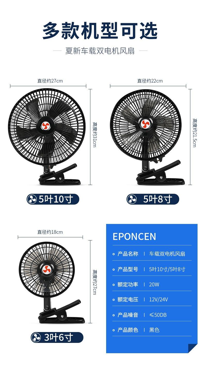 Ventilador de coche de 12 V para furgoneta con potente refrigeración por viento, pequeño ventilador eléctrico para coche de 24 V para camión grande