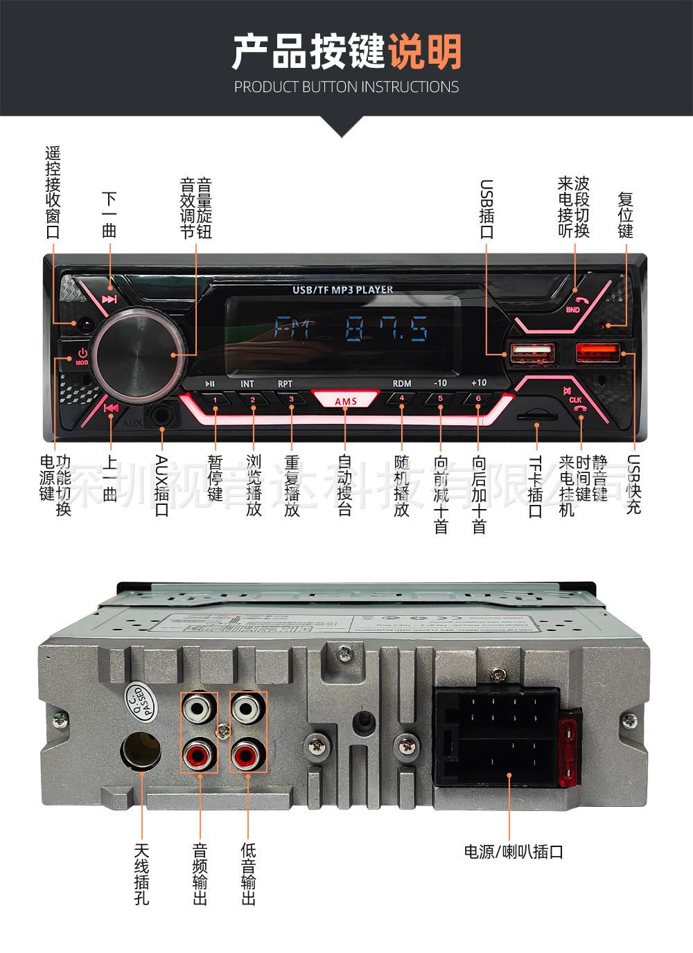 Reproductor MP3 universal para coche de 12 V, doble USB, Bluetooth, control de voz, manos libres, radio FM de carga rápida, 720