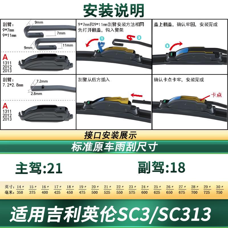 Adecuado para limpiaparabrisas de coche Geely British Sc3/Sc313, limpiaparabrisas especiales sin hueso con tira de goma silenciosa para coches originales
