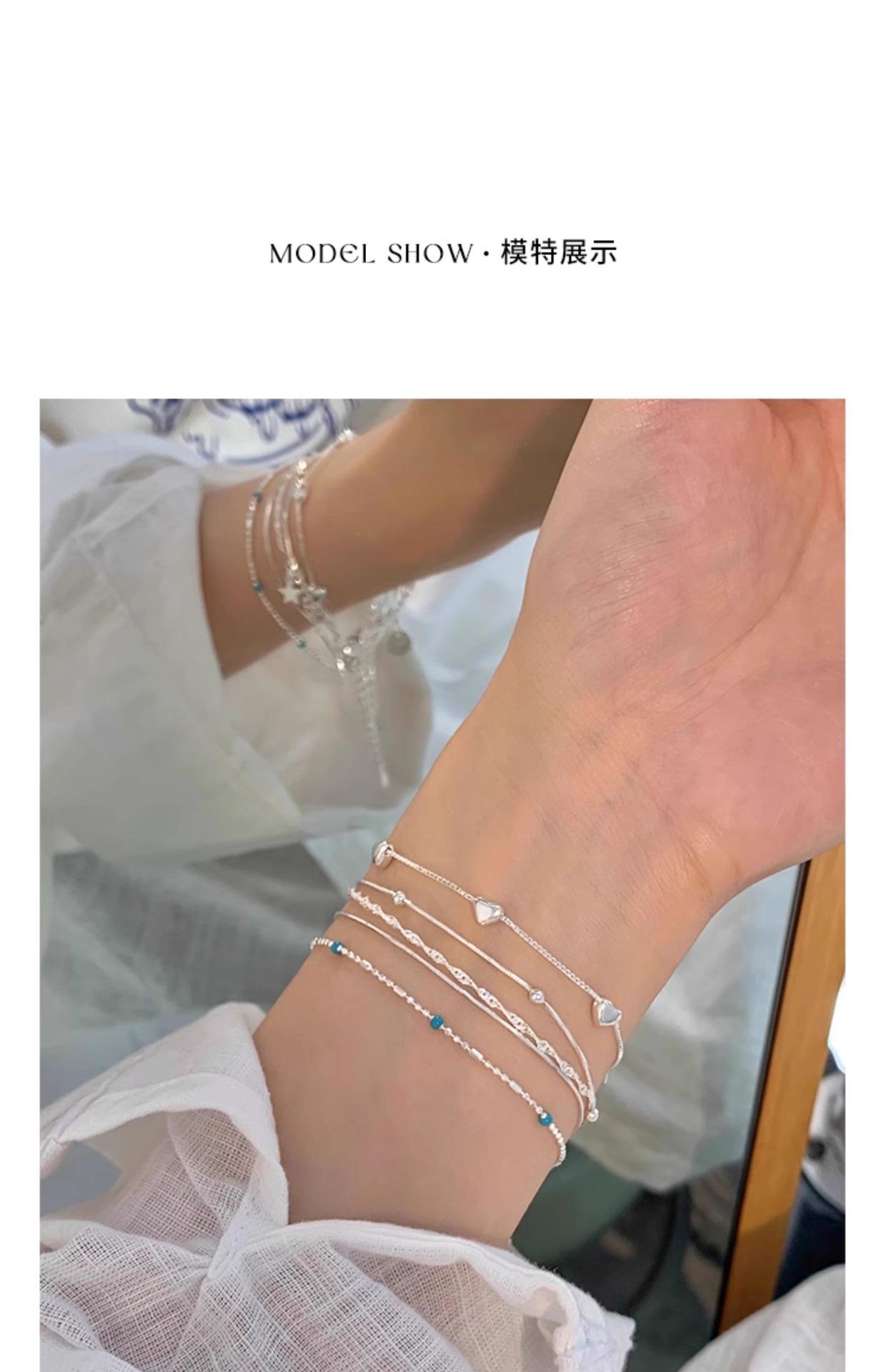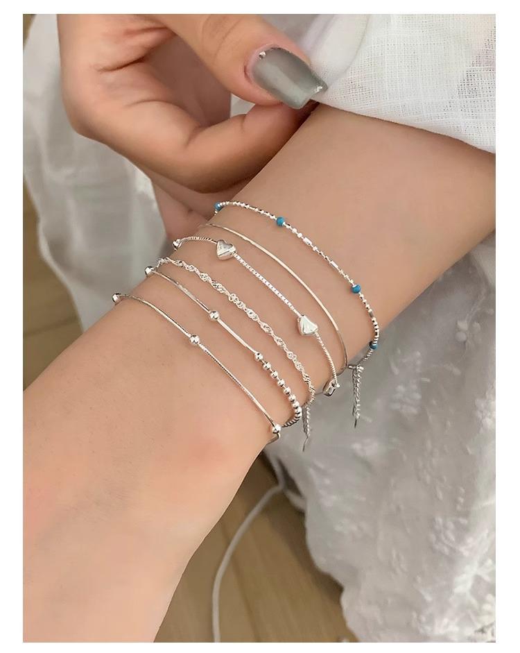 Pulsera de plata de ley con cuentas azules y plateadas a juego, ideal para mujeres, de alta gama y estilo nicho, ideal para celebrantes de Internet.