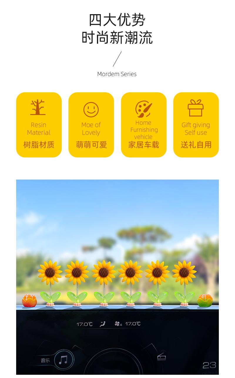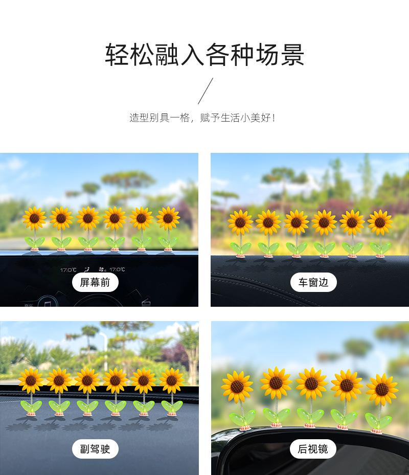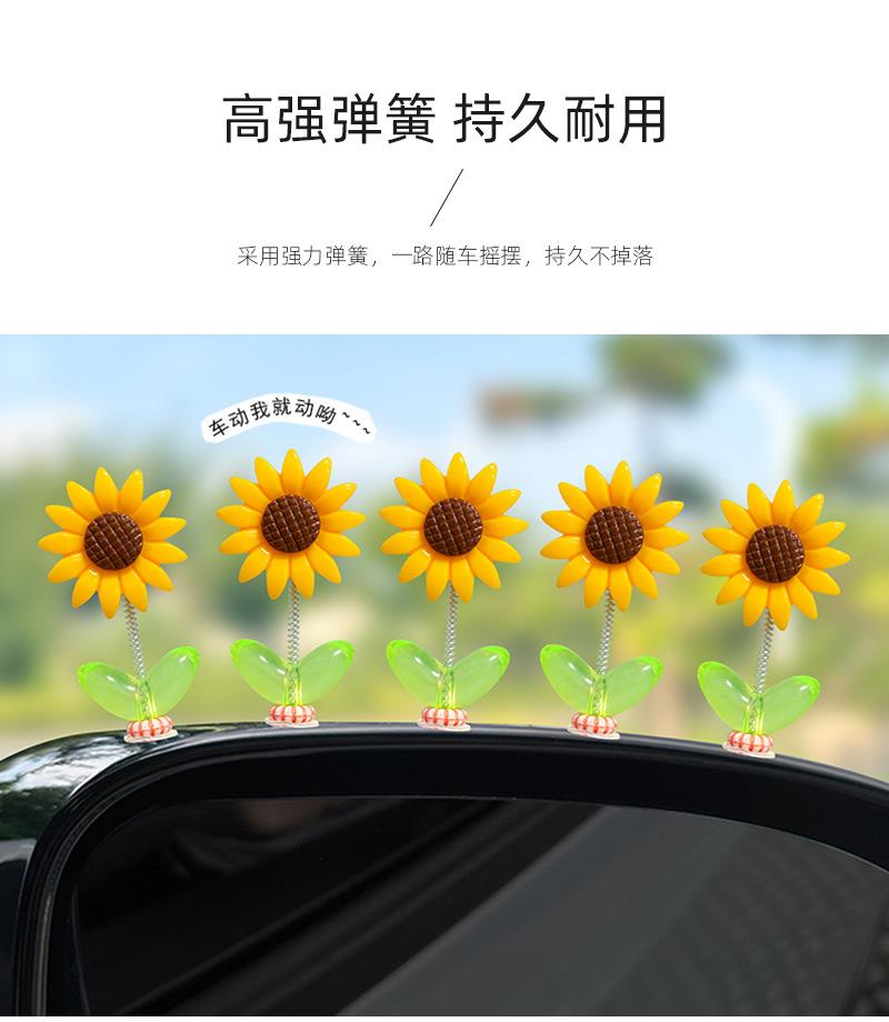 Bonita decoración para coche con forma de girasol con cabeza móvil, diseño de flores frescas, para ventana de coche, consola central, espejo retrovisor.