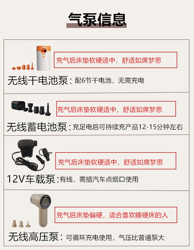 Forma de embalaje: caja de papel kraft neutral | Accesorios: (1*bomba eléctrica, 1*kit de reparación, 1*bolsa de almacenamiento) |