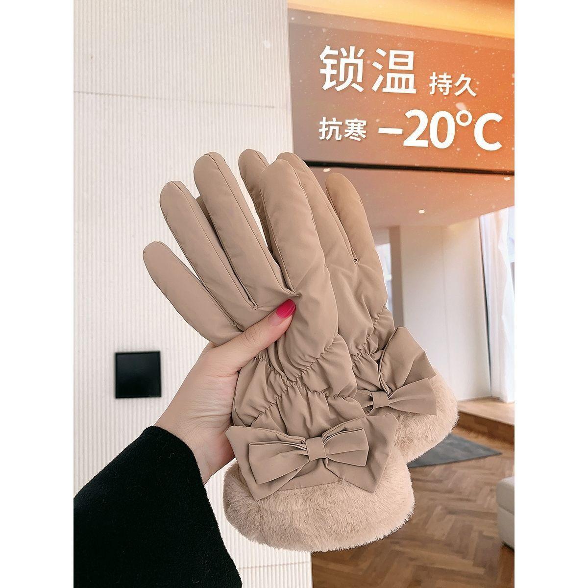 Guantes de Ciclismo de Invierno para Mujer, Cortavientos, Impermeables, Compatibles con Pantalla Táctil, Forrados con Forro Polar, Gruesos para Motocicletas y Vehículos Eléctricos, Guantes de Esquí Cálidos de Invierno